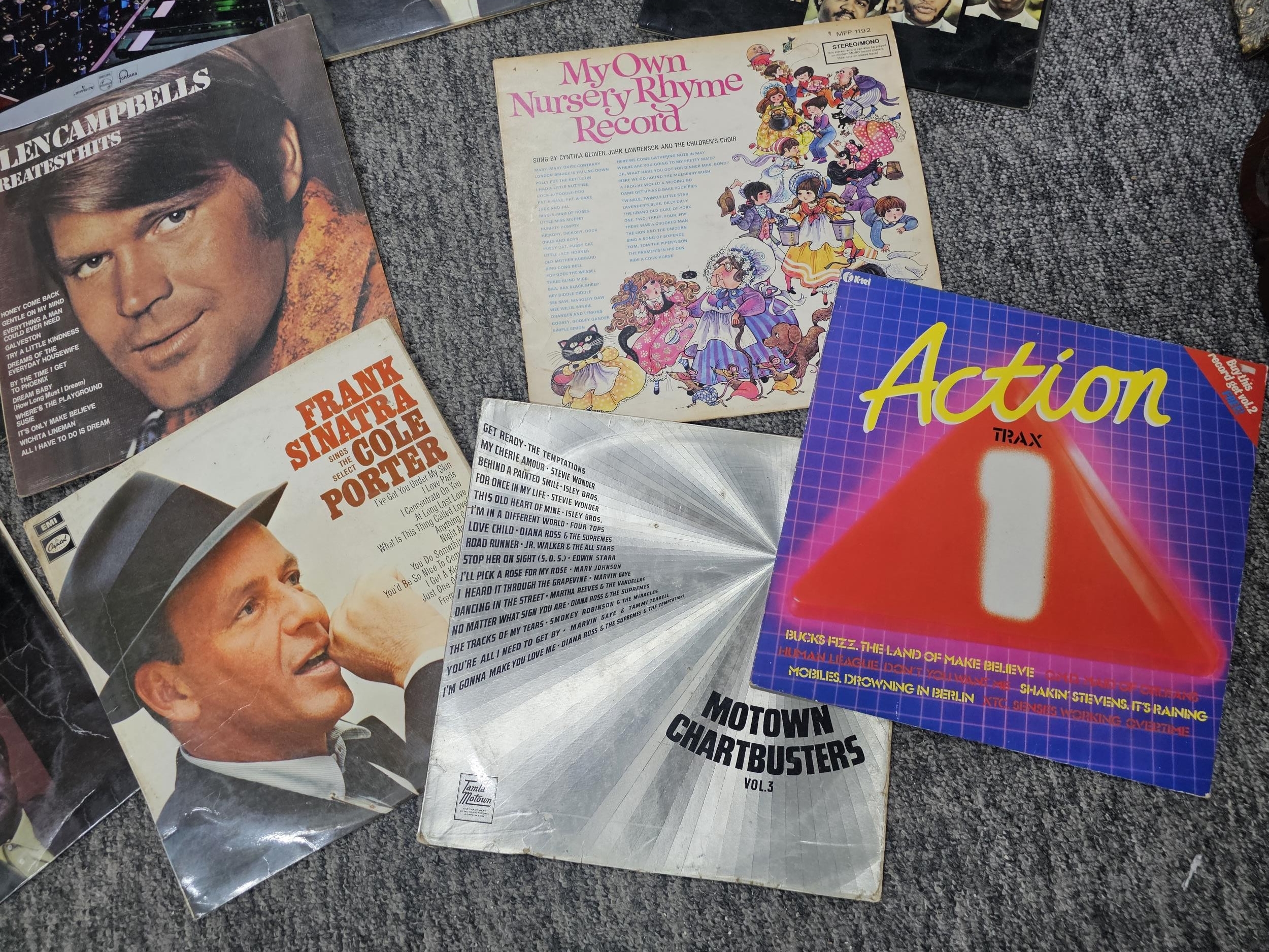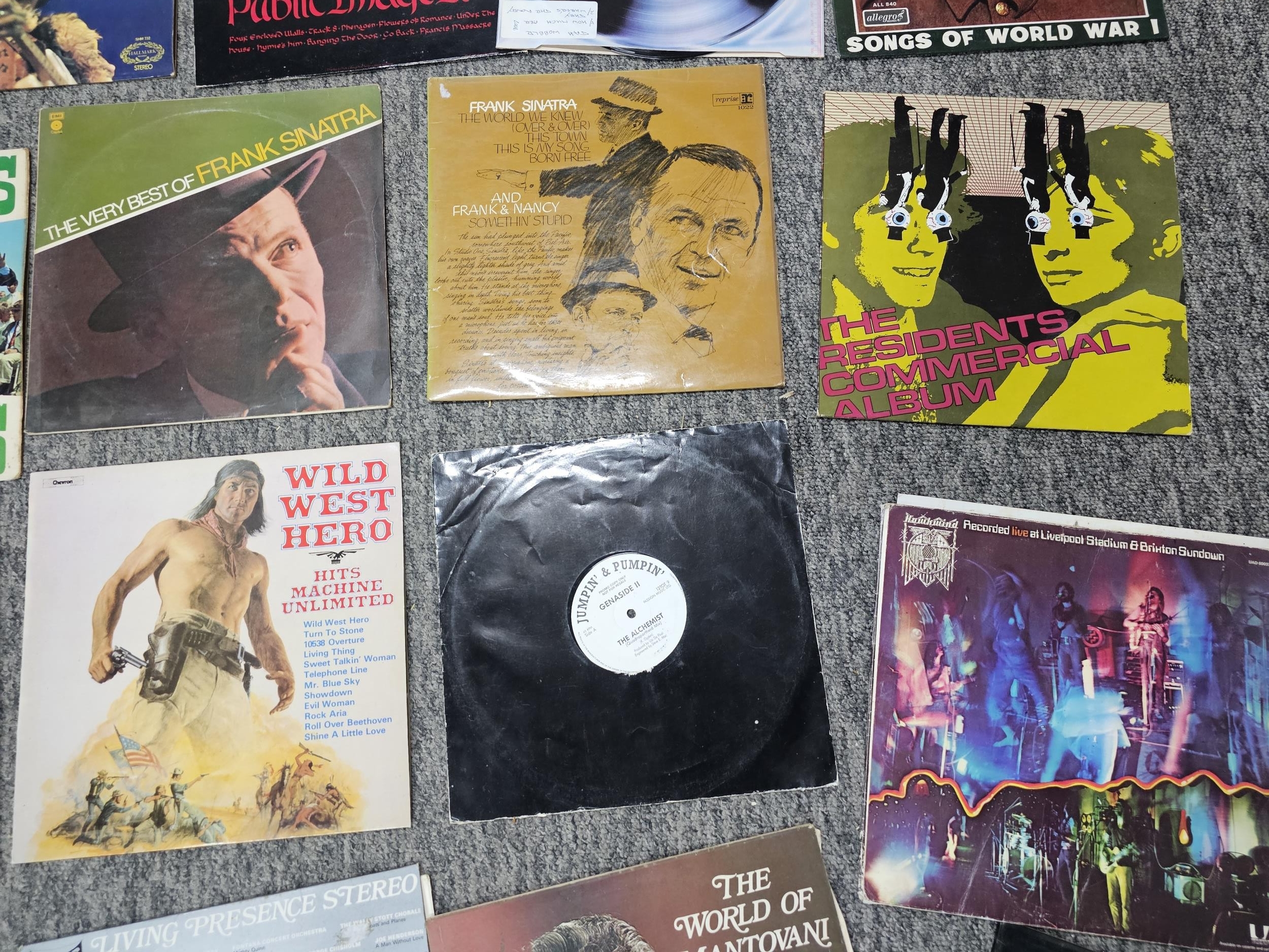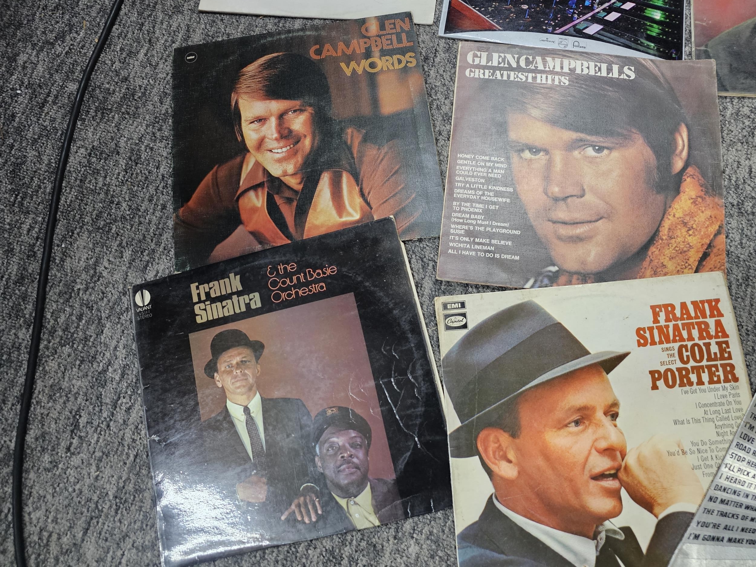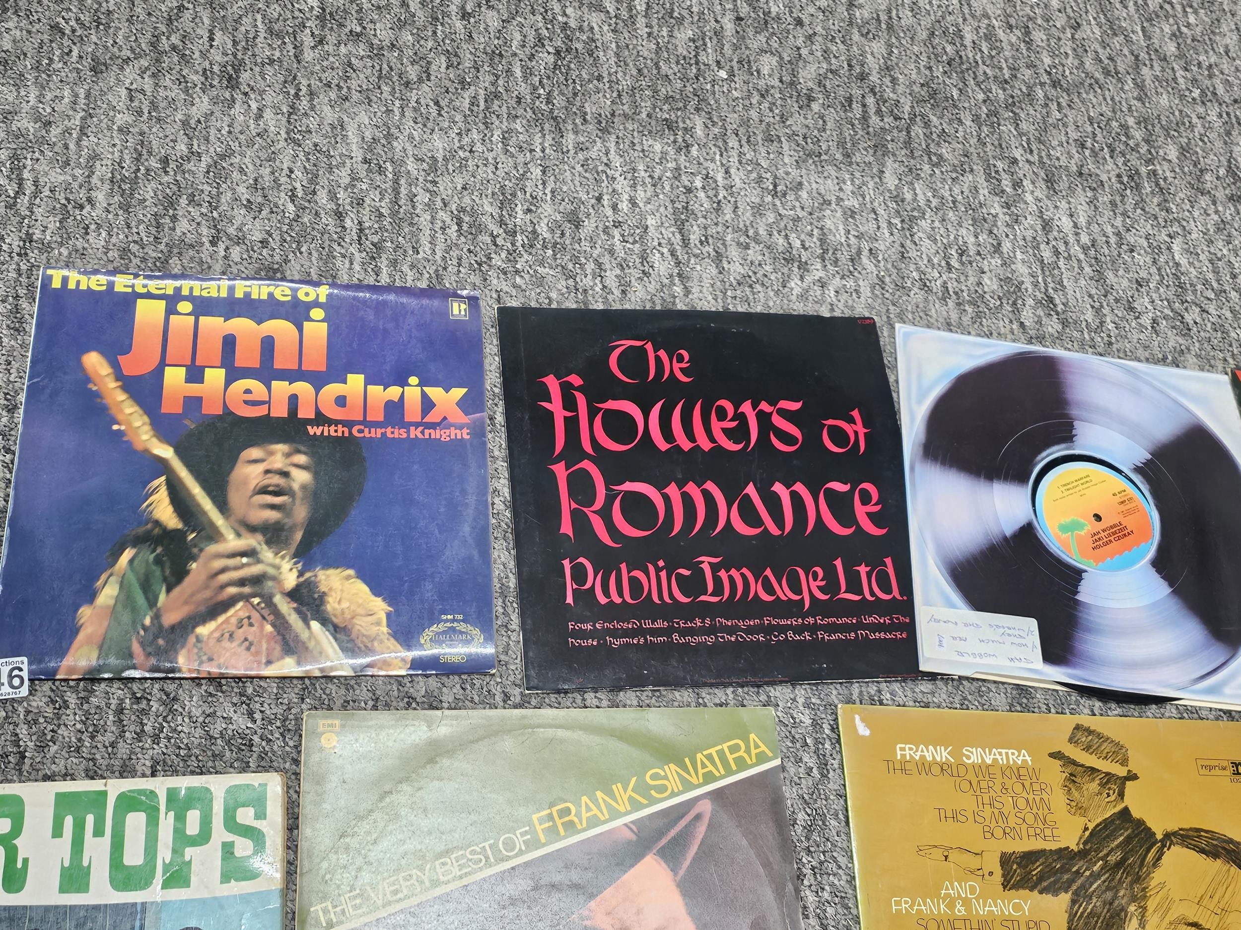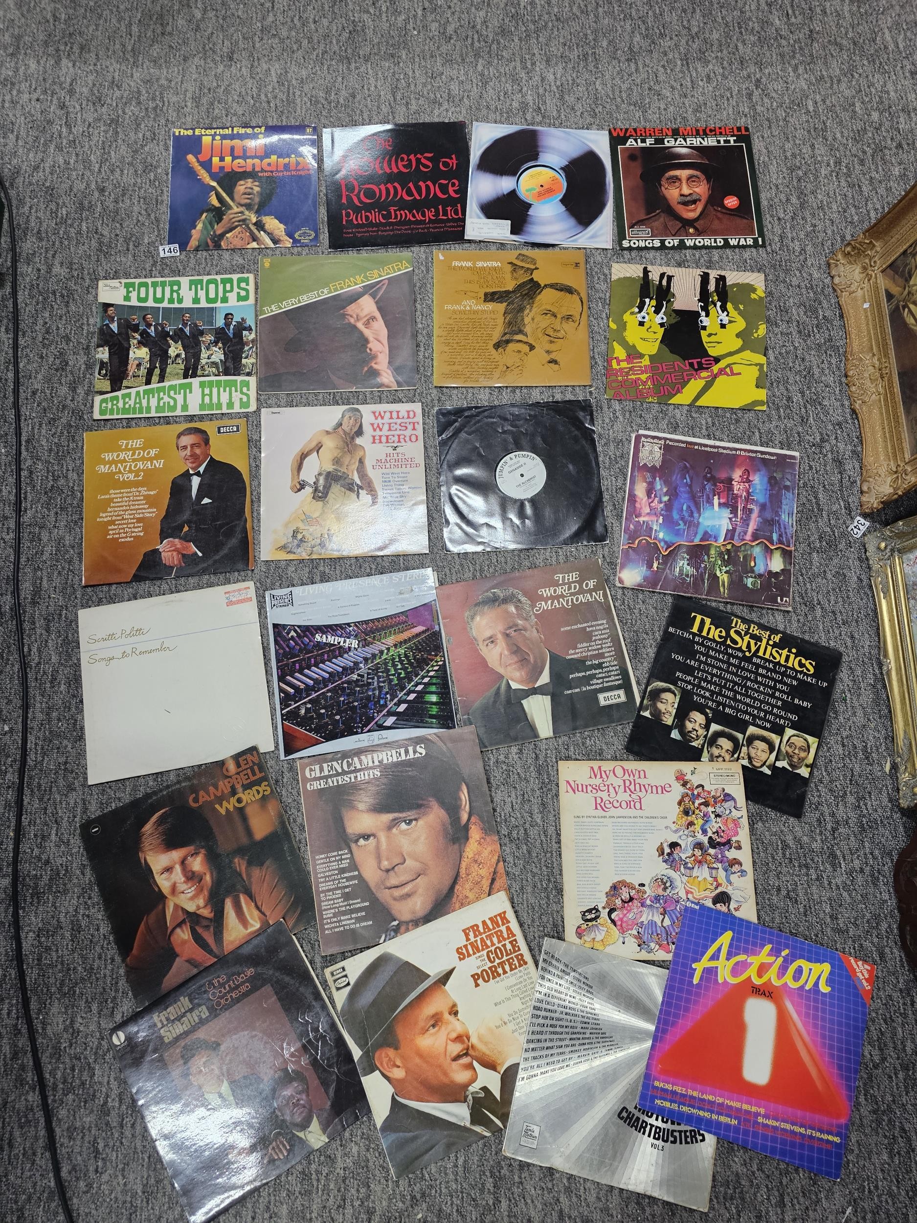 Collection of over 20 LP records of various genre to include Frank Sinatra, Glen Campbell, Warren Mitchell, Jimi Hendrix etc