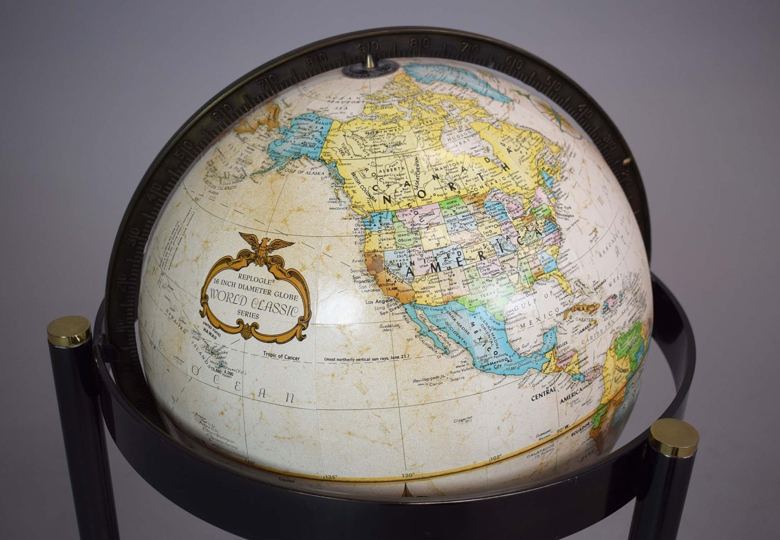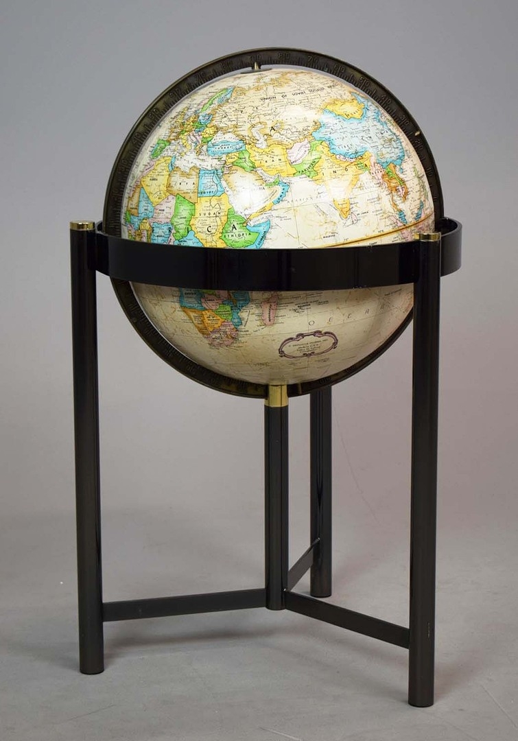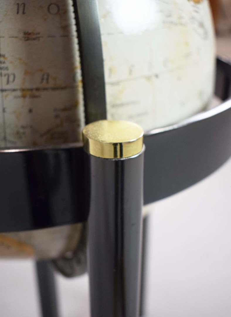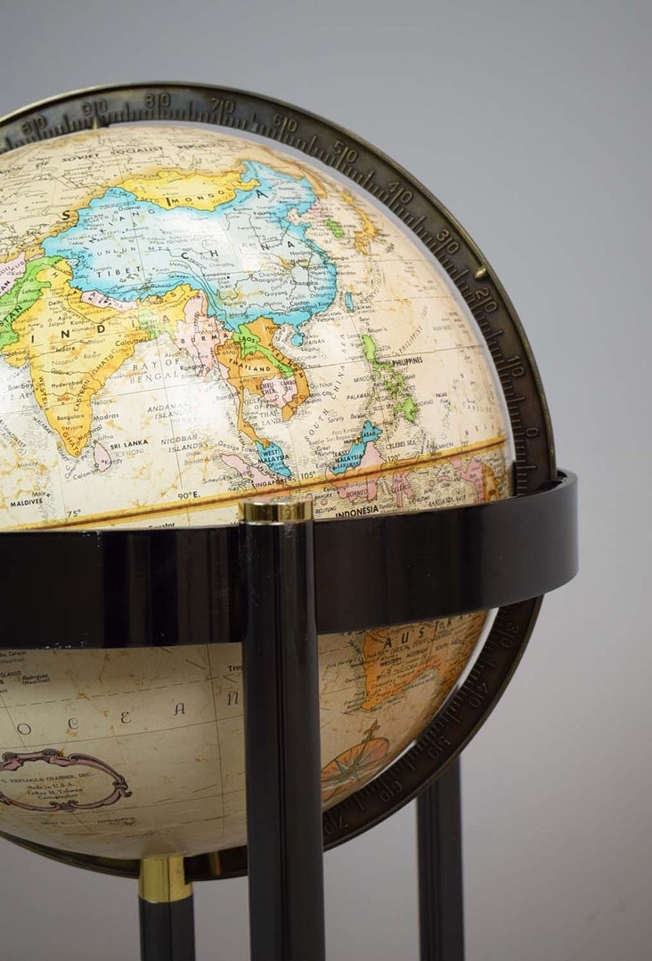A FLOOR GLOBE. mounted on a chrome and brass frame. c.1970's. 85cm h x 55cm w.