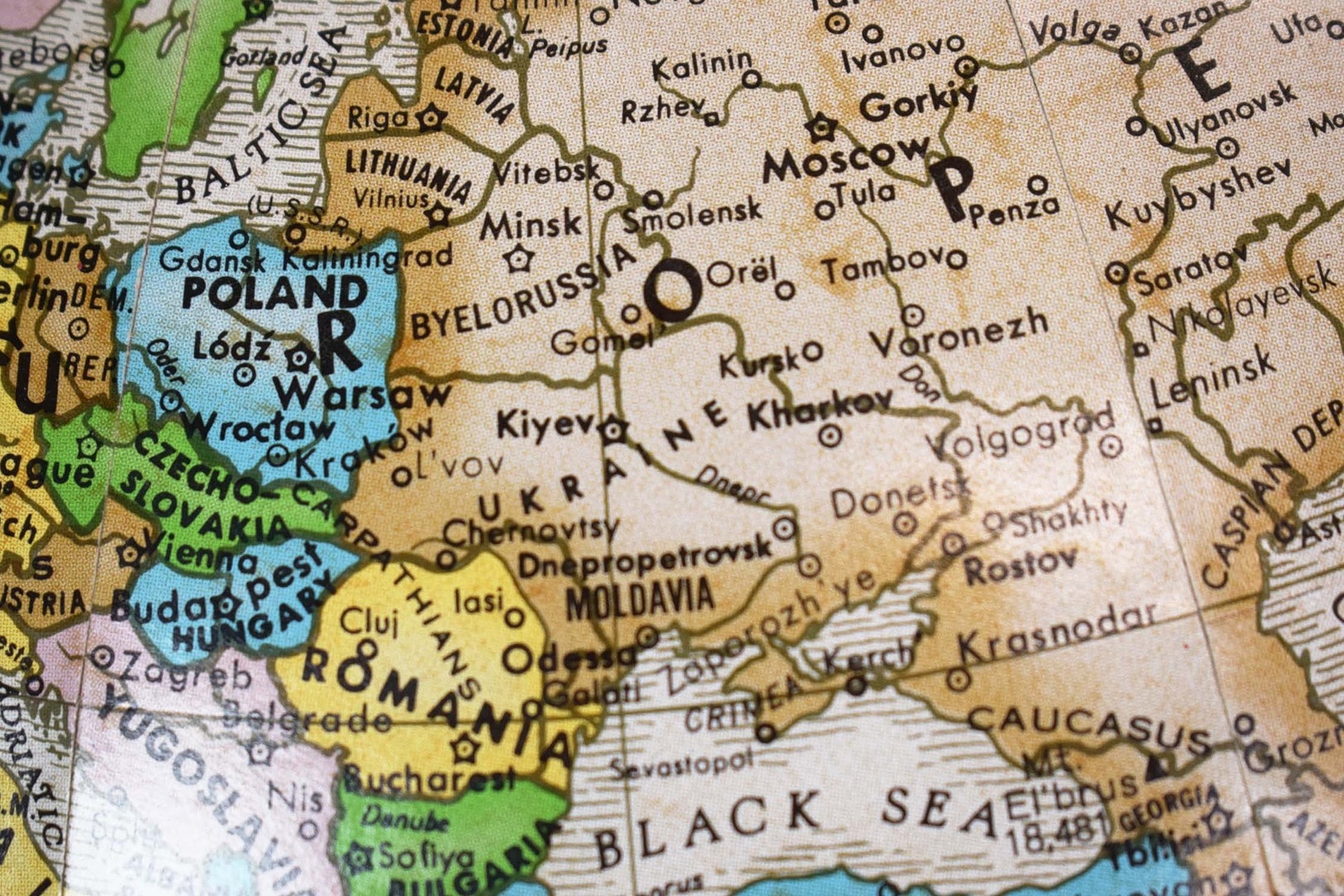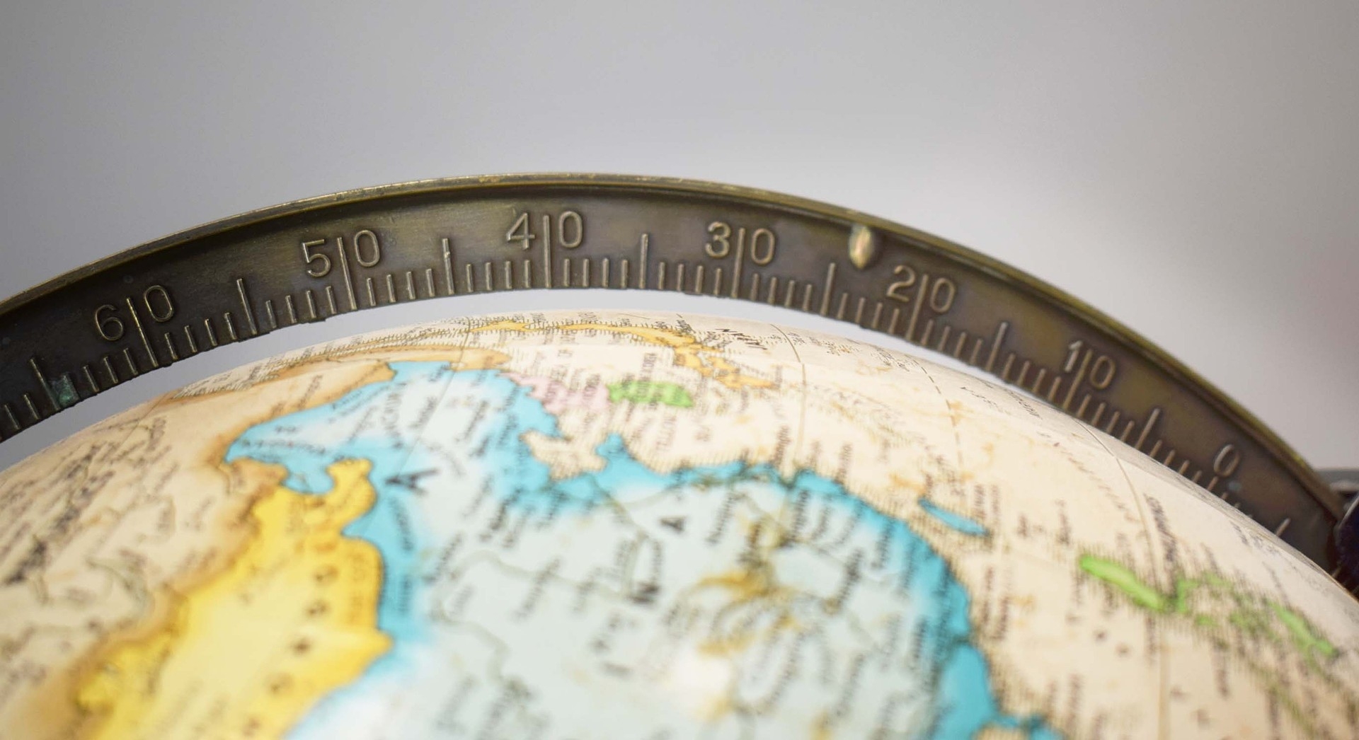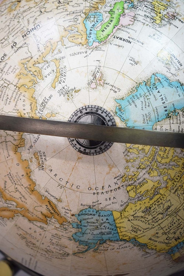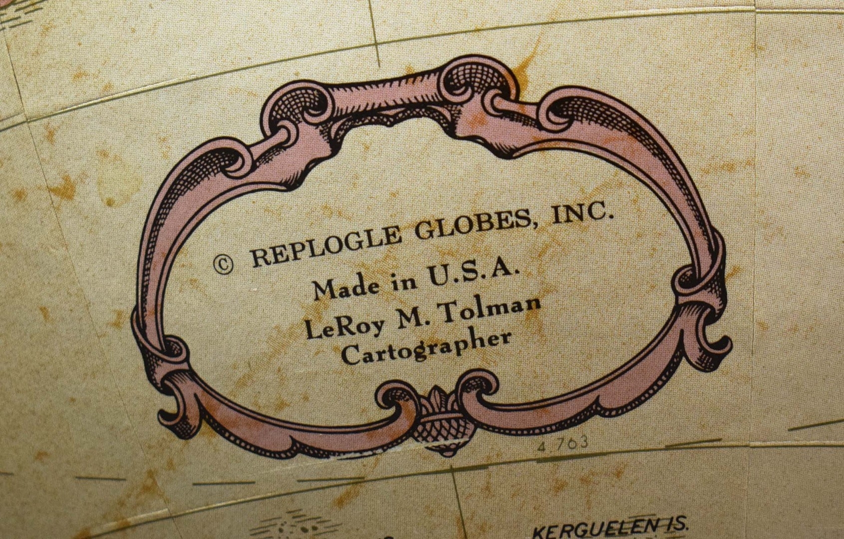 A FLOOR GLOBE. mounted on a chrome and brass frame. c.1970's. 85cm h x 55cm w.