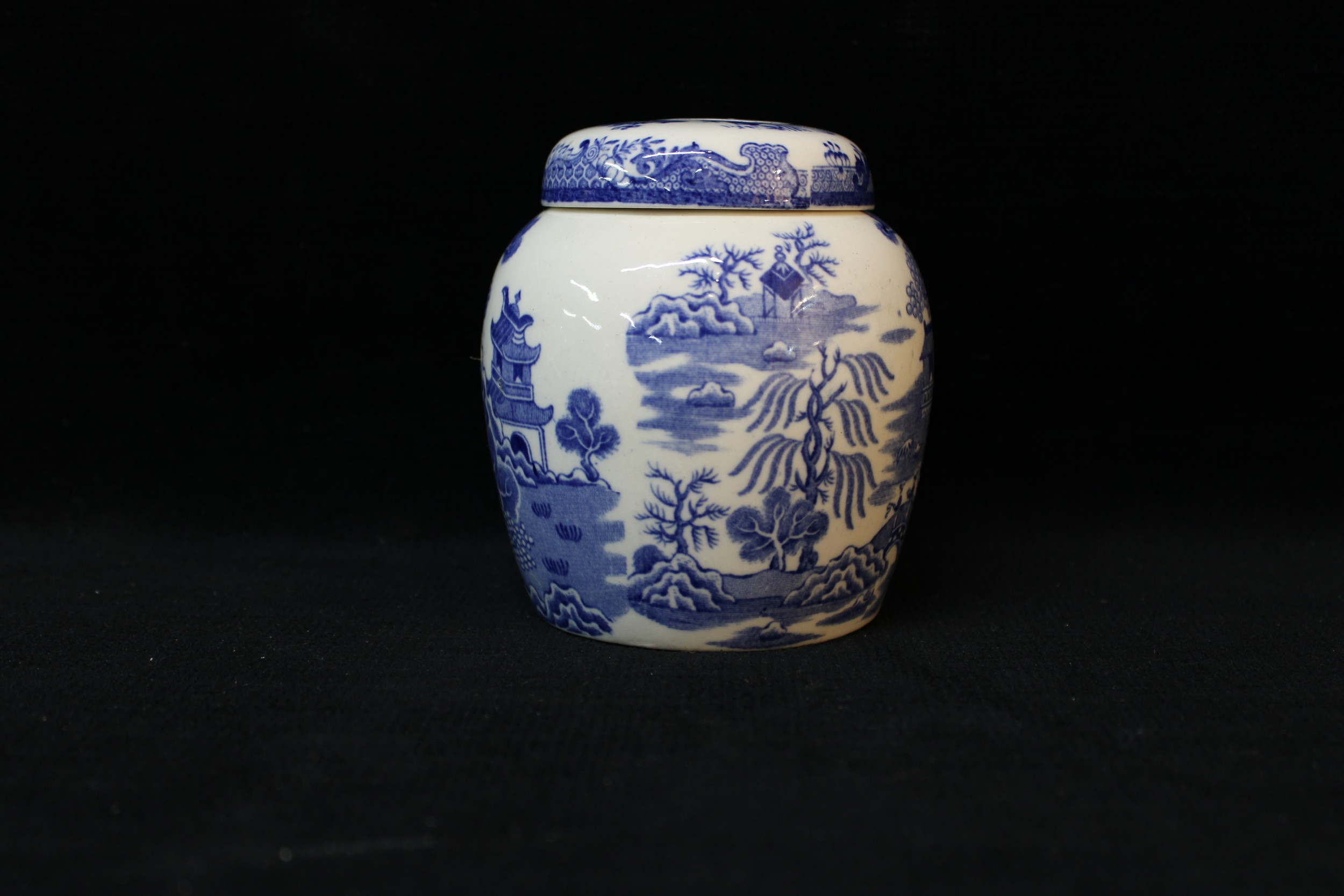 A Mason's willow pattern lidded pot 11cmH