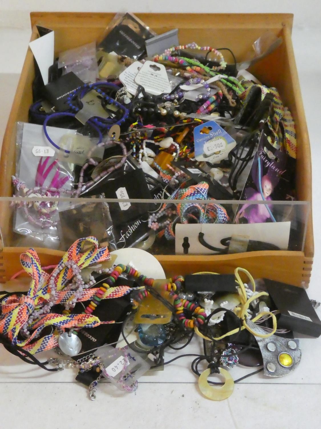 A large lot of fashion jewellery, laces, shell jewellery etc.
