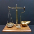 A superb set of antique brass shop scales with weights by DAY & MILLWARD. On nice wooden base and in lovely condition. Standing 38cm tall.