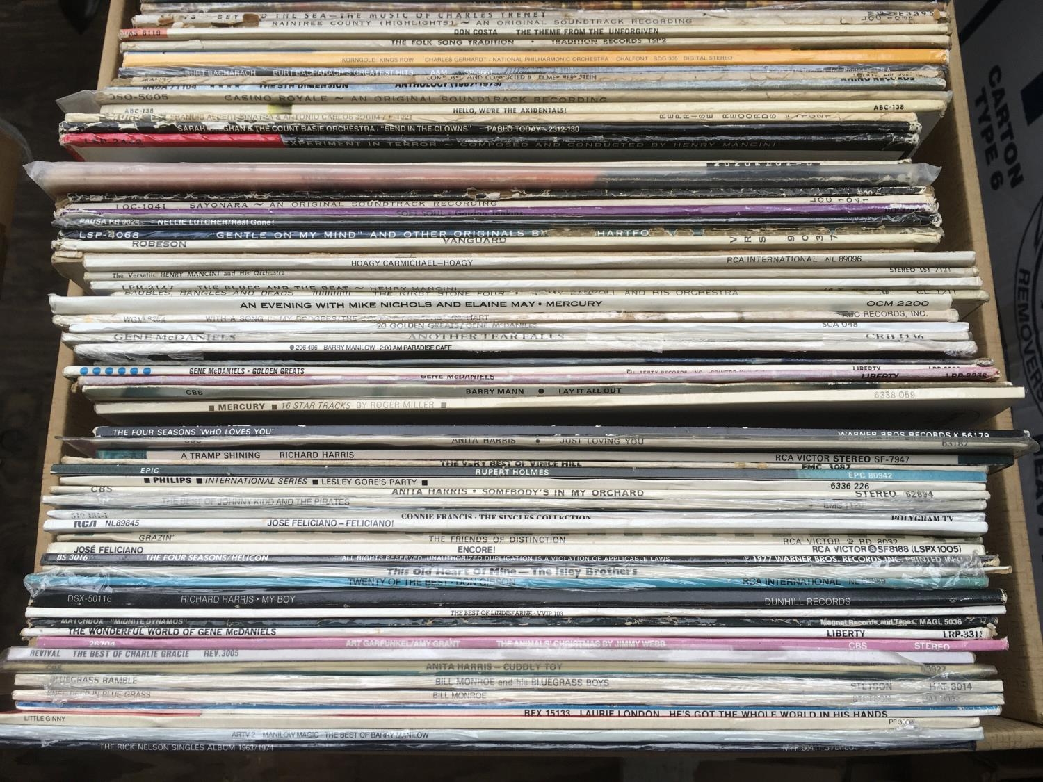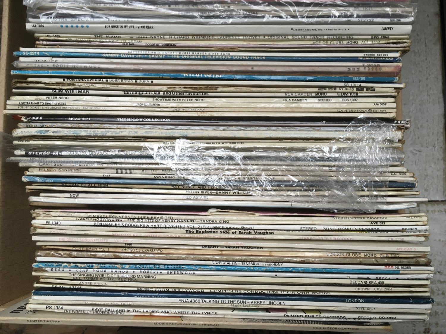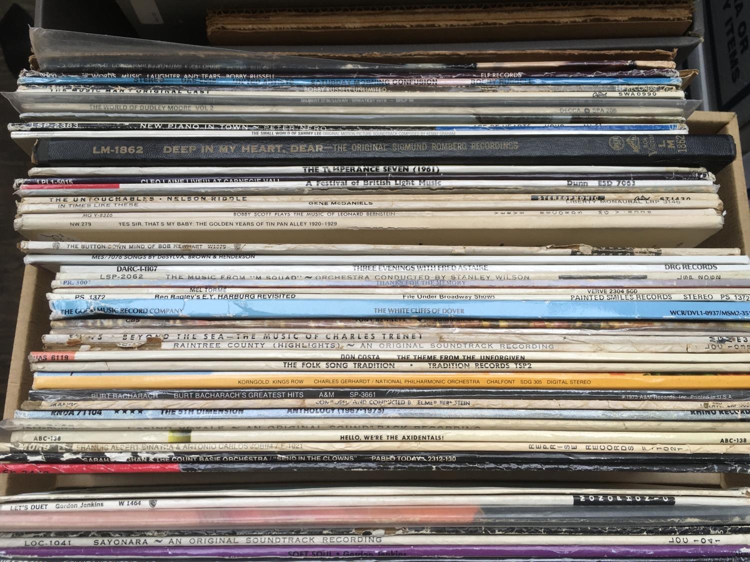 Four boxes of LPs by various artists including many jazz titles and show soundtracks.