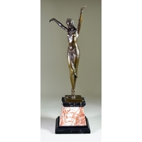 Amedeo Gennarelli (1881-1943) - Green patinated bronze figure of a kneeling young child wearing hat, holding aloft a ball, on shaped base, signed, 11ins high