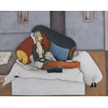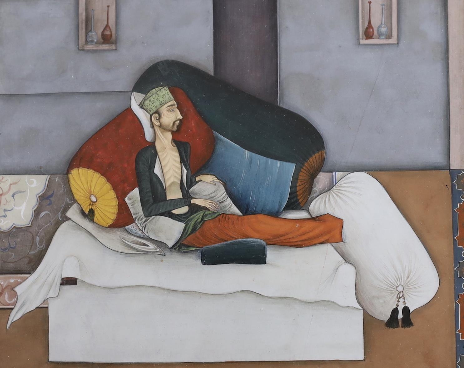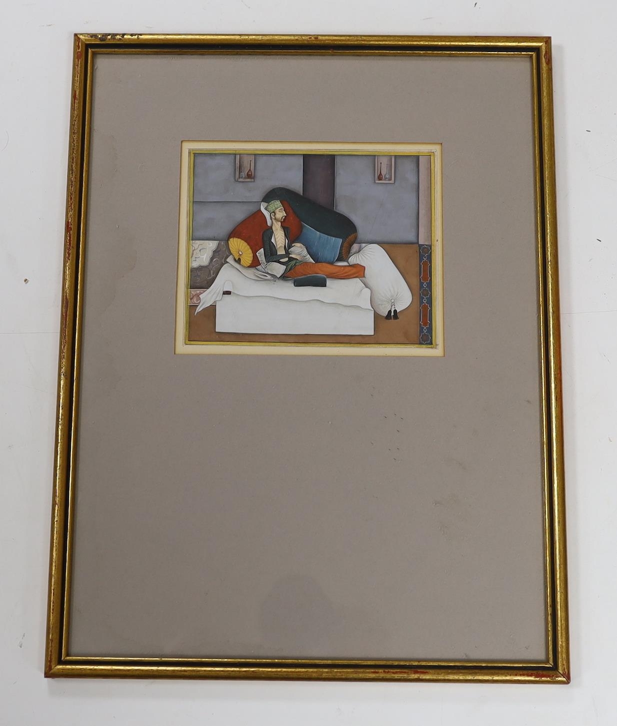Indian School, gouache, Figure on a day bed, 13 x 15.5cm
