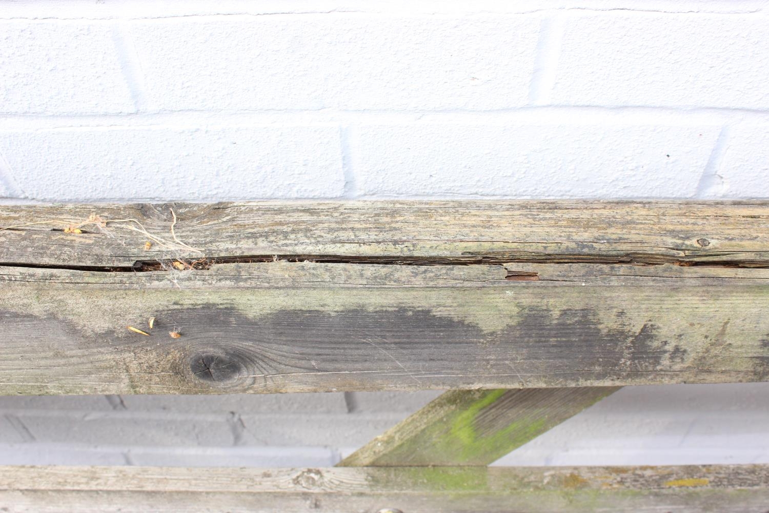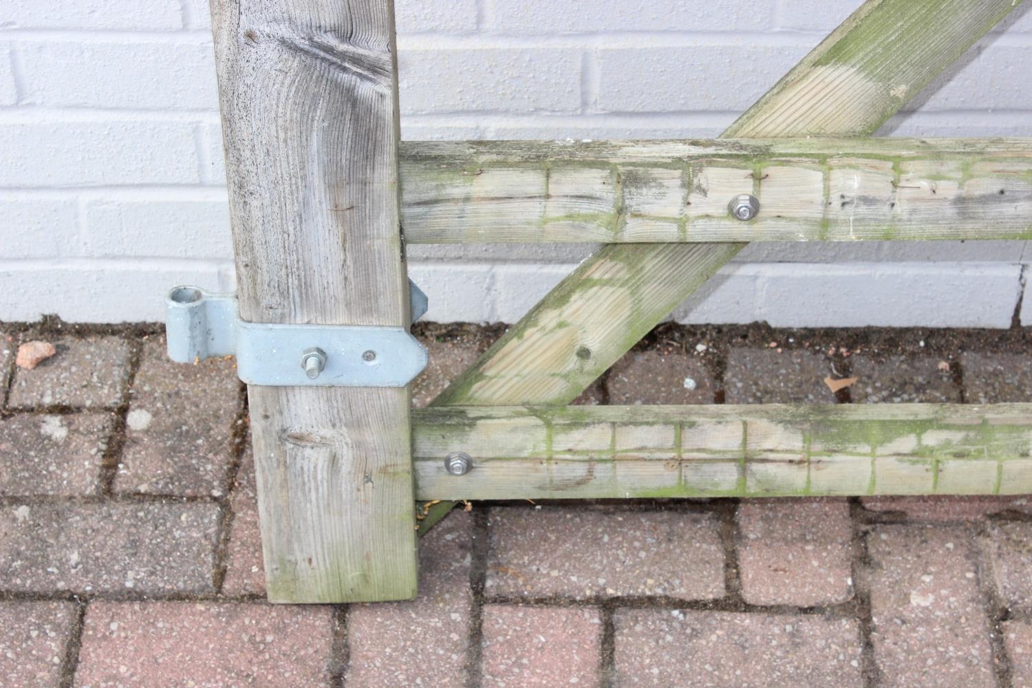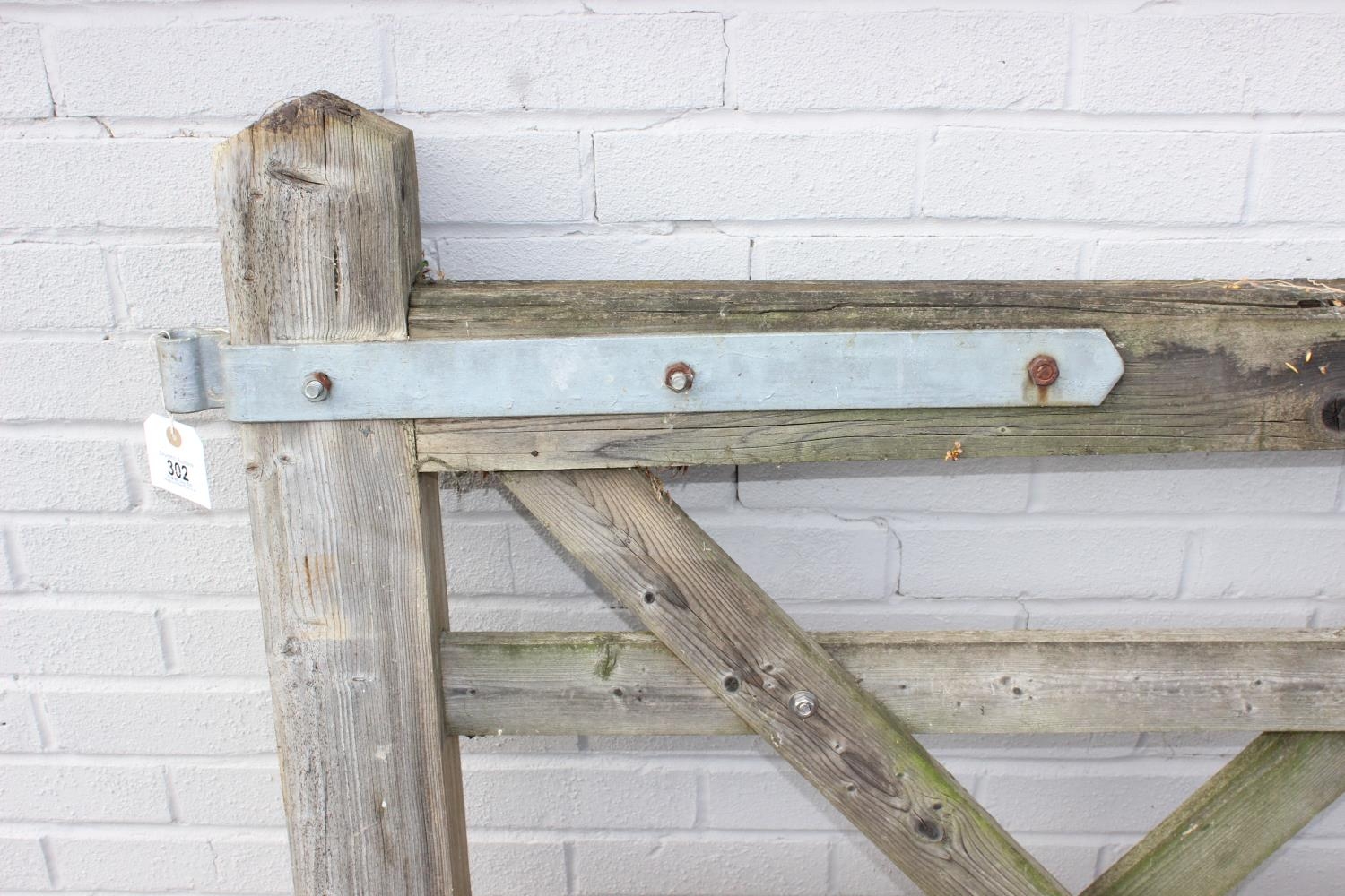 Weathered five bar wooden garden gate, 203cm wide x 122cm tall
