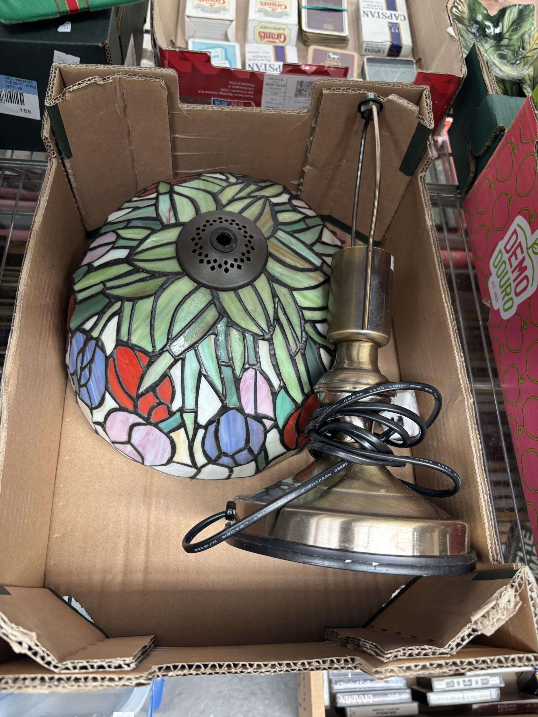 Box containing a 'tiffany' style lamp