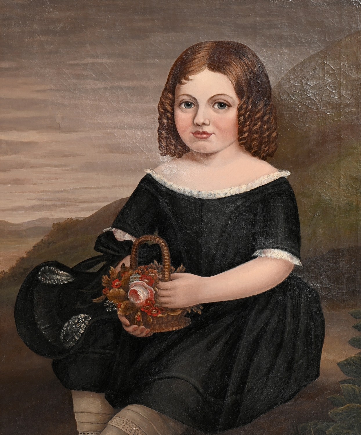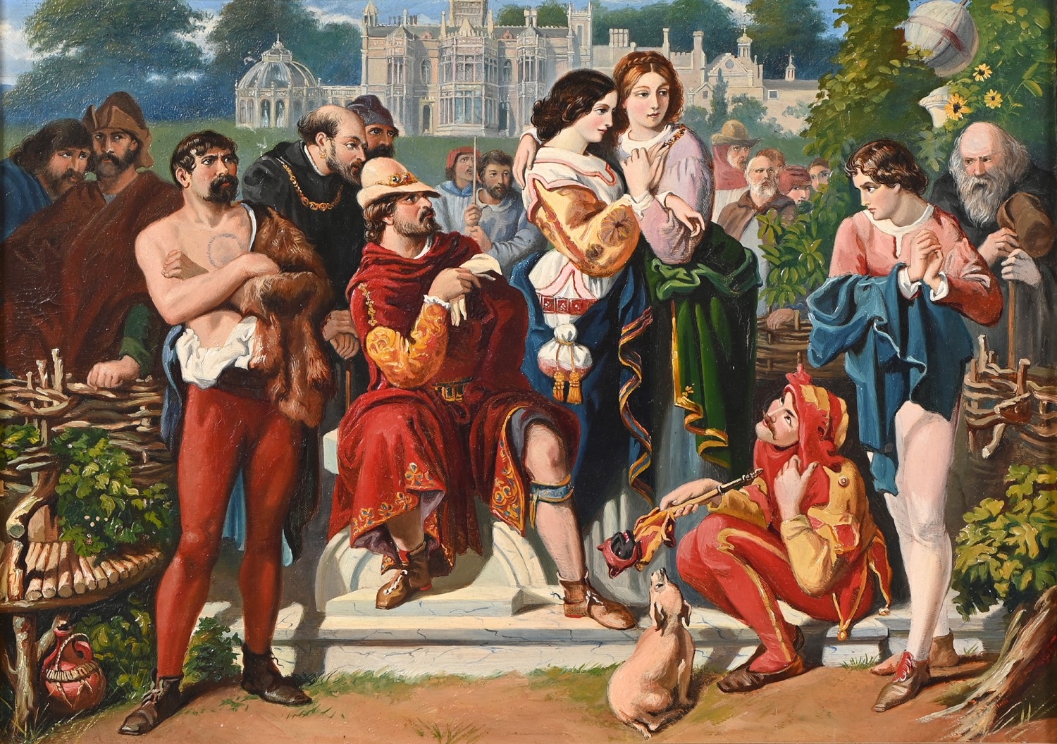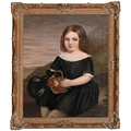 After Daniel Maclise RA - Orlando about to Engage with Charles the Wrestler, with Preston Hall, near Maidstone in the background, acrylic on board, 23 x 33cm; English School, c 1860 - Portrait of a Young Girl, three-quarter length, oil on canvas, 60 x 49cm, (2)