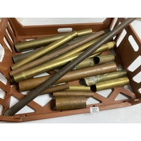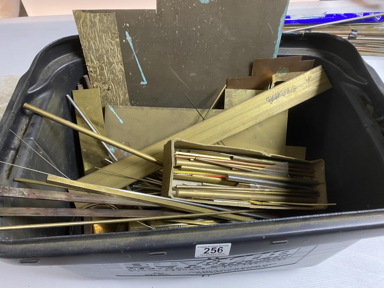 RATHER HEAVY BOX OF BRASS, COPPER ROUND BAR, PLATE ETC