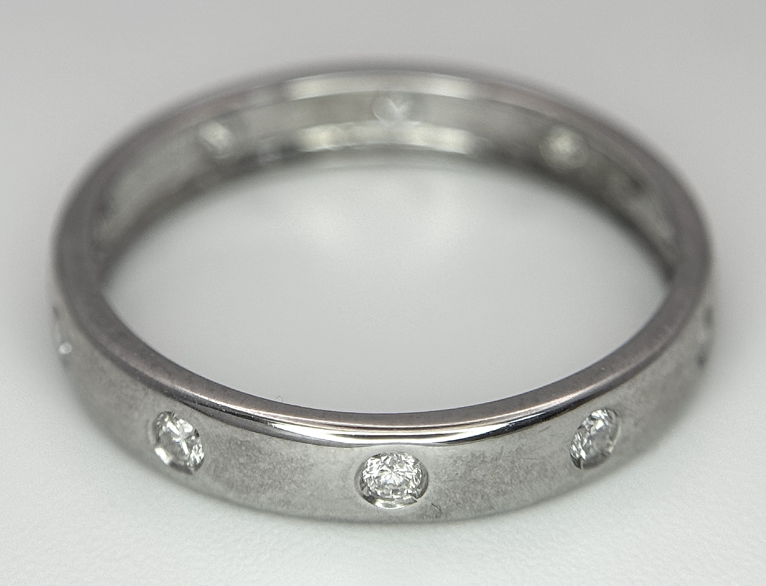 AN 18K WHITE GOLD DIAMOND SET BAND RING. 1.7G TOTAL WEIGHT, SIZE L. Ref: SC 2087