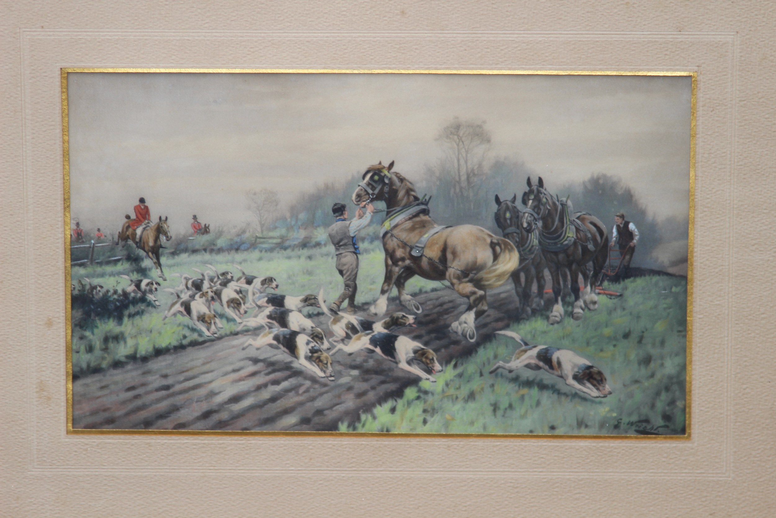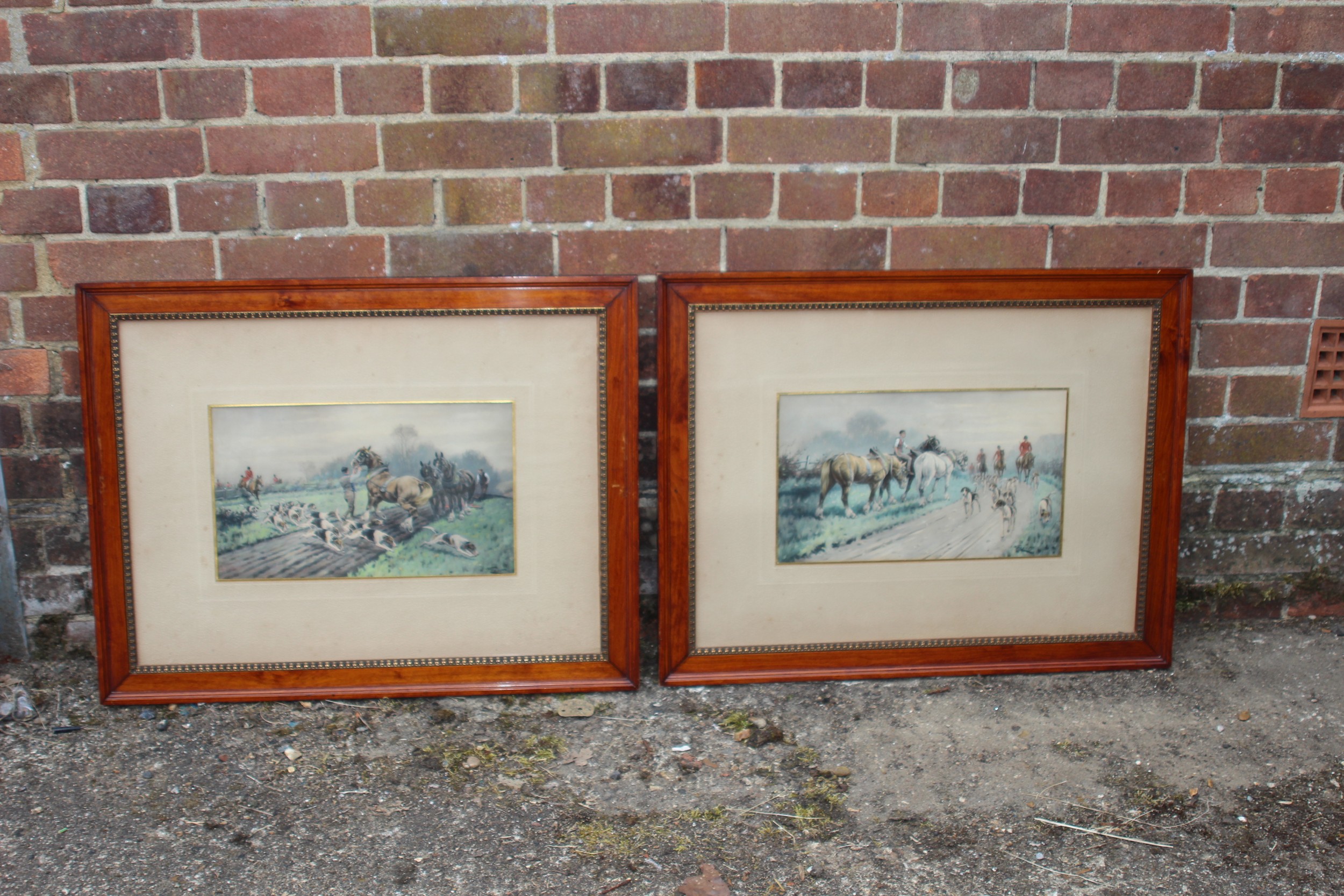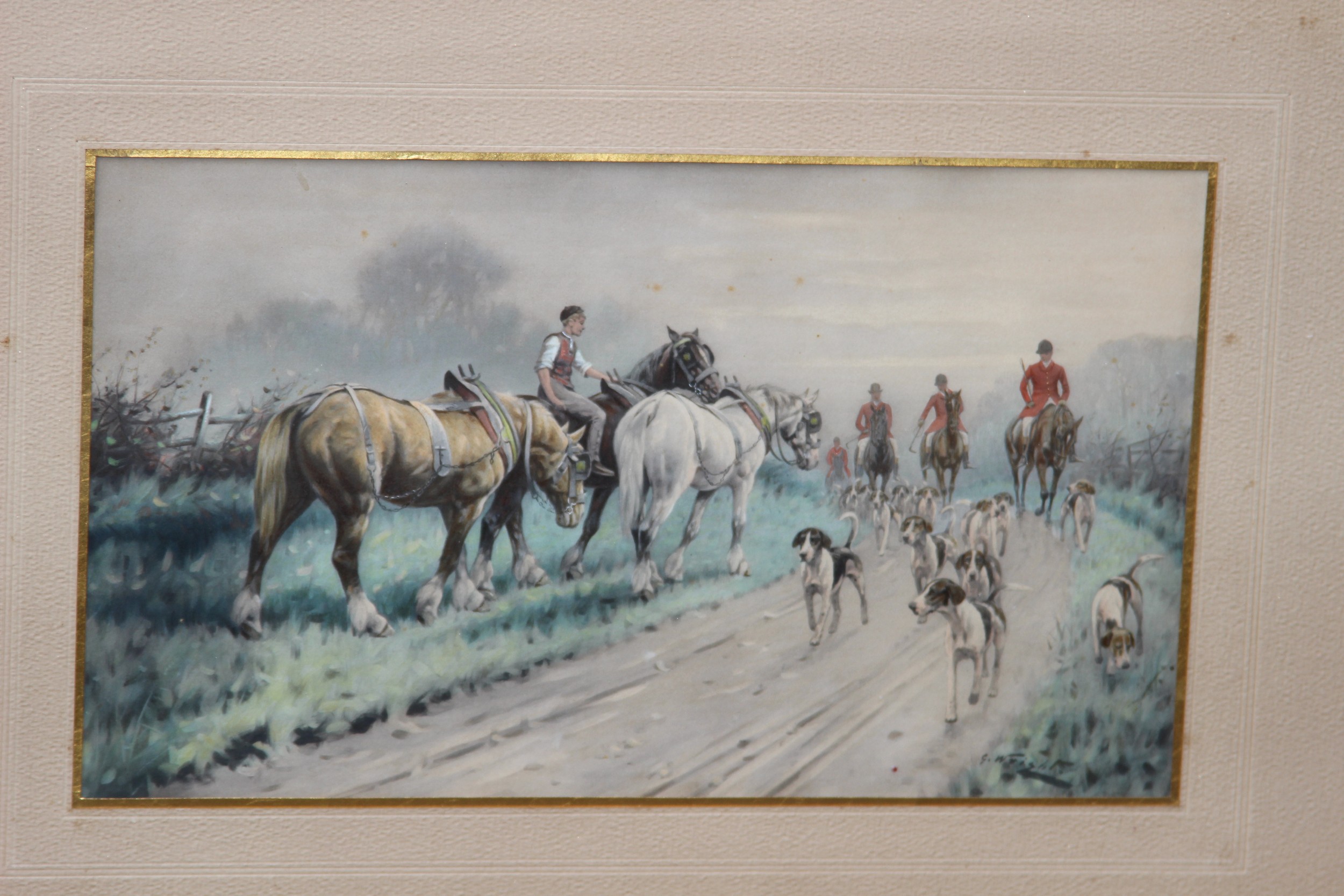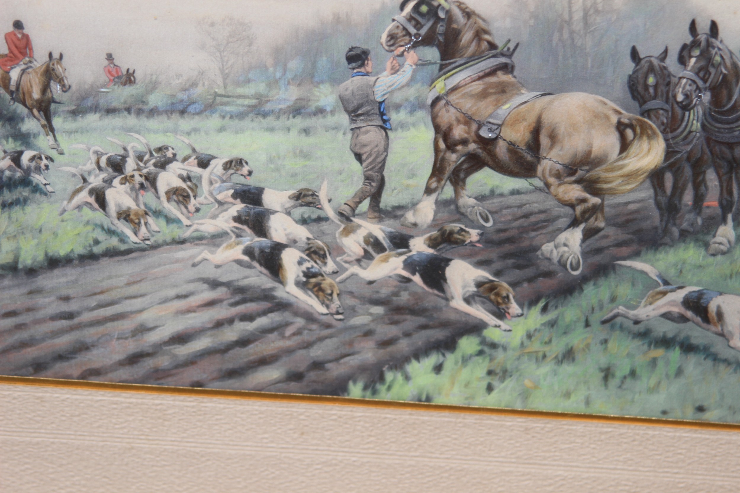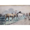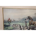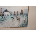 2 X OVERLAID LITHOGRAPH OF HUNTING SCENES SIGNED G.WRIGHT78 X 61CM