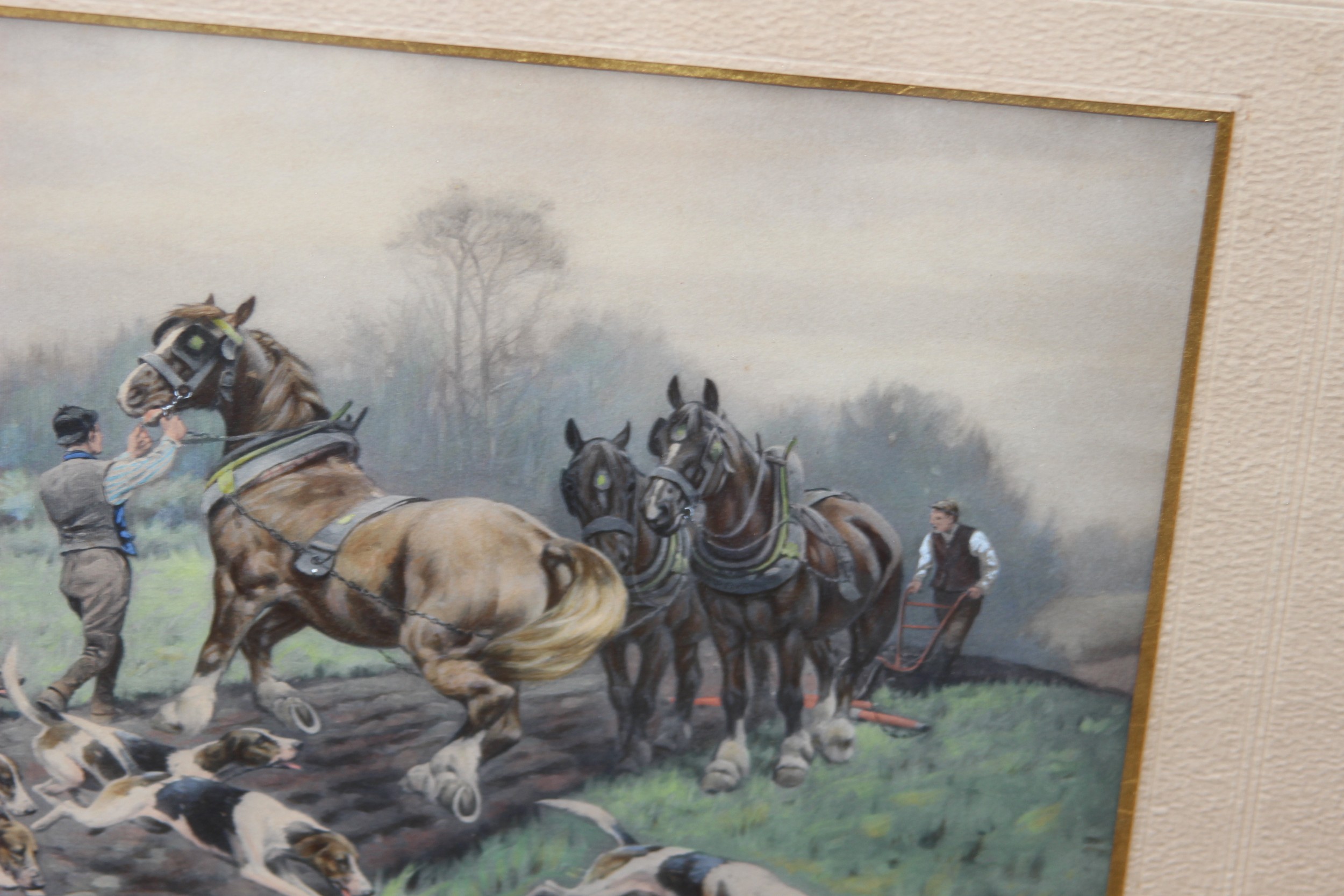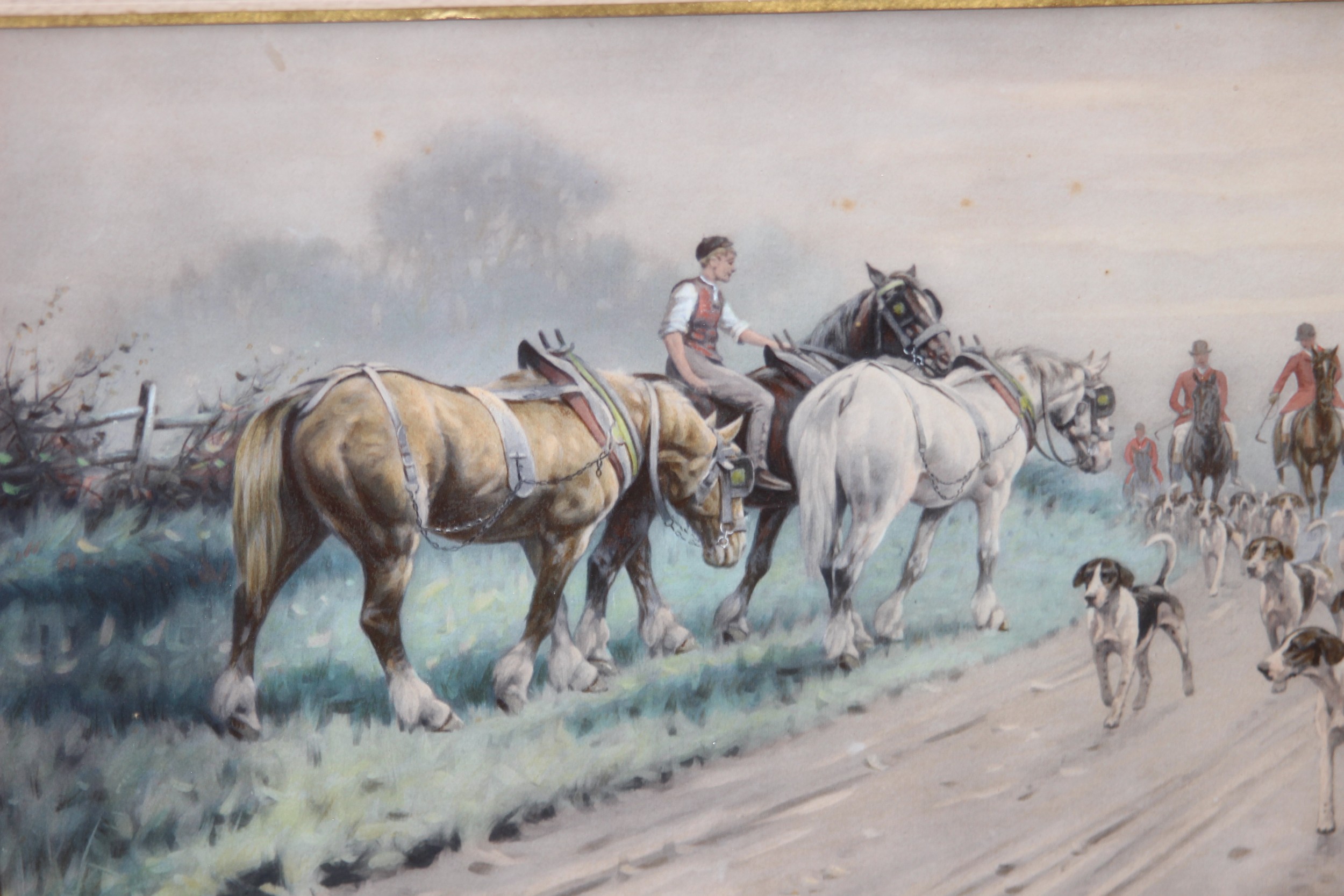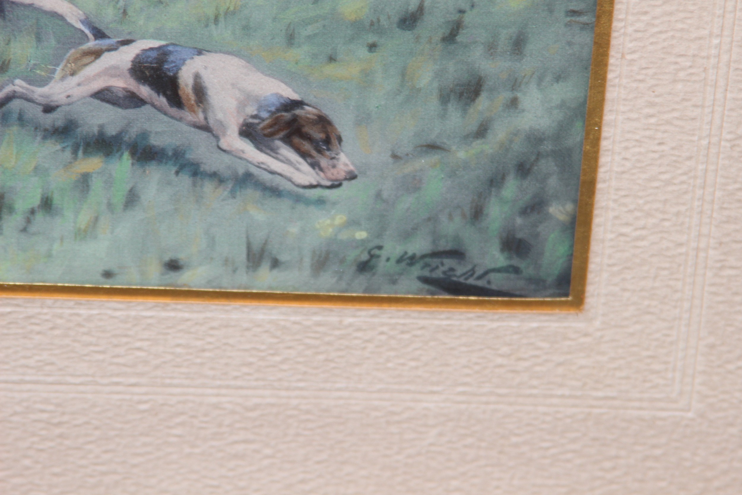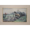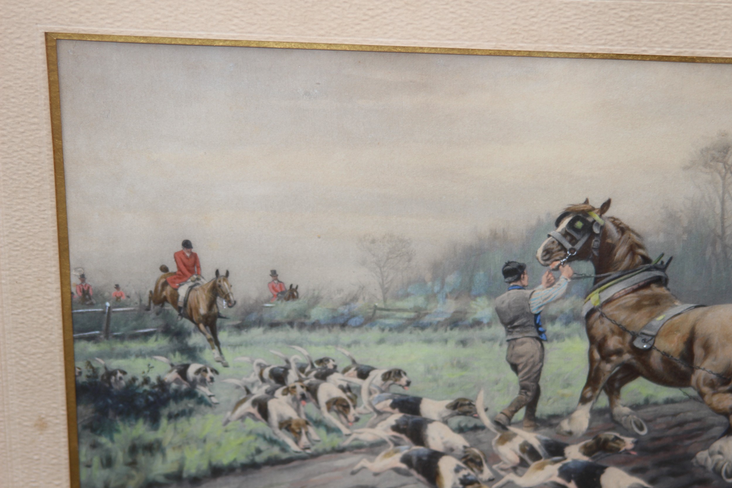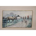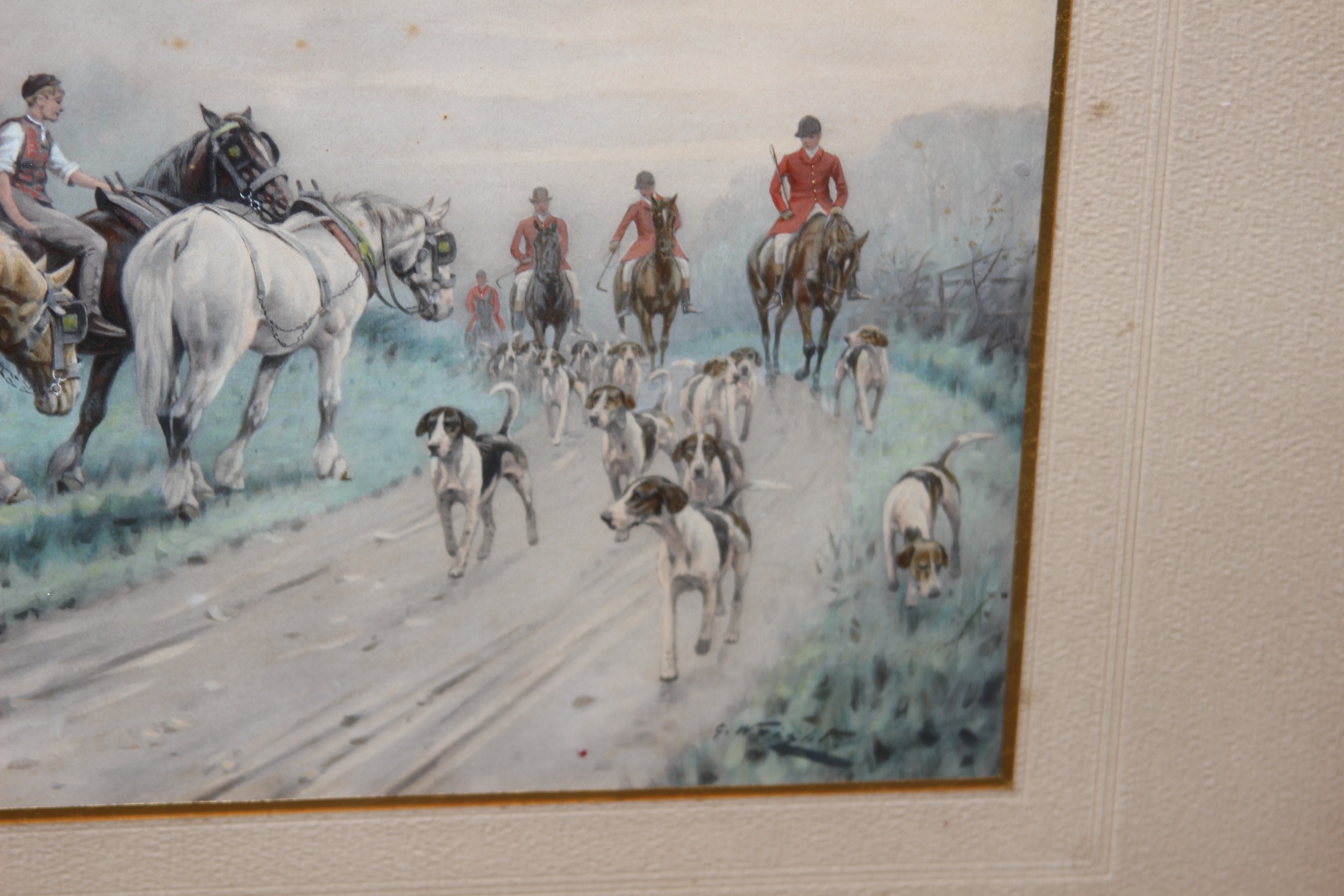 2 X OVERLAID LITHOGRAPH OF HUNTING SCENES SIGNED G.WRIGHT78 X 61CM