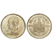 Germany, Federal Republic, silver 10 Marks, 1972 D, error with arabesques on edge, Munich Olympics (KM 134.2). In NGC holder graded MS 63 (2912515-012). Circulation issue. The finest and unique in NGC census, none in PCGS census. Of the utmost rarity, likely unique, this variety features arabesques on edge. This 1972 D 10 Mark with arabesques on edge is an excessively rare variety that is known on only one previously sold 1972 D coin which was a Proof issue. To our knowledge this is the only circulation issue of the 1972 D with the arabesques that has even been offered on the market.