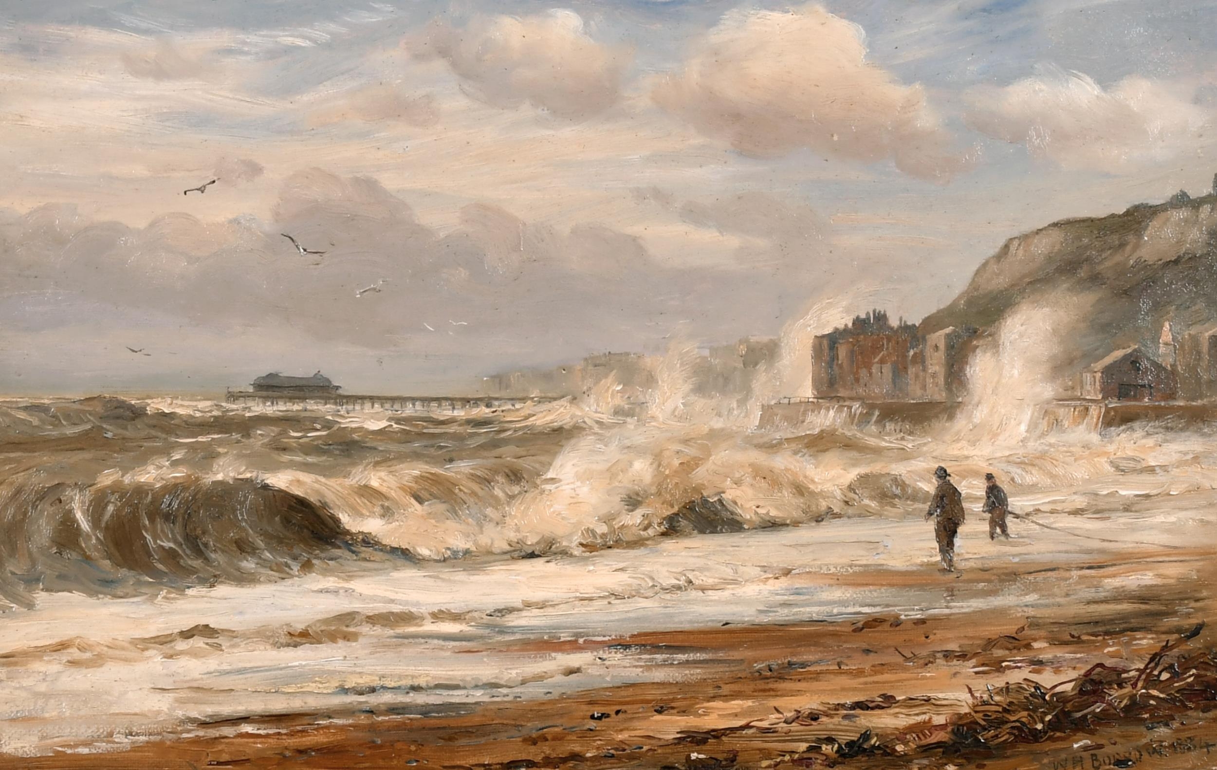 William Henry Borrow (act.1863-1901) British. A Beach Scene near Hastings, Oil on Canvas, Signed and Dated 1884, 8.25" x 13" (21 x 33cm)