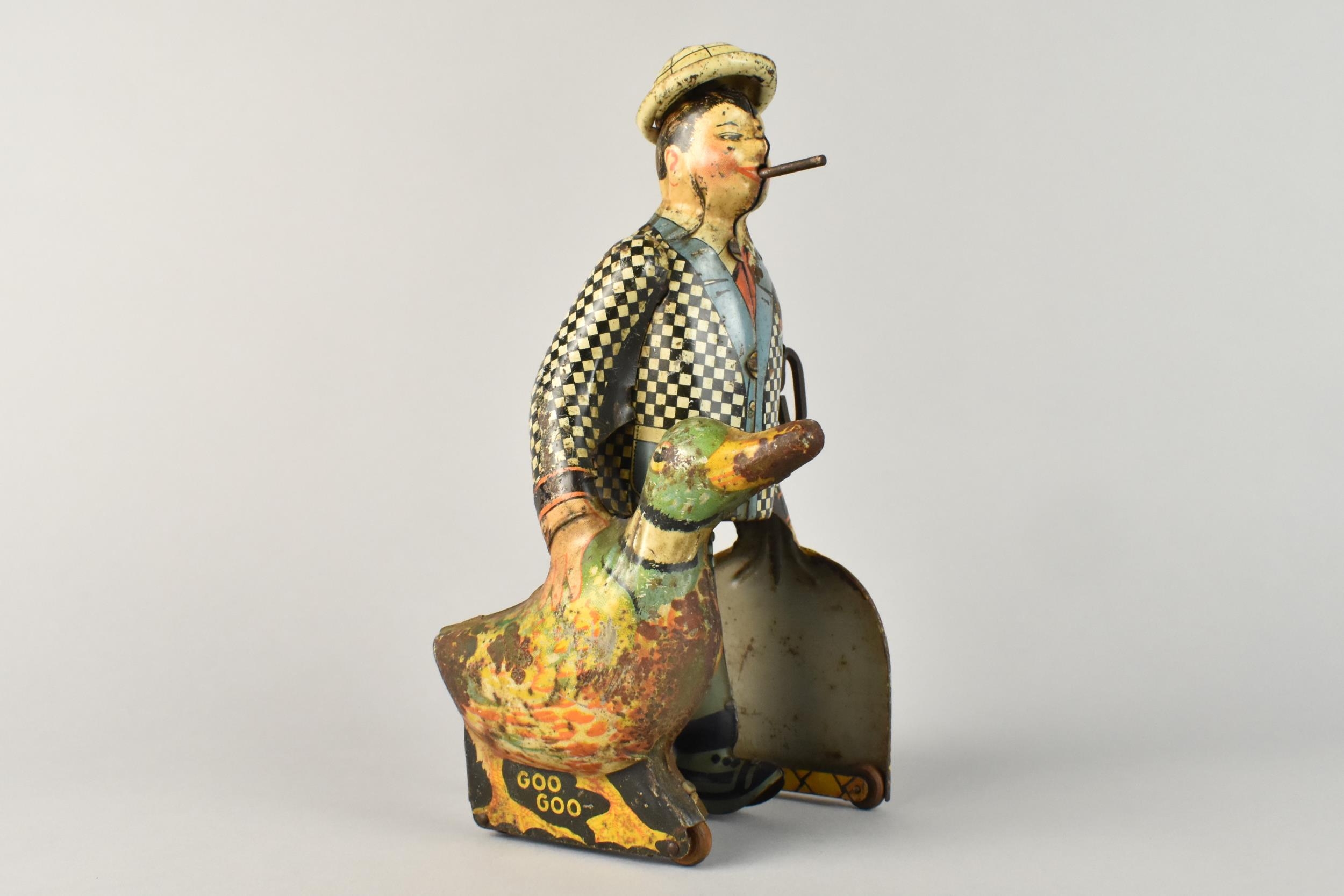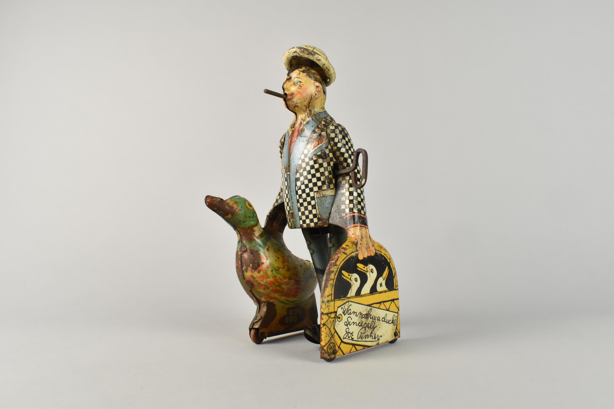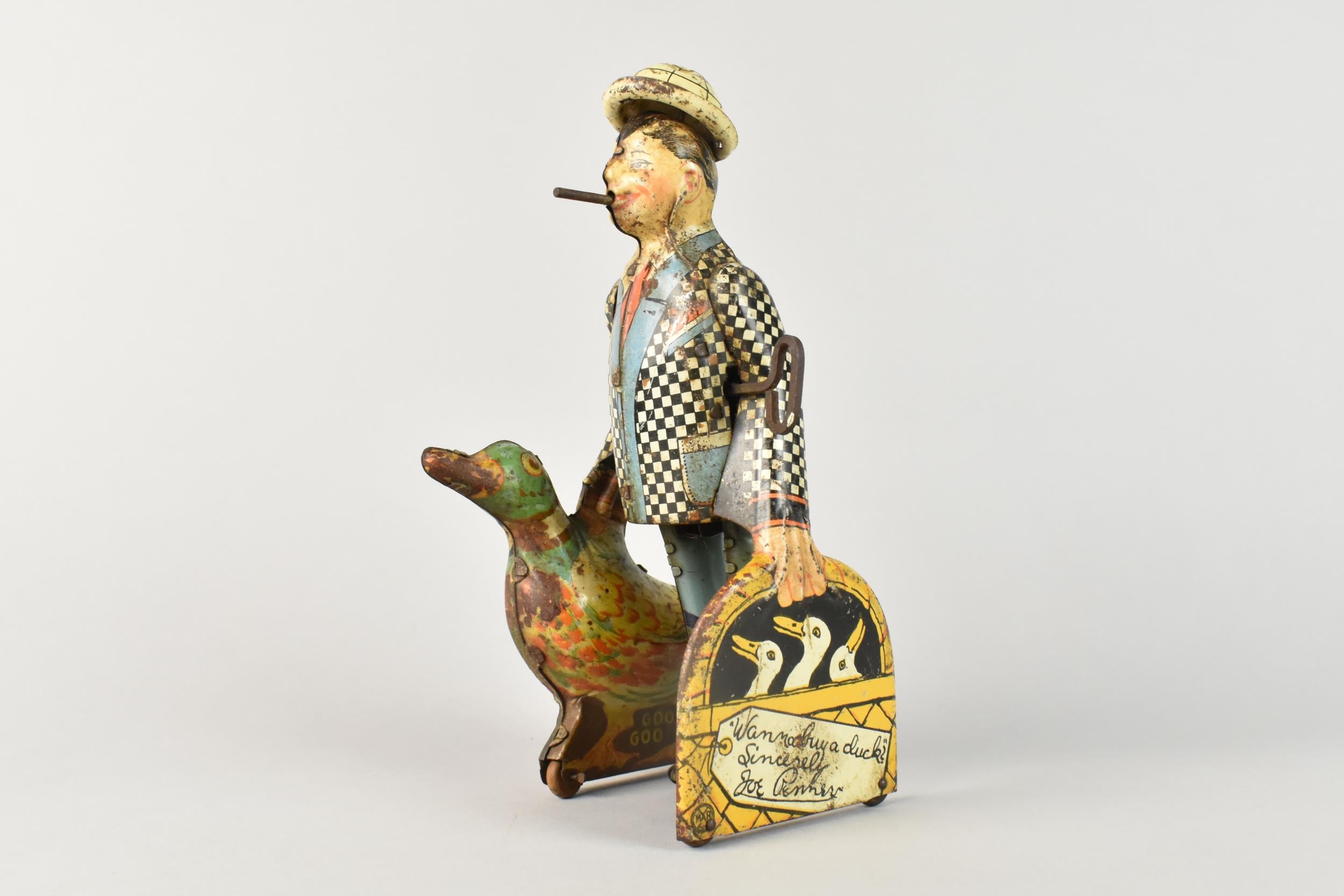 A 1930's Tin Plate Clockwork Toy by Marx, 'Wannabuy A Duck?', 21cms High, Working Order