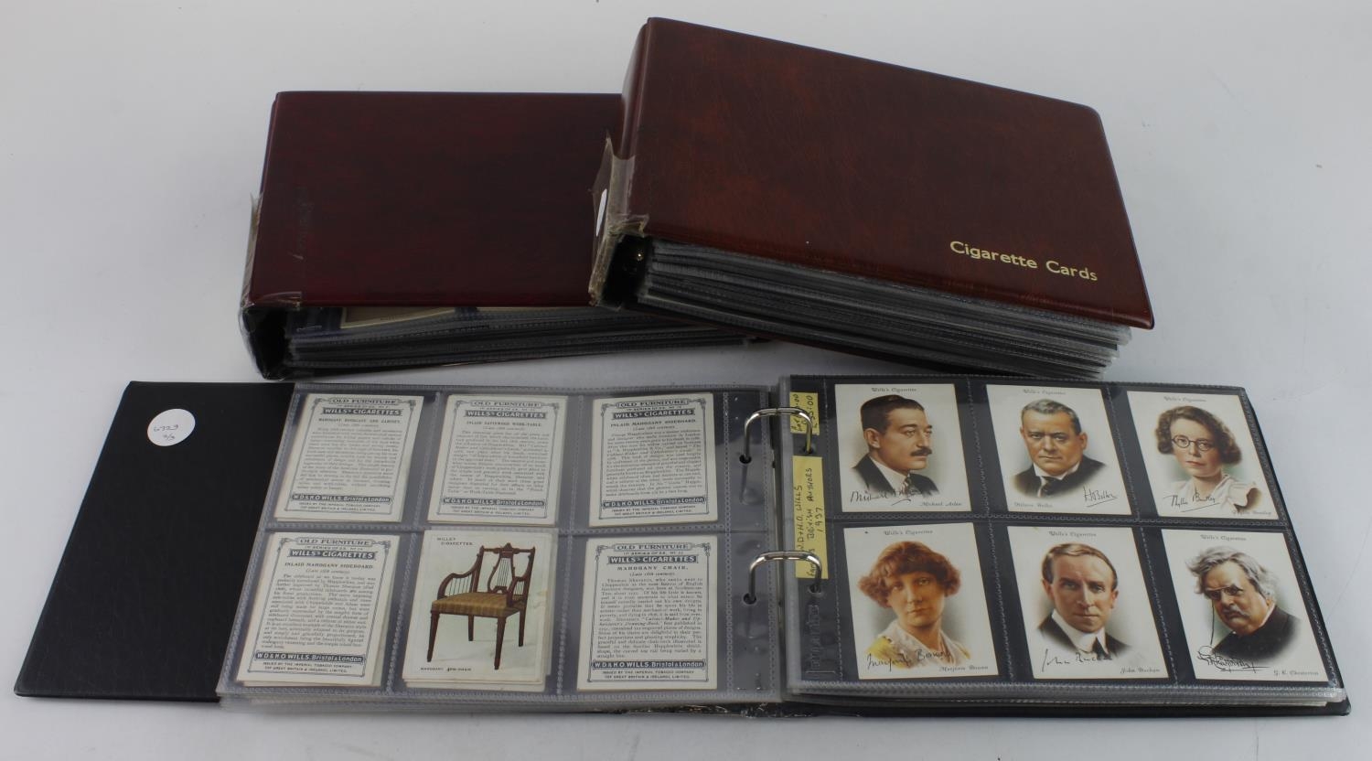 Modern albums x 3, containing 33 complete sets of cards, issuers include Players, Lea, Carreras, Will's & Gallaher's, mainly VG cat value £1670