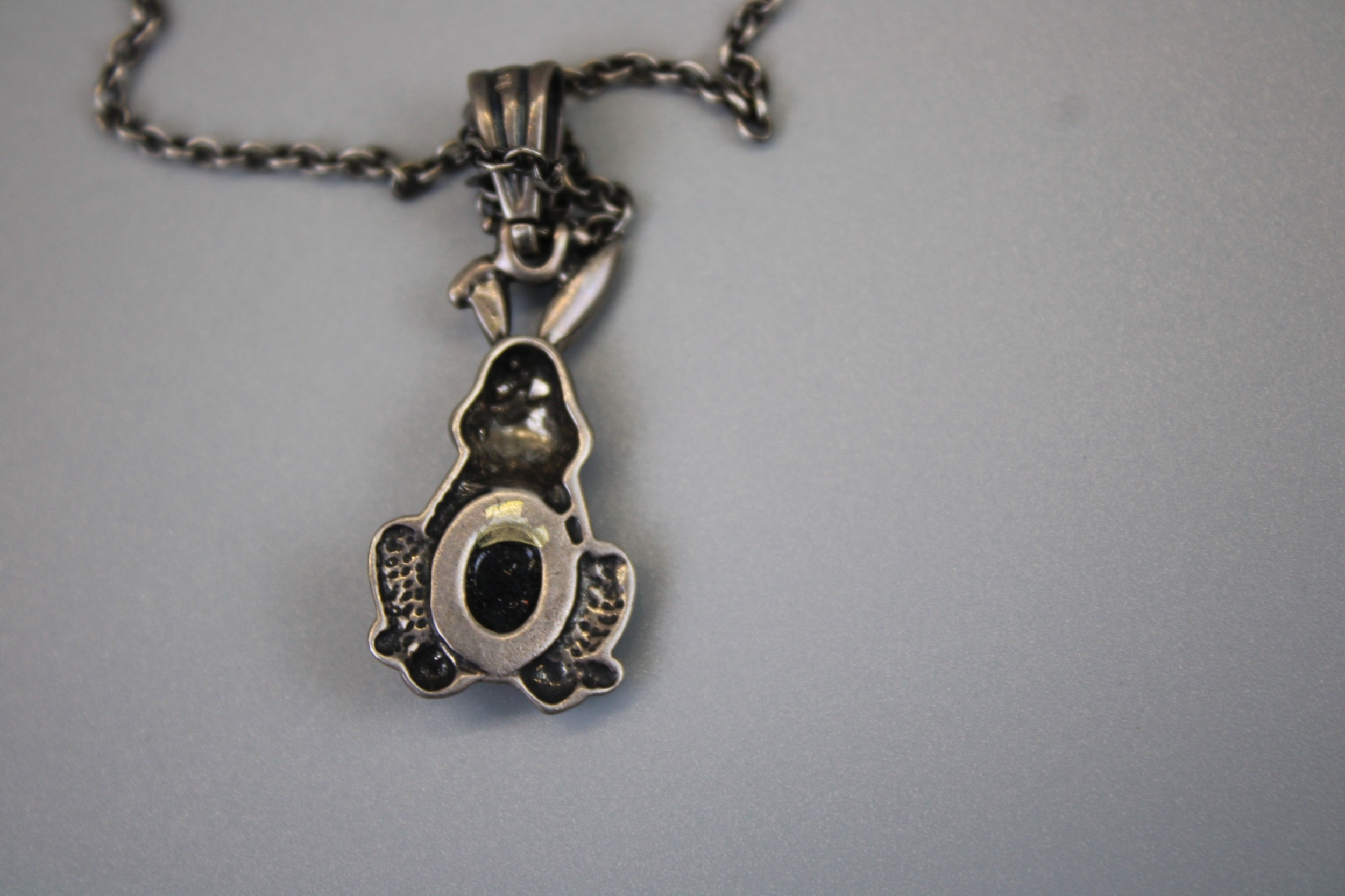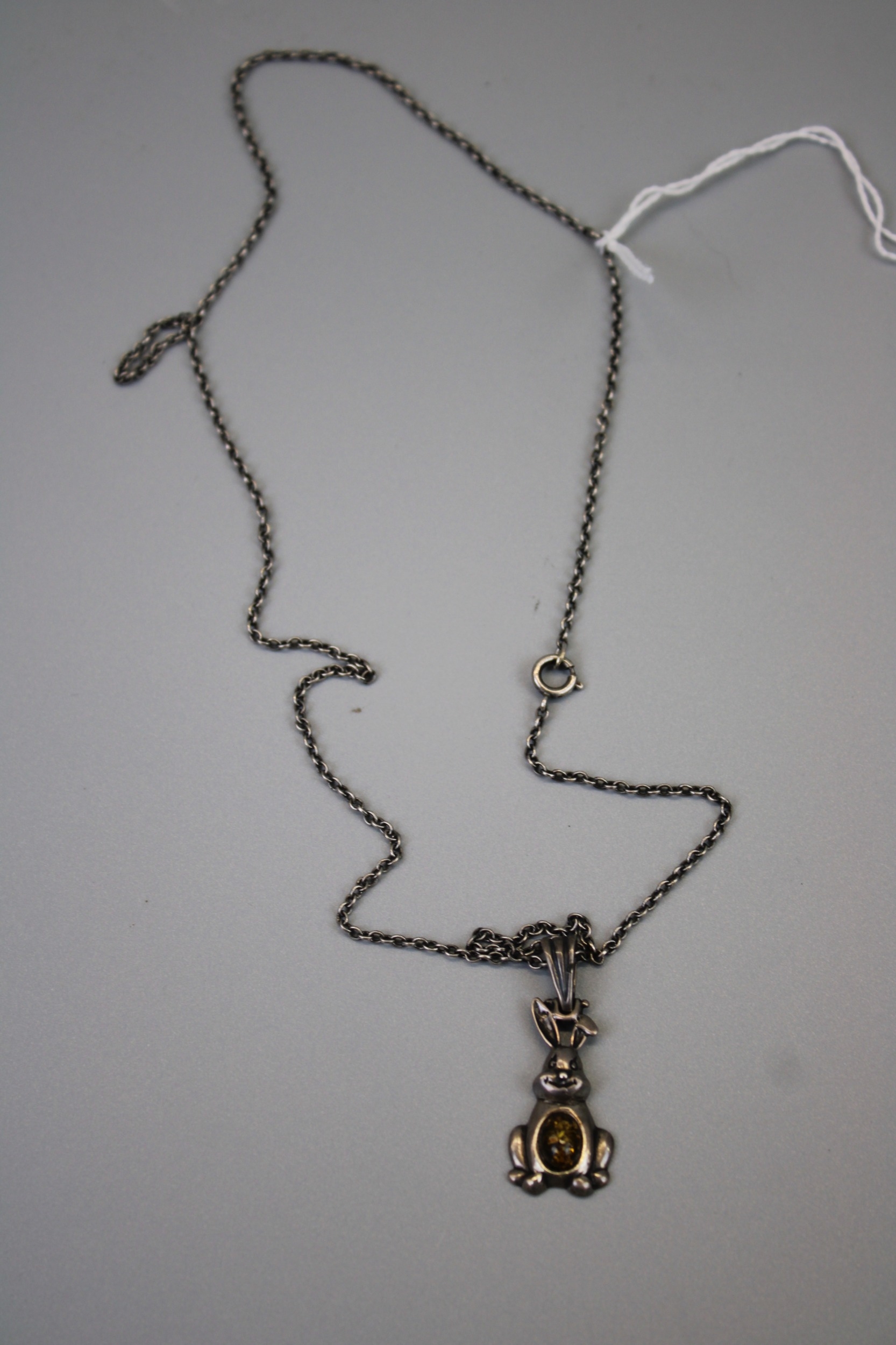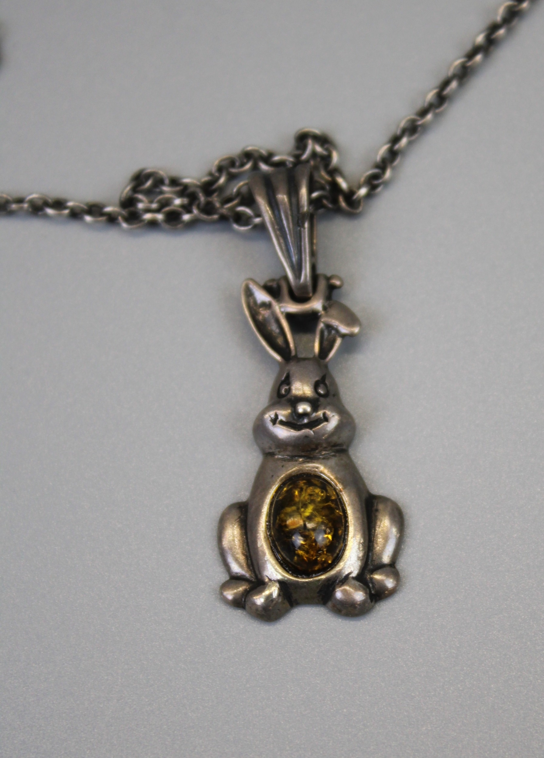 Silver Bunny Amber Set Pendant on Silver Chain