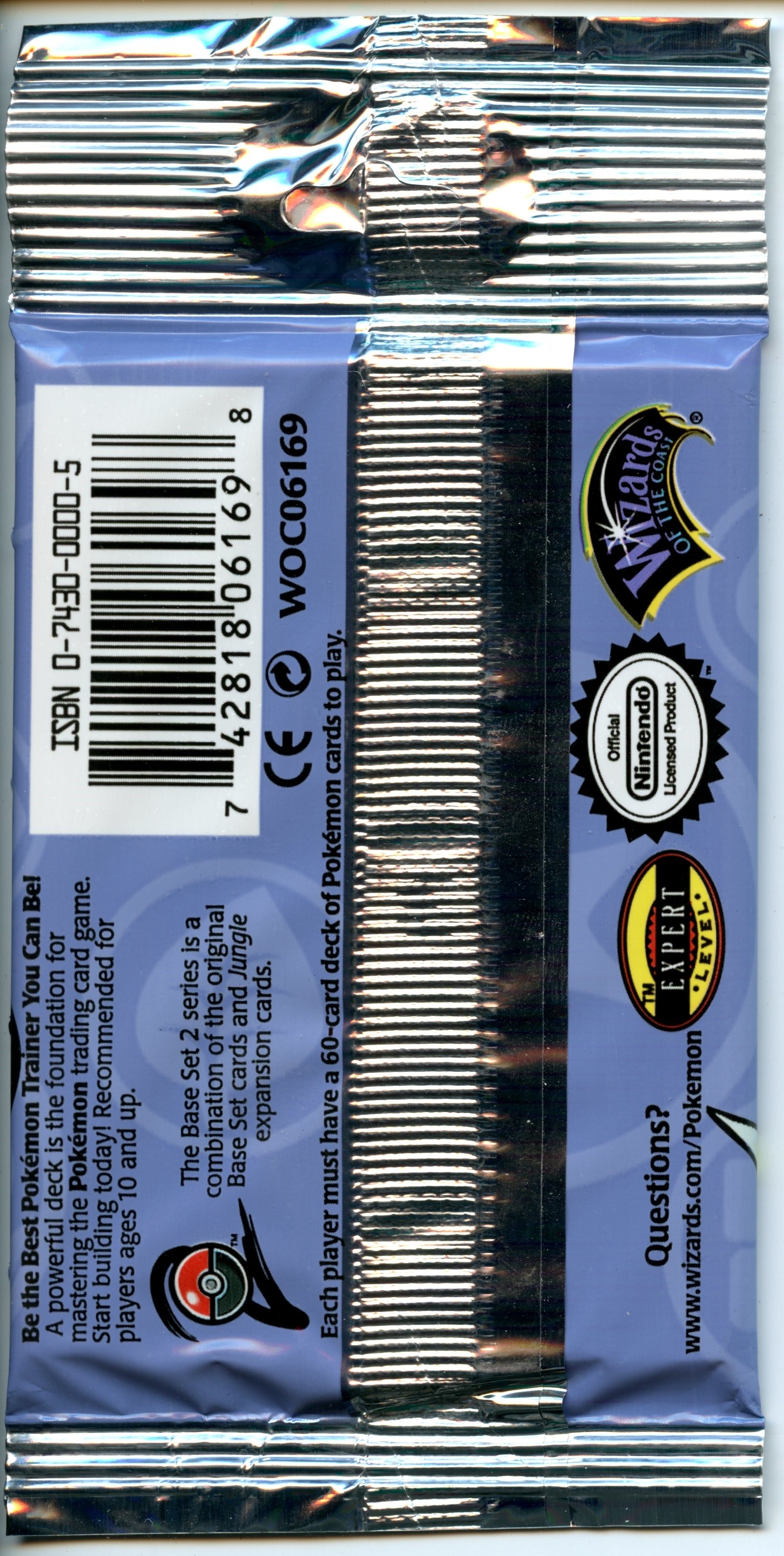 Pokemon TCG - Base Set 2 Booster Pack Long Crimp - Sealed - This lot contains 1 sealed Base Set booster pack with Raichu artwork.Provenance - This is an unweighed booster pack that comes directly from the collection of a former Wizards of the Coast employee'