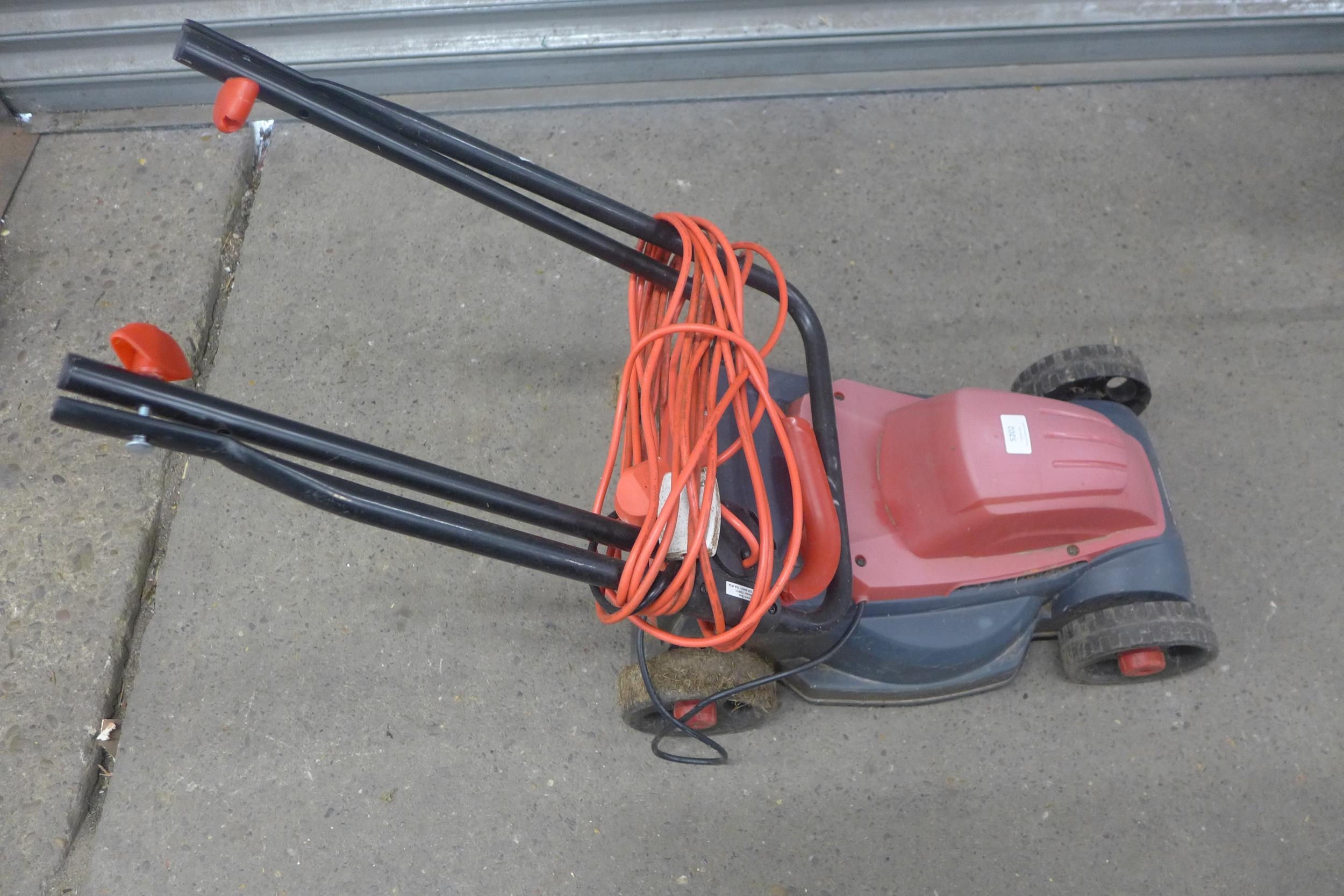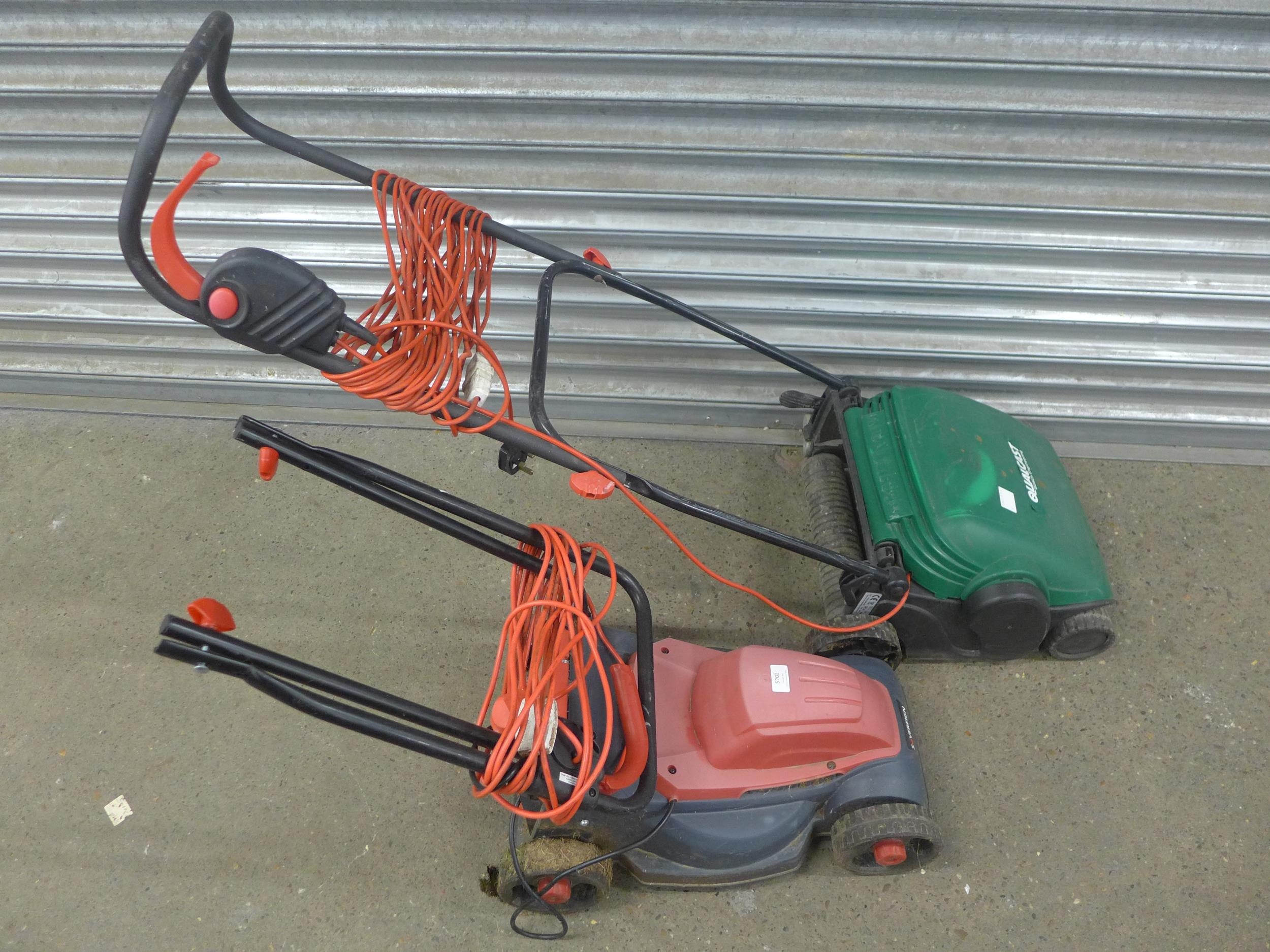 Two electric lawn mowers including Qualcast and Sovereign (no collection boxes)