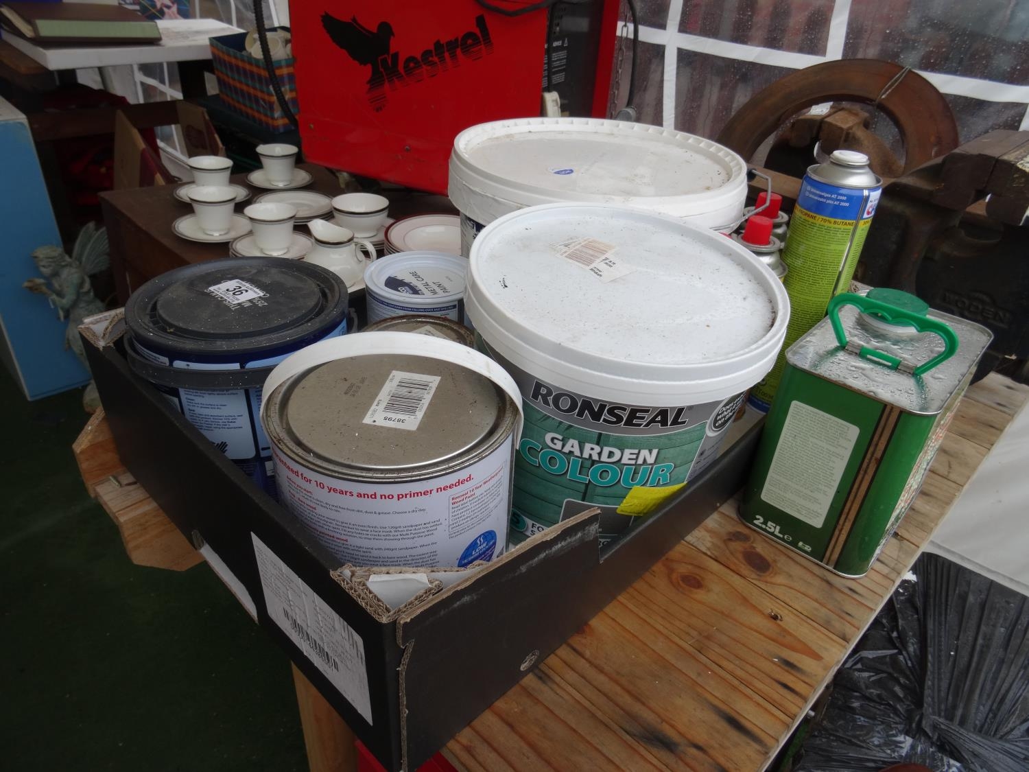 Box of dulux, ronseal & other paint