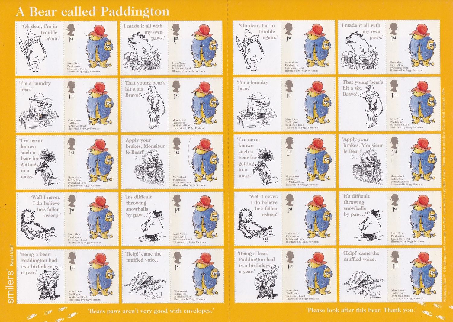 Great Britain 2006 'Paddington Bear' Royal Mail Smilers Sheet, SG LS28, u/m mint