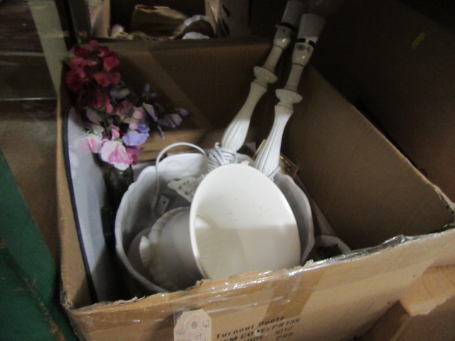 BOX OF CERAMICS INCLUDING A PAIR OF TABLE LAMPS