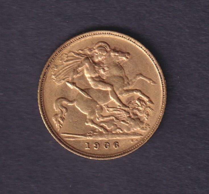 UK 1906 gold half Sovereign, in good condition