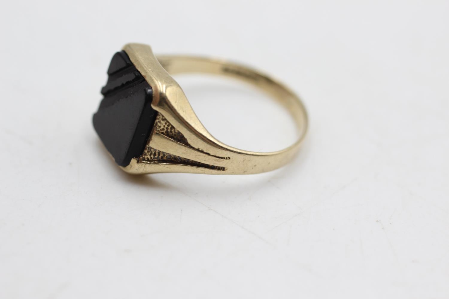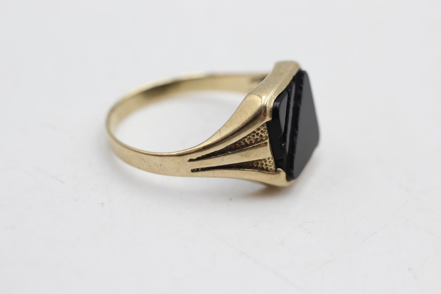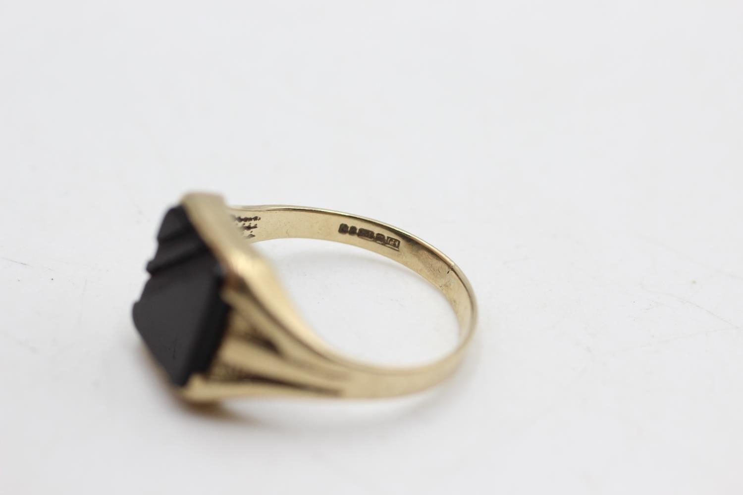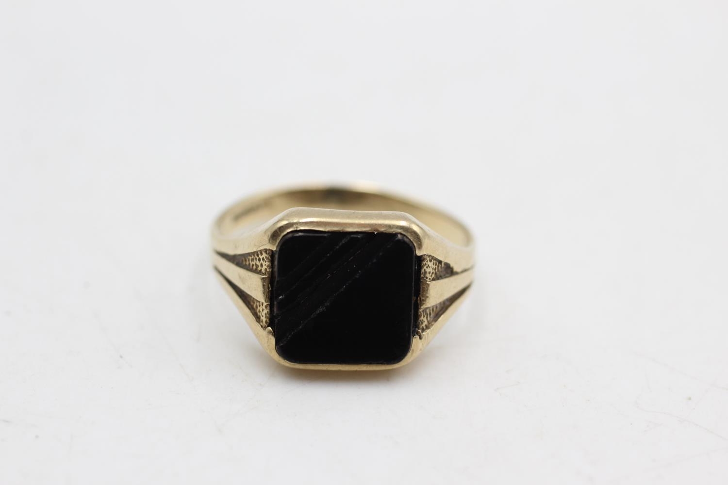 9ct gold vintage onyx signet ring, as seen (2.9g) size T
