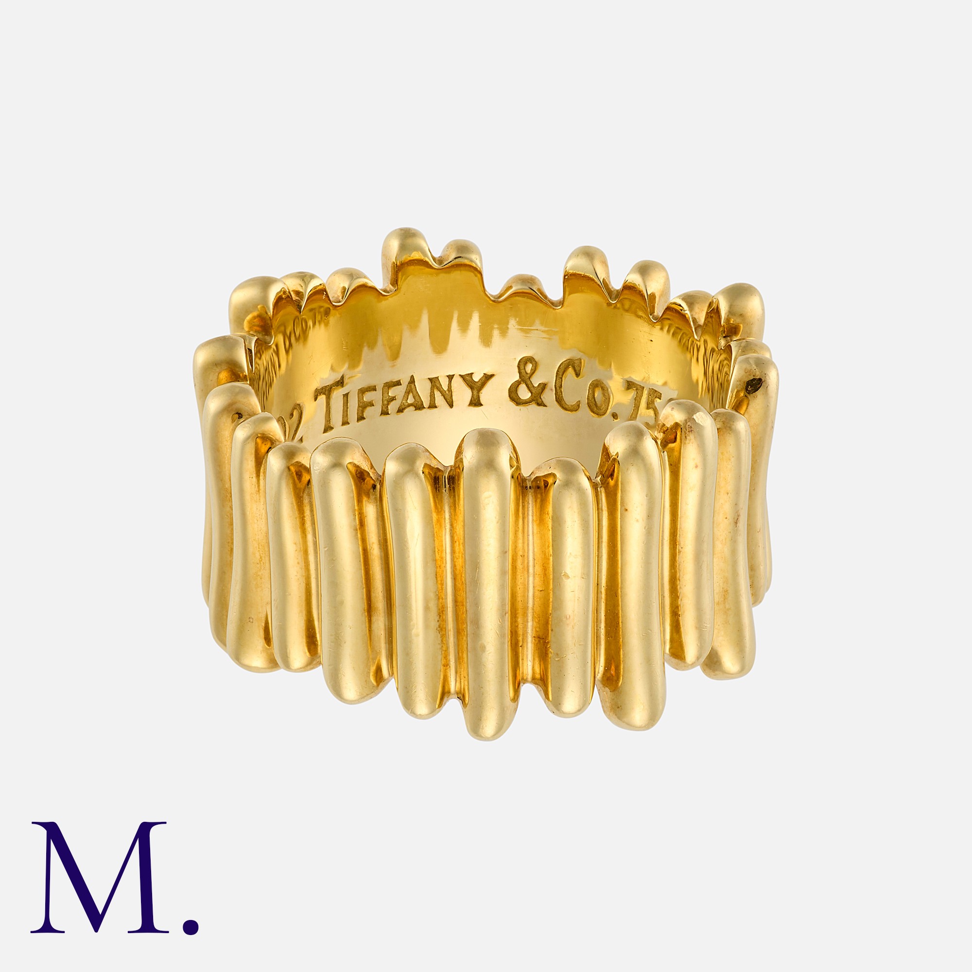 Tiffany & Co, An Abstract Fluted Ring in 18 carat yellow gold, comprising a series of rounded 'bars' of differing length. Signed Tiffany & Co. Marked 2002, 750.