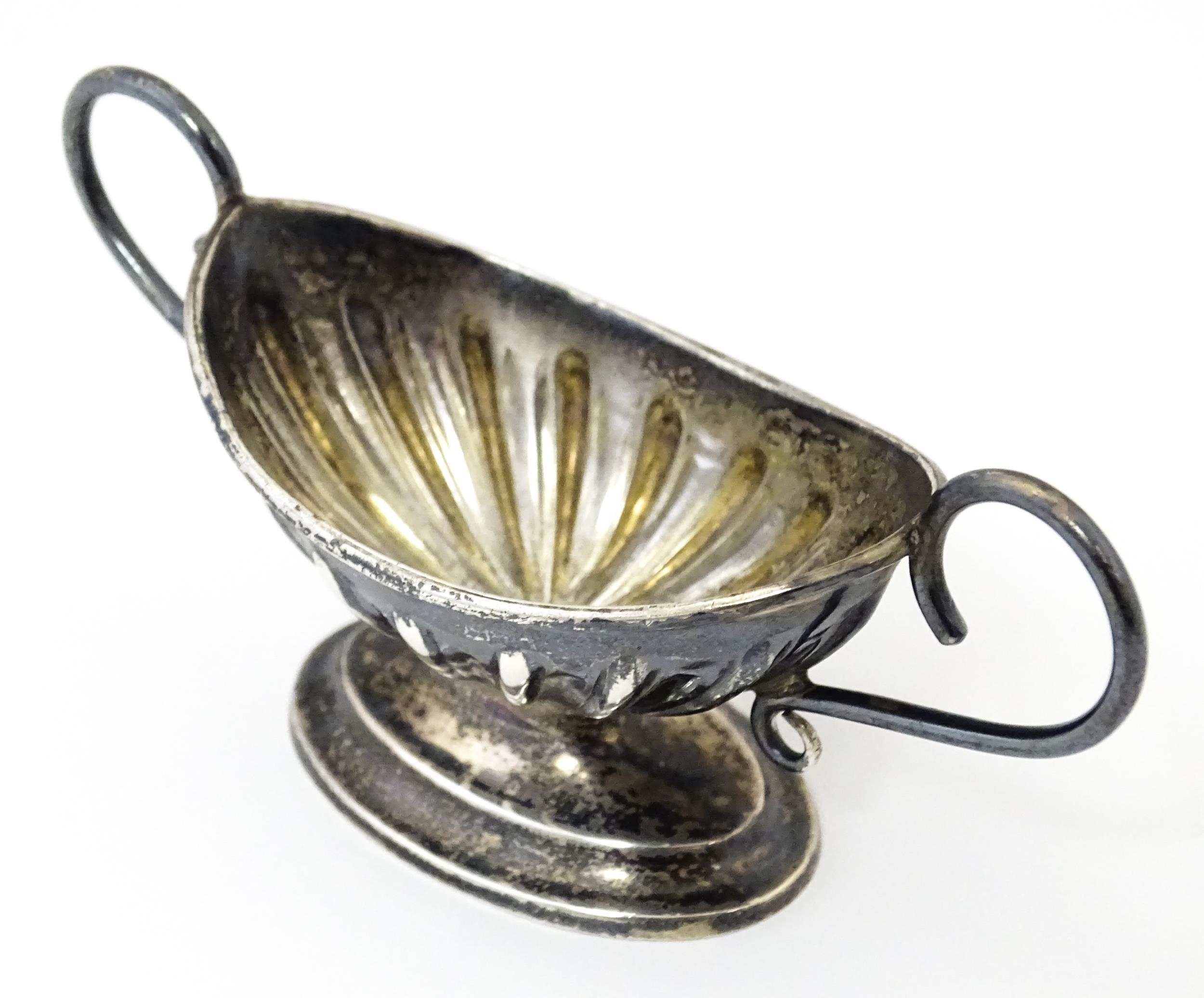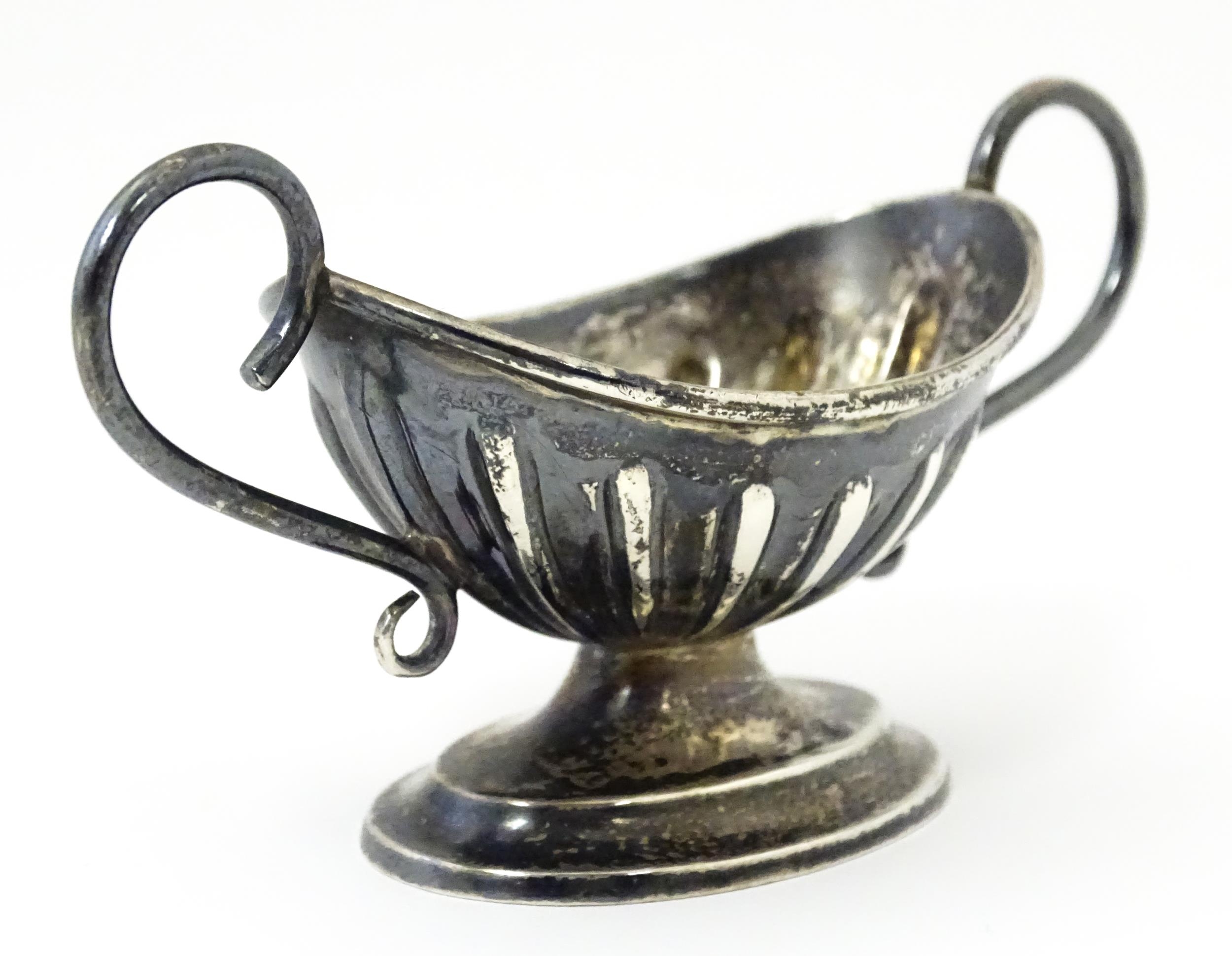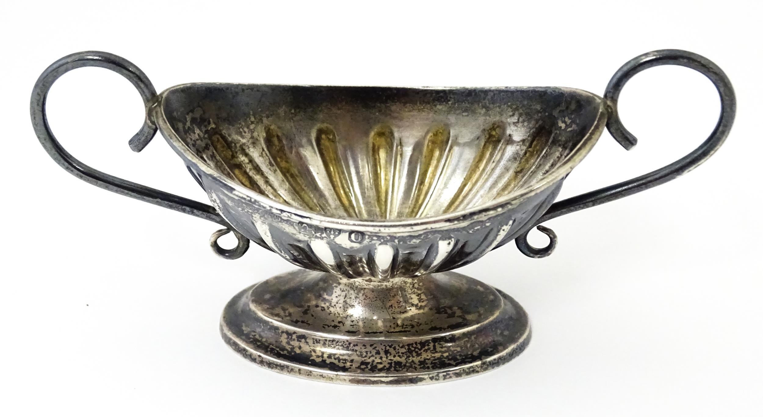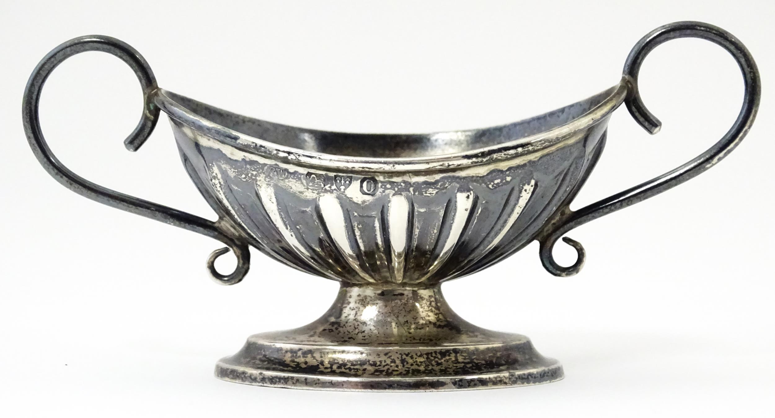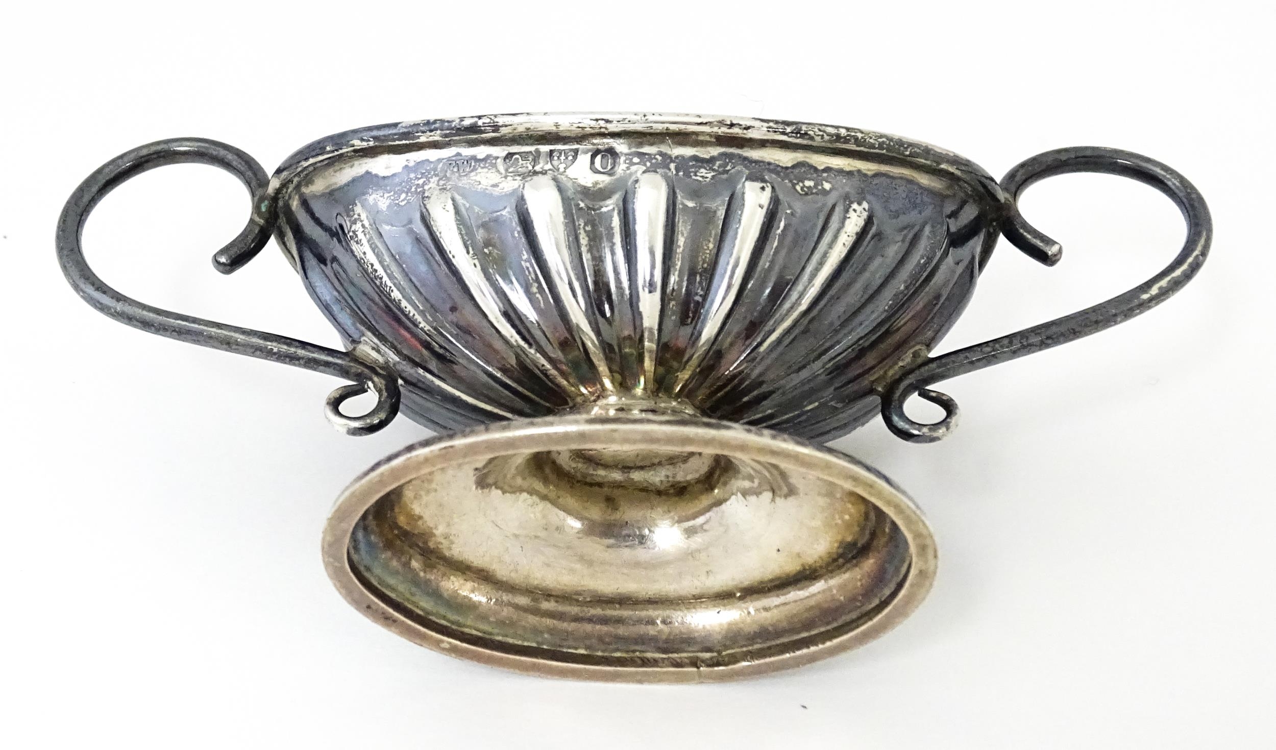 A silver twin handled pedestal salt. Hallmarked Chester 1897...