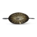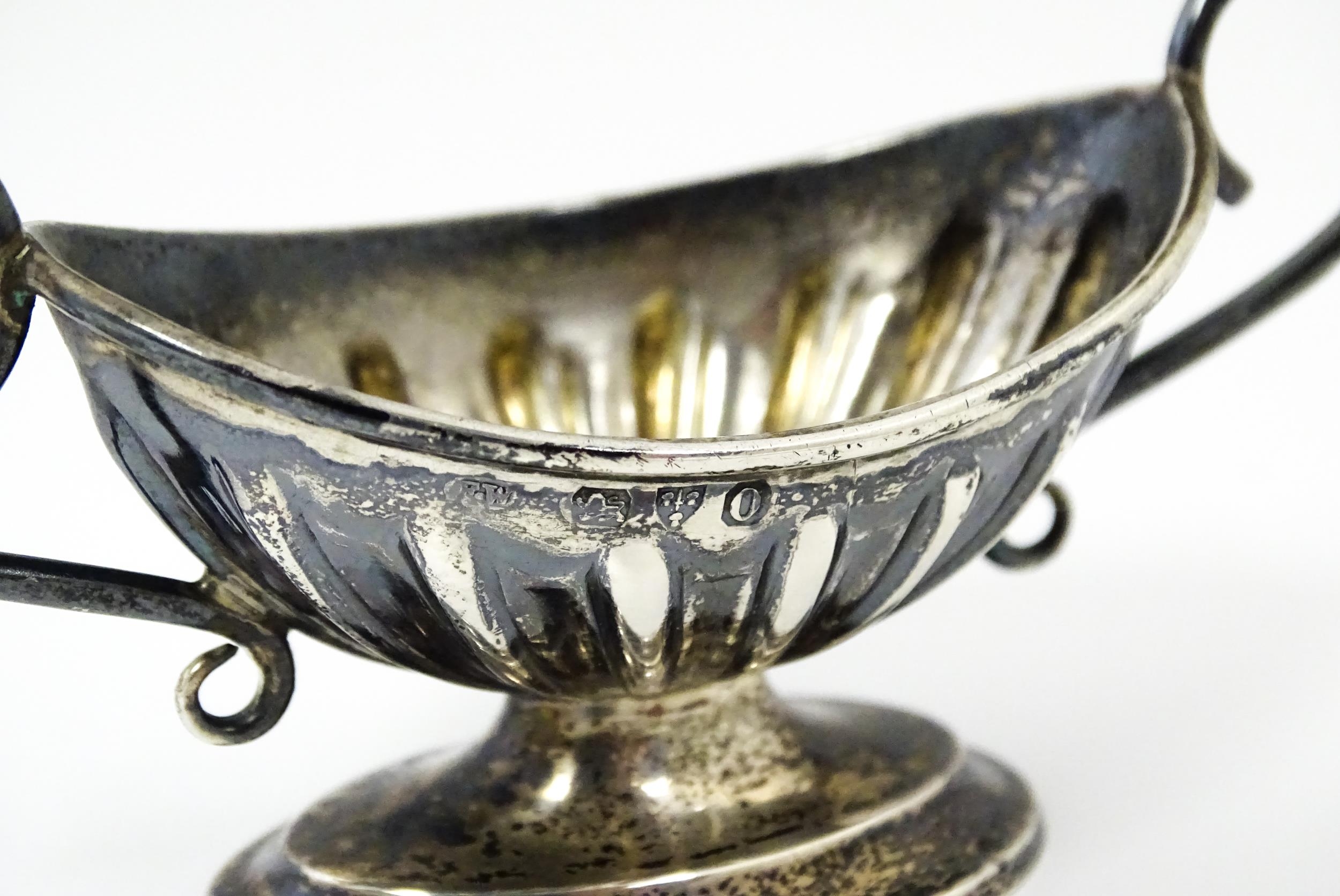 A silver twin handled pedestal salt. Hallmarked Chester 1897 maker Florence Warden. Approx 4" wide overall.