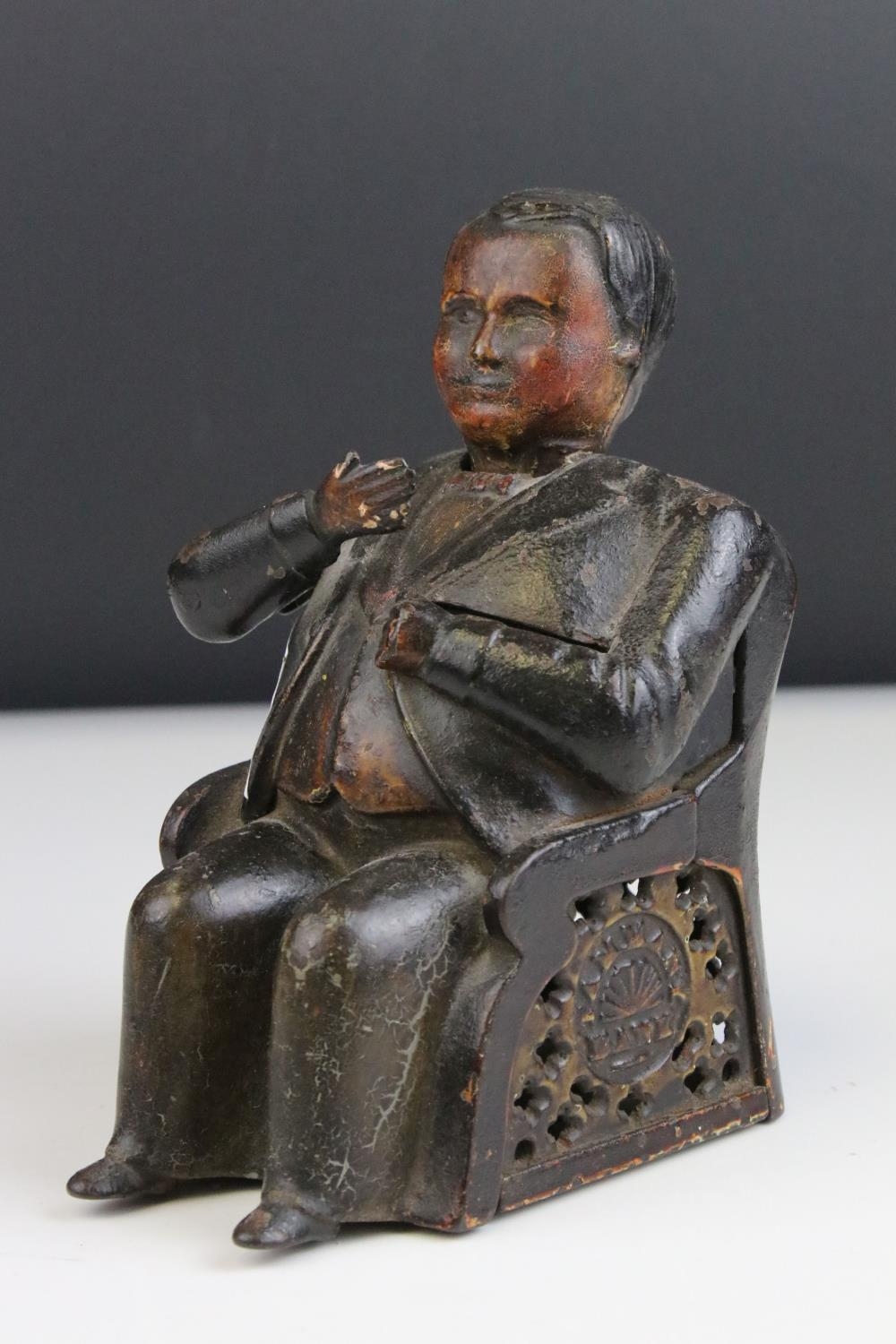 Cast Iron Novelty Money Bank titled ' Tammany Bank ', believed to be in the form of 19th century US politician William M Tweed, approx 14cms high