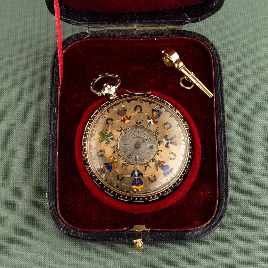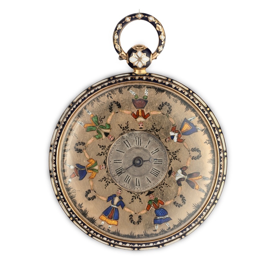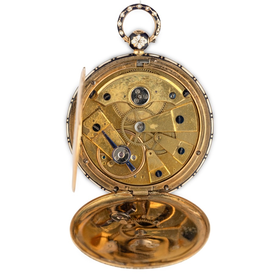 BAUTTE ET CIE, GENEVE, OROLOGIO DA TASCA IN ORO, CON SMALTI E CHIAVE IN ORO, SVIZZERA 1840 CIRCA