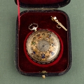 BAUTTE ET CIE GENEVE, A 18K YG OPEN FACE POCKET WATCH, WITH ENAMELS, GOLD KEY AND ORIGINAL BOX, SWITZERLAND 1840 CIRCA