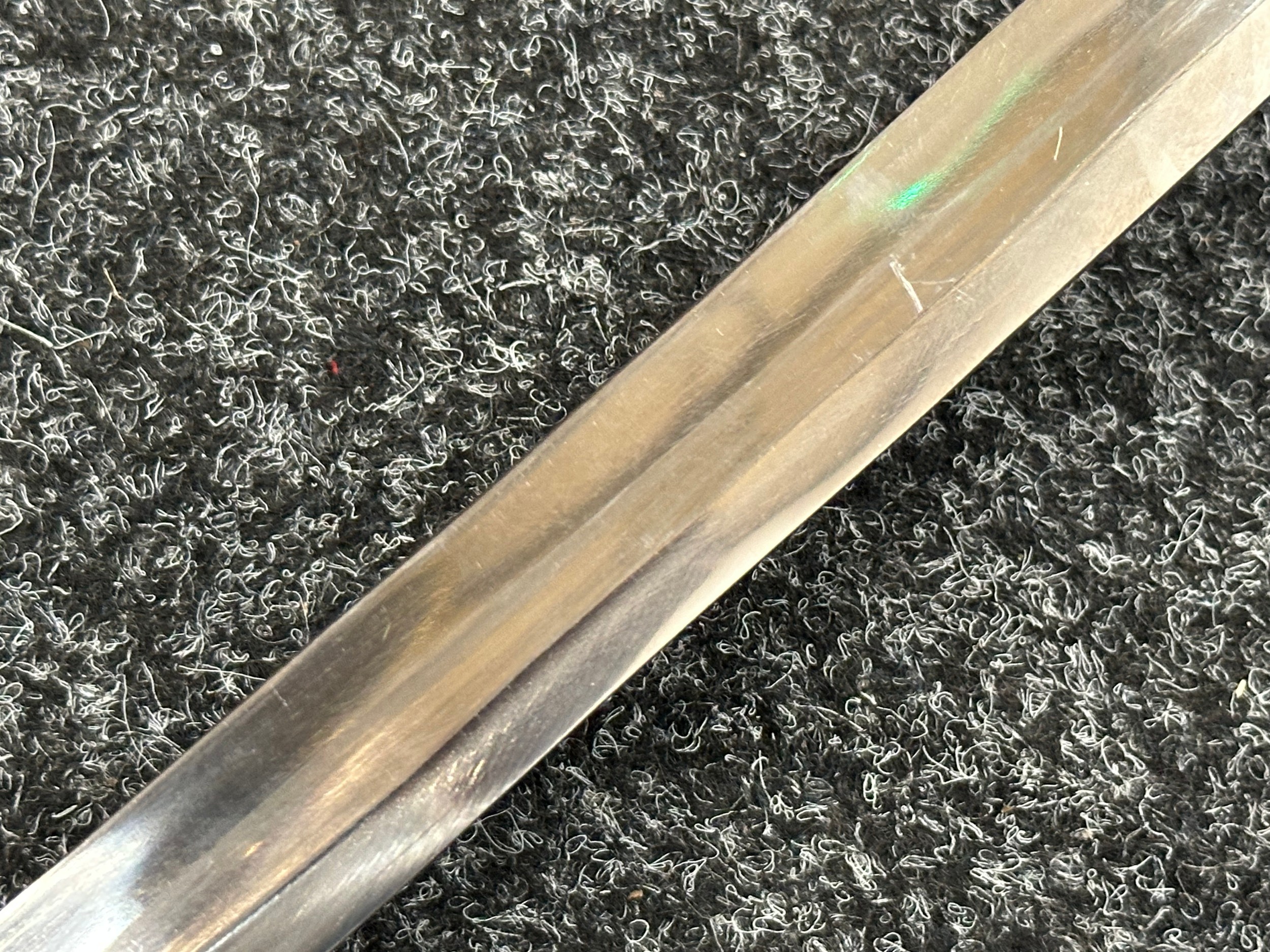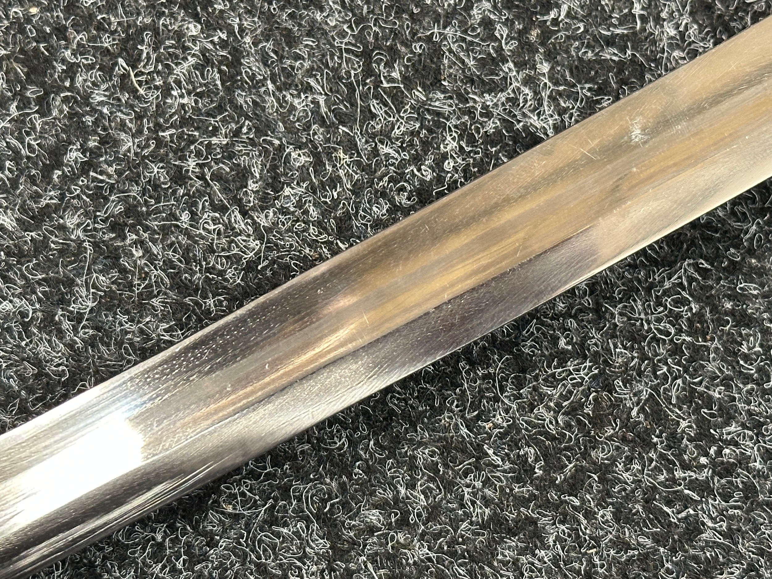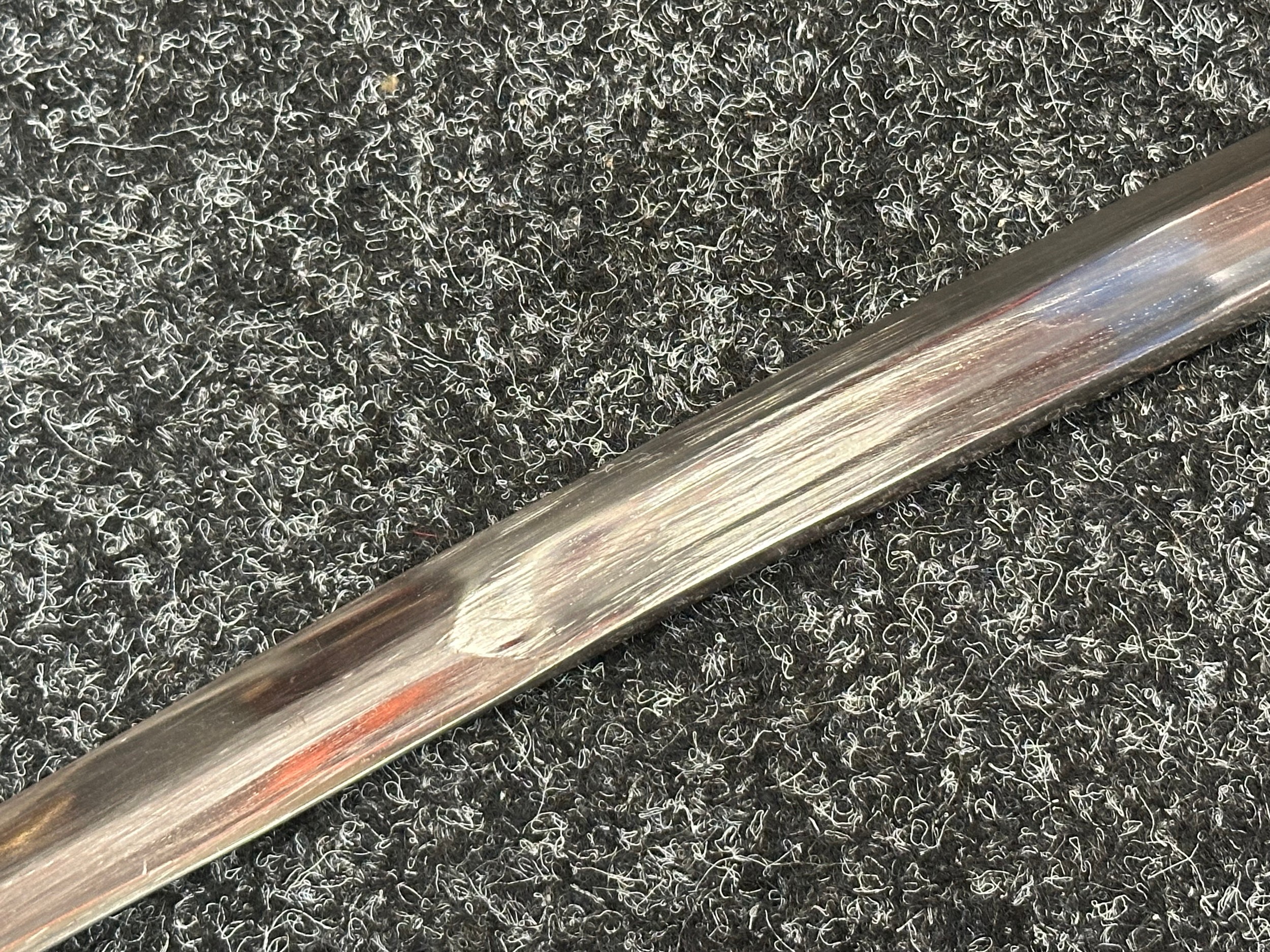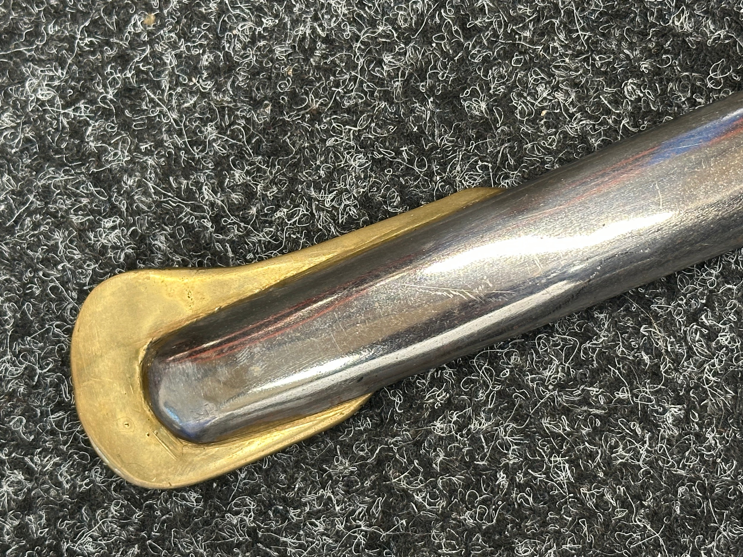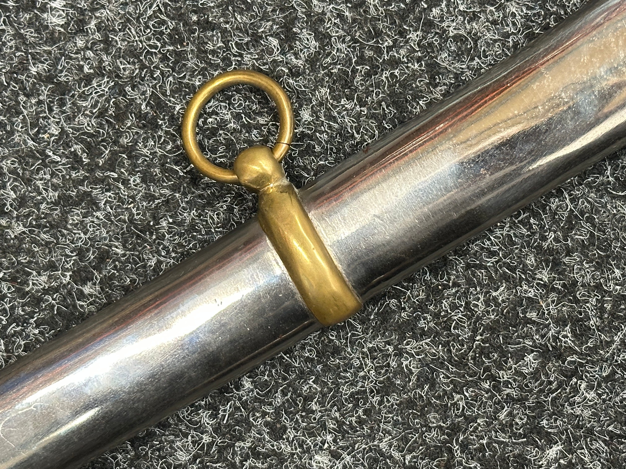 Reproduction American Civil War CSA Sabre with curved fullered single edged blade 900mm in length with etched panels "CSA". Wire bound leather grip and brass guard. Overall length 106cm. Complete with scabbard with twin brass suspension rings and brass drag.