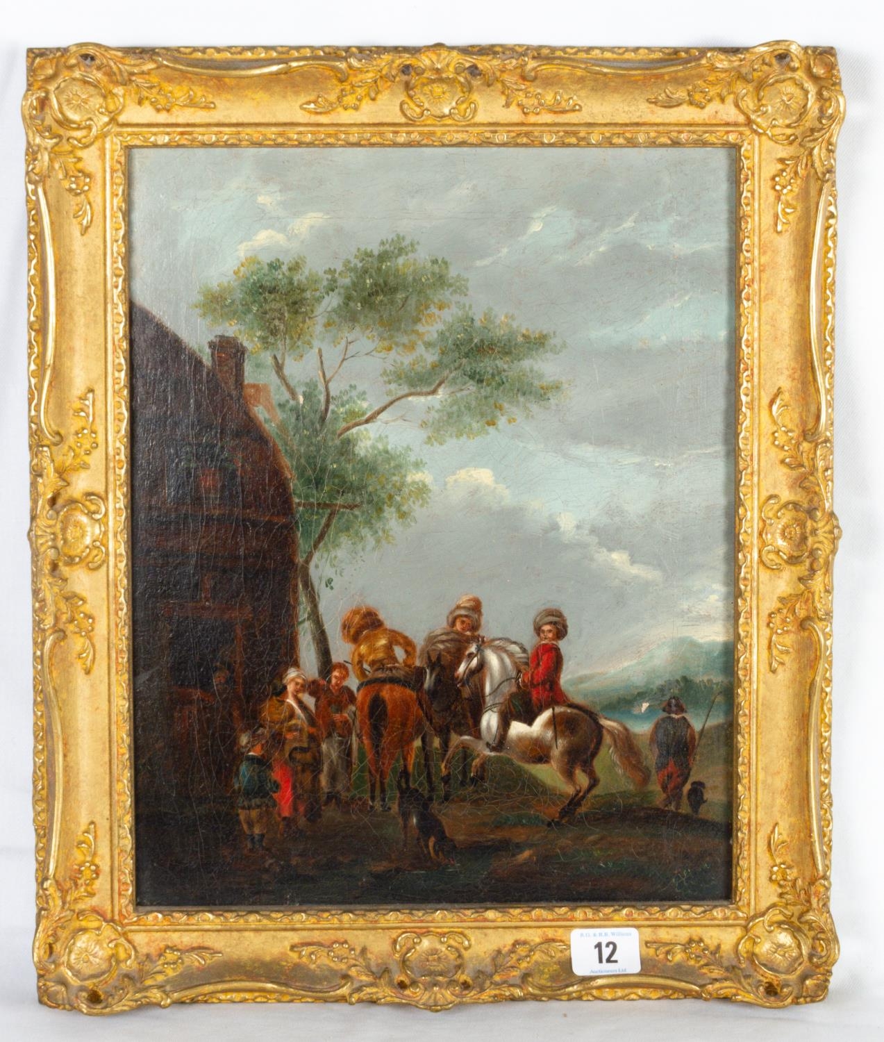 OIL IN THE MANNER OF PHILLIPS WOUWERMAN "TRAVELLERS ON HORSEBACK"