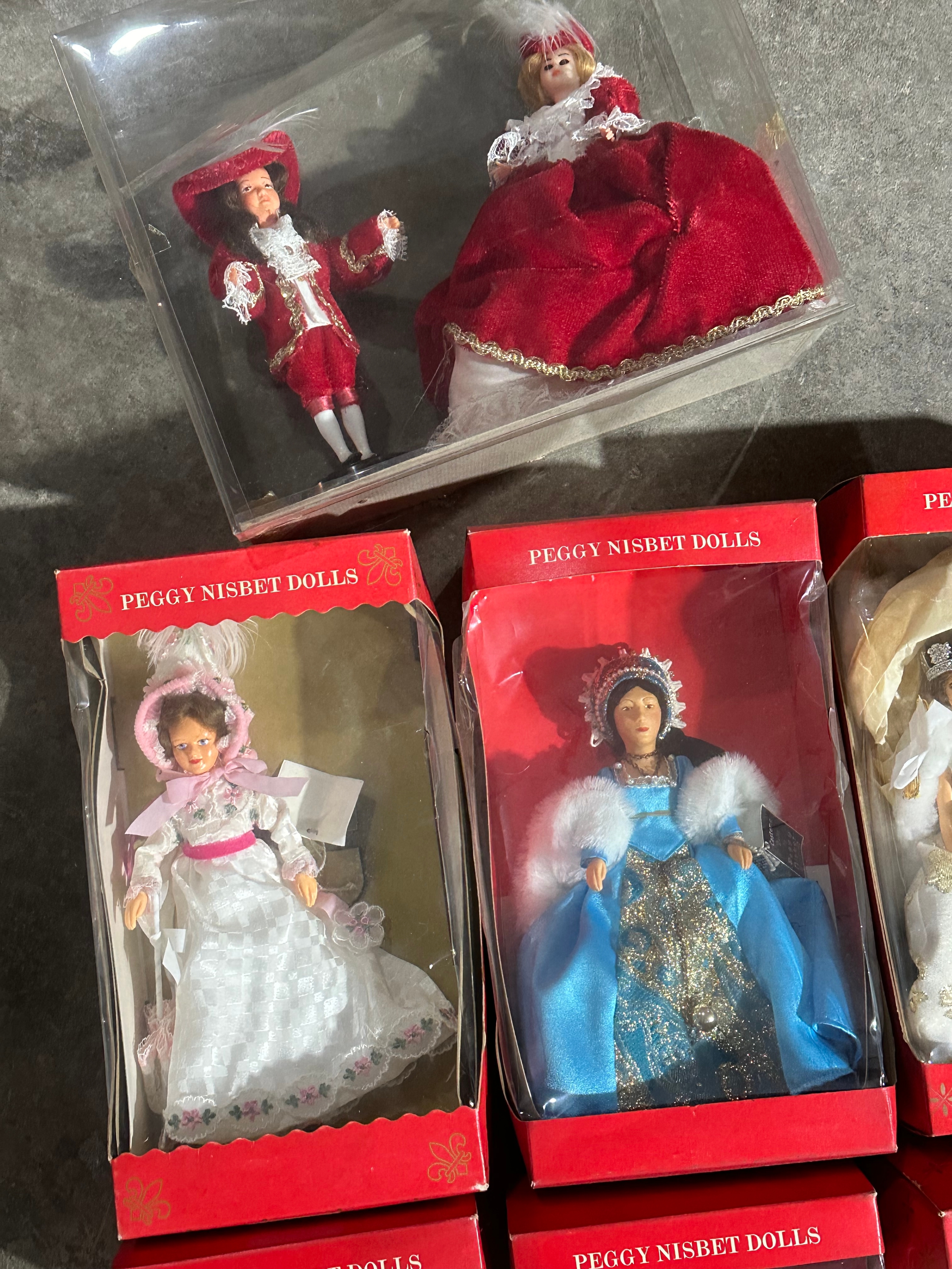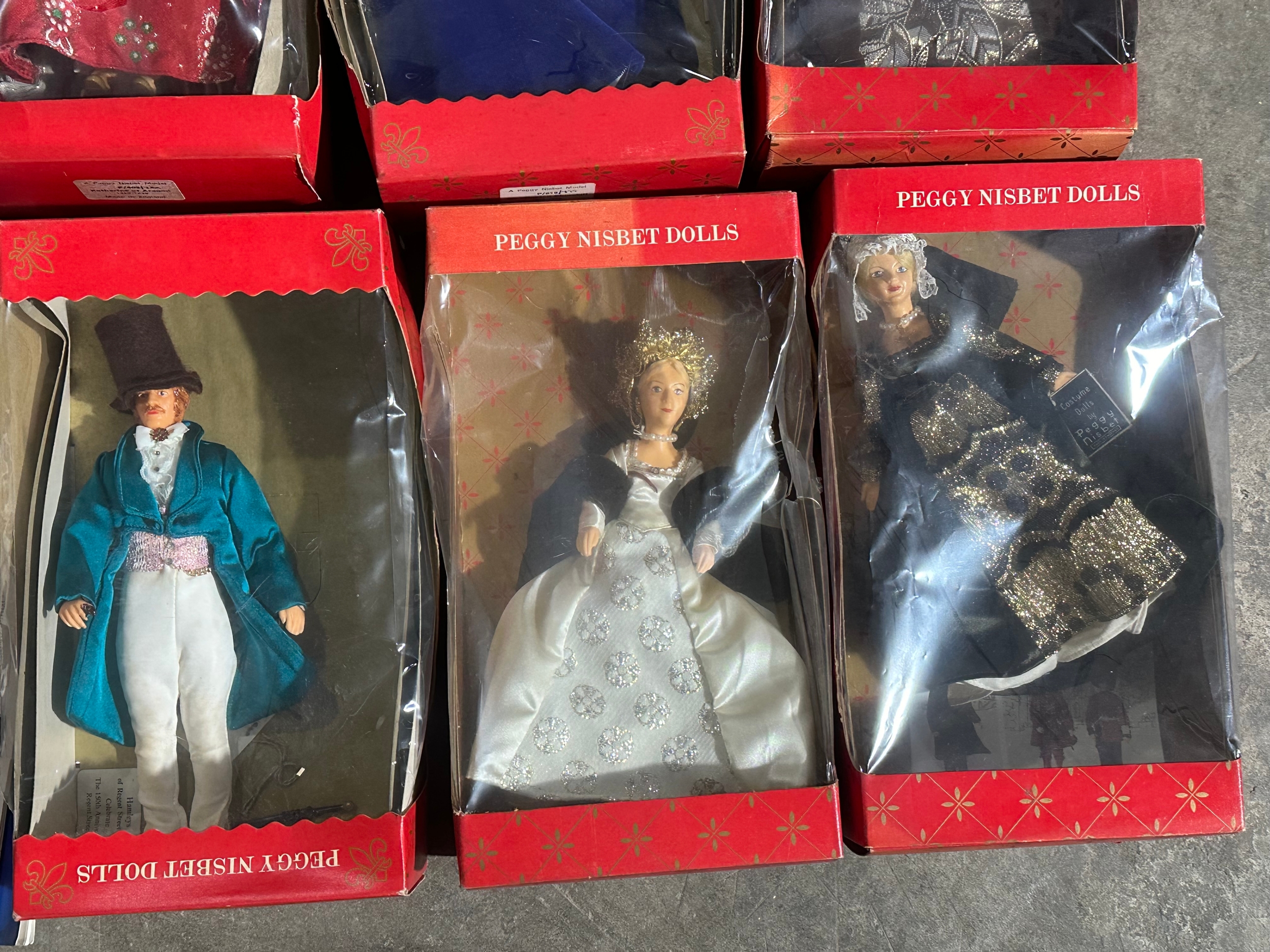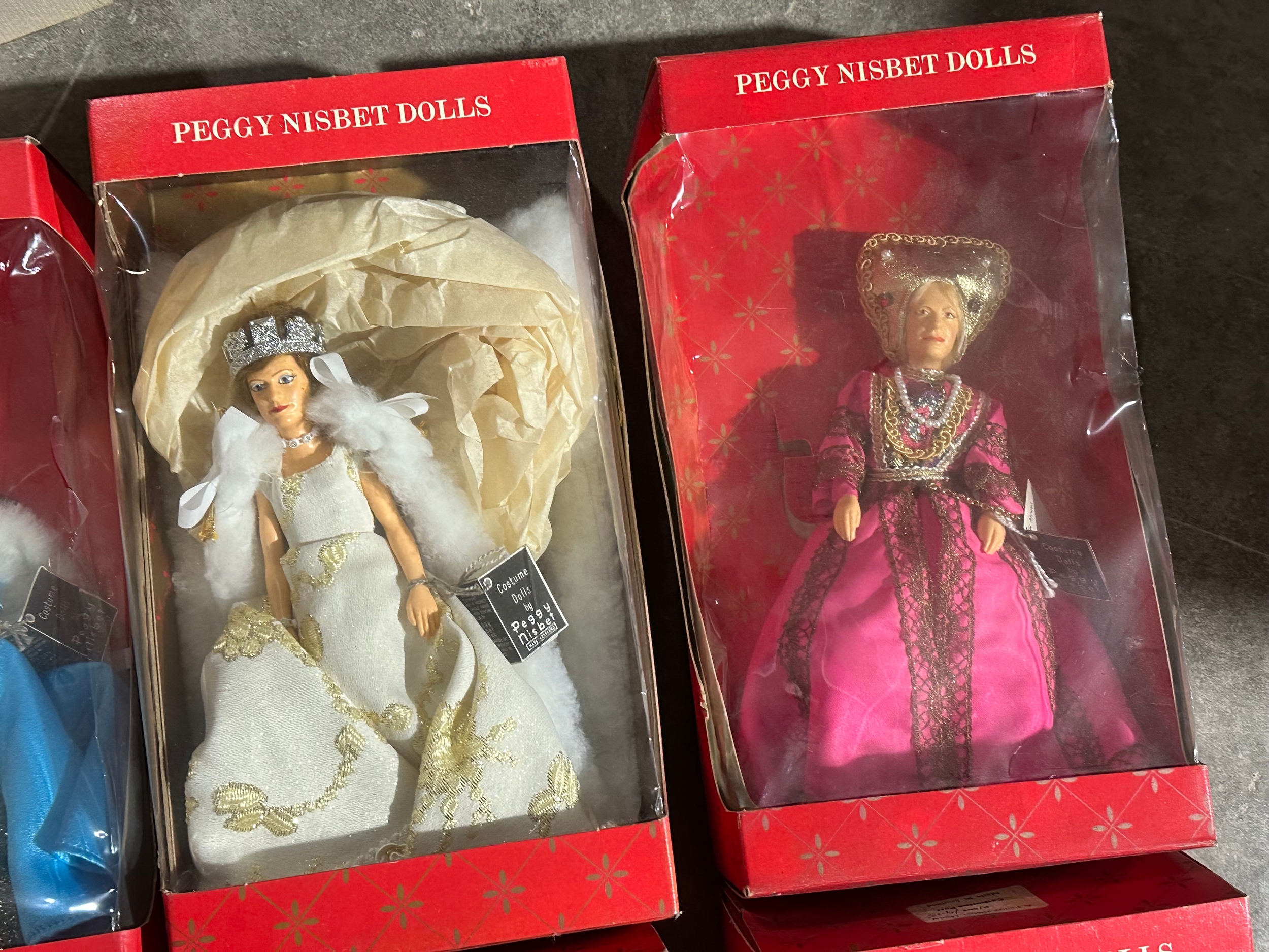 A collection of Peggy Nisbet Dolls.
