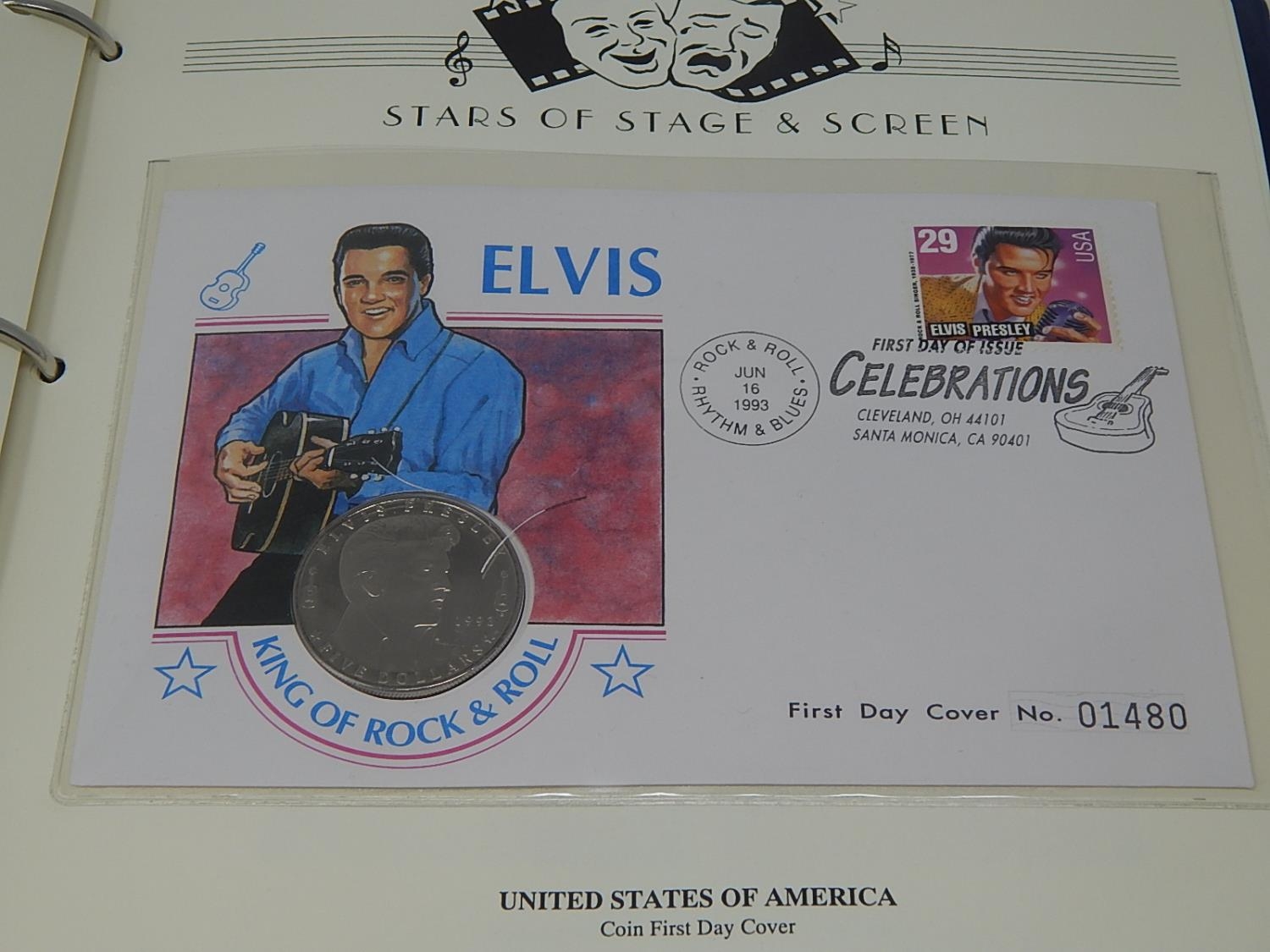 Collection of Elvis Presley Limited edition stamps and coin covers including solid silver medallion