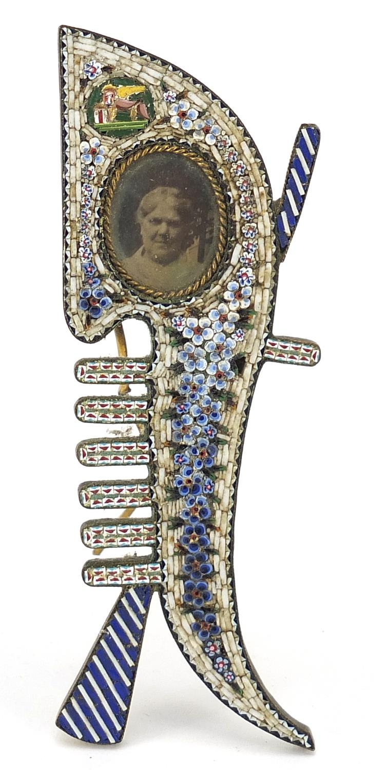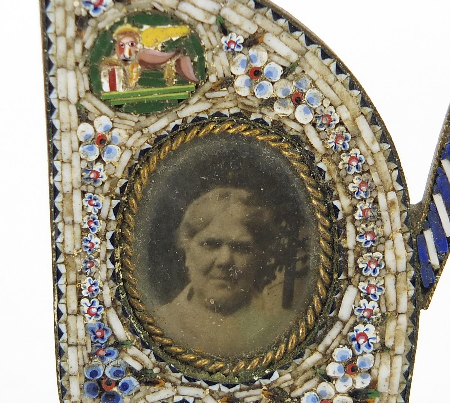Italian micro mosaic gilt metal easel frame, 13.5cm high