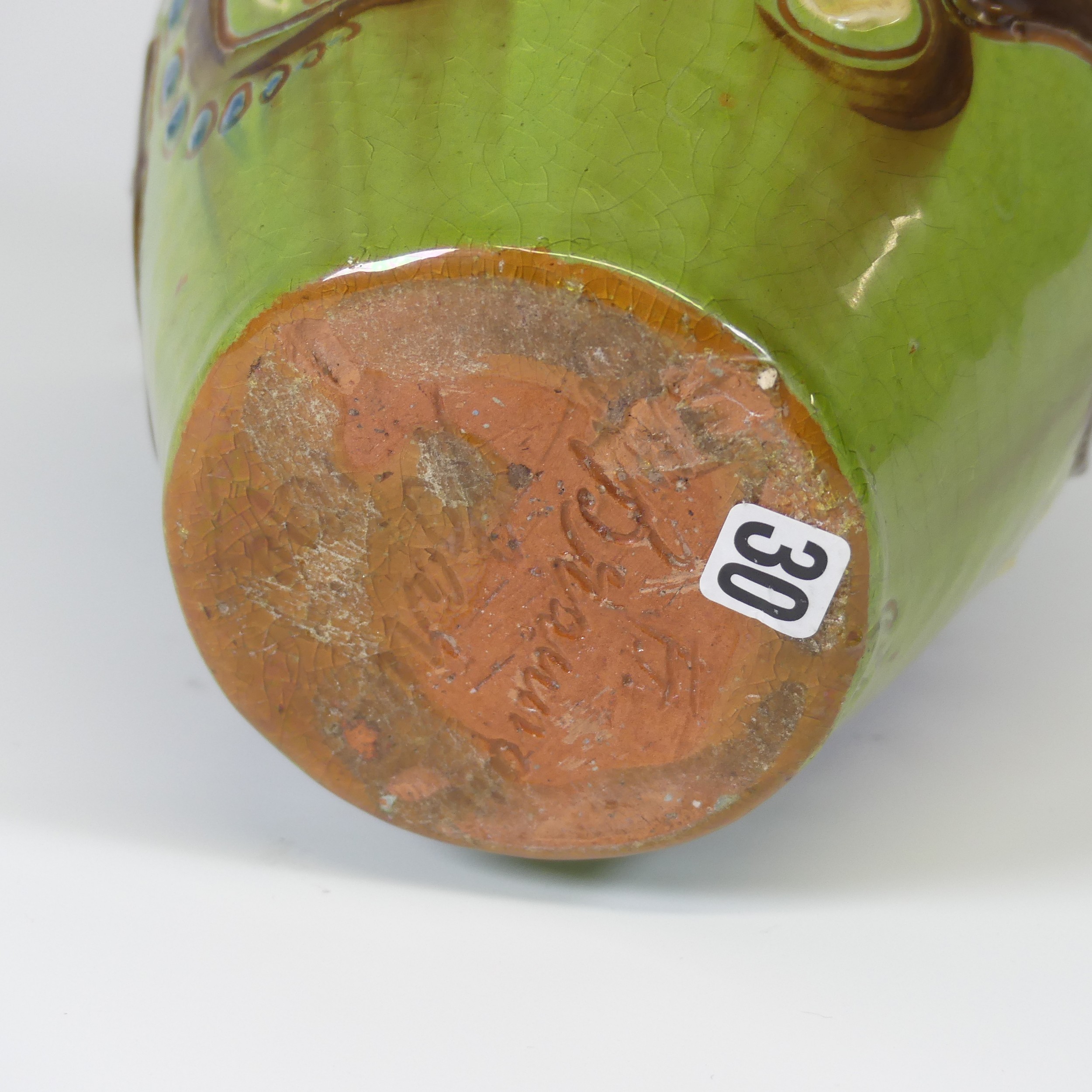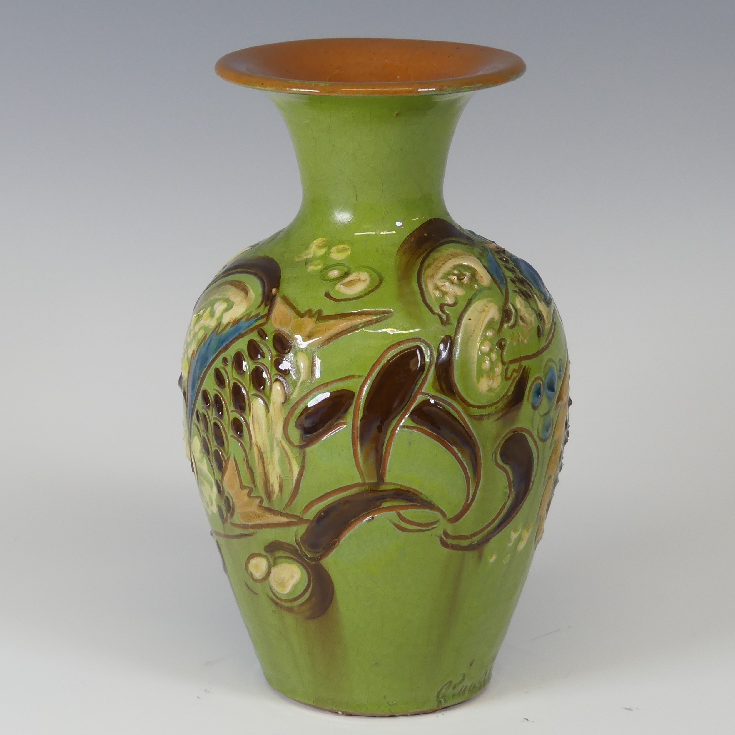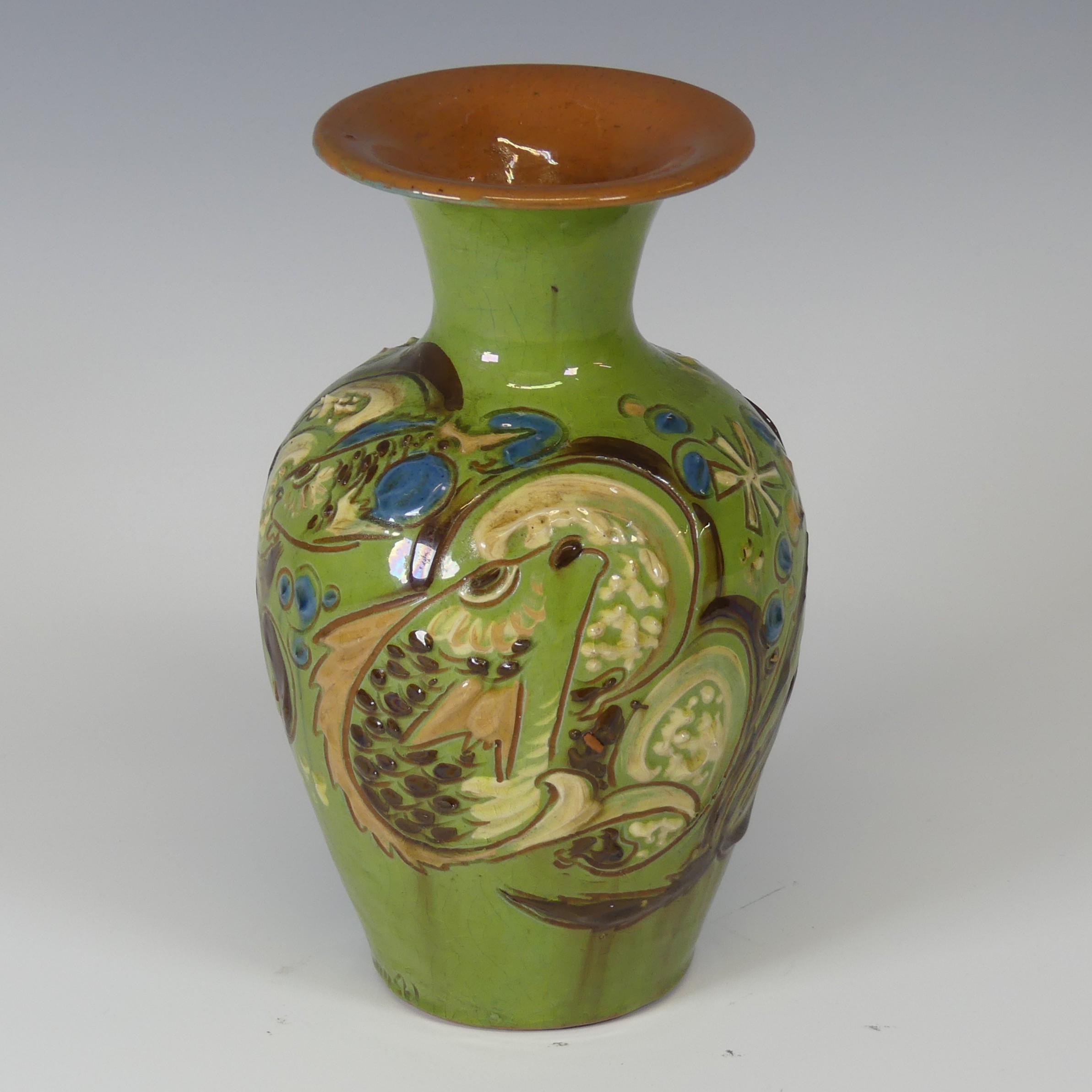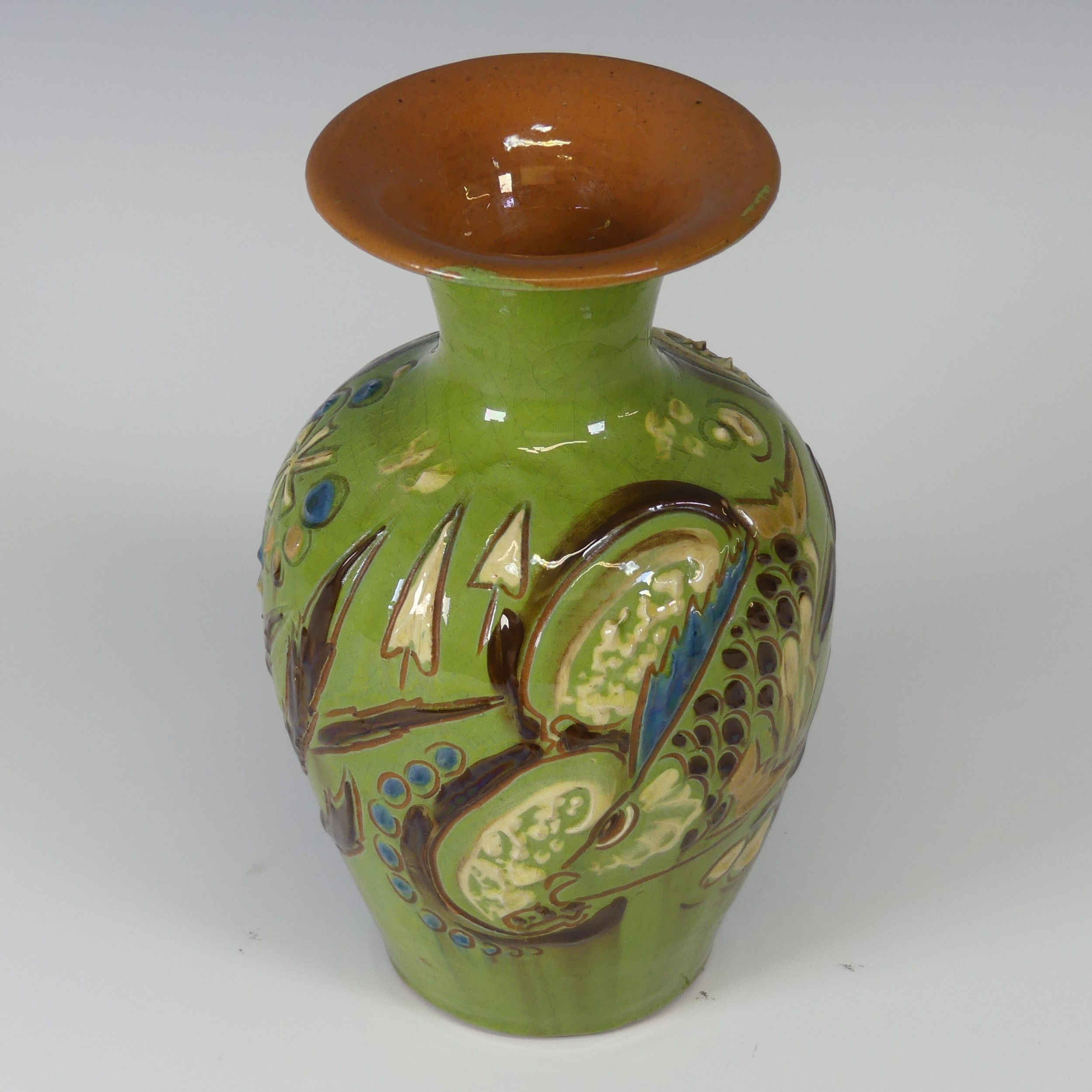 A C. H. Brannam pottery Vase, late 19th century, decorated in colours with fish motif indistinctly signed, incised mark to base, 19.5 cm high.