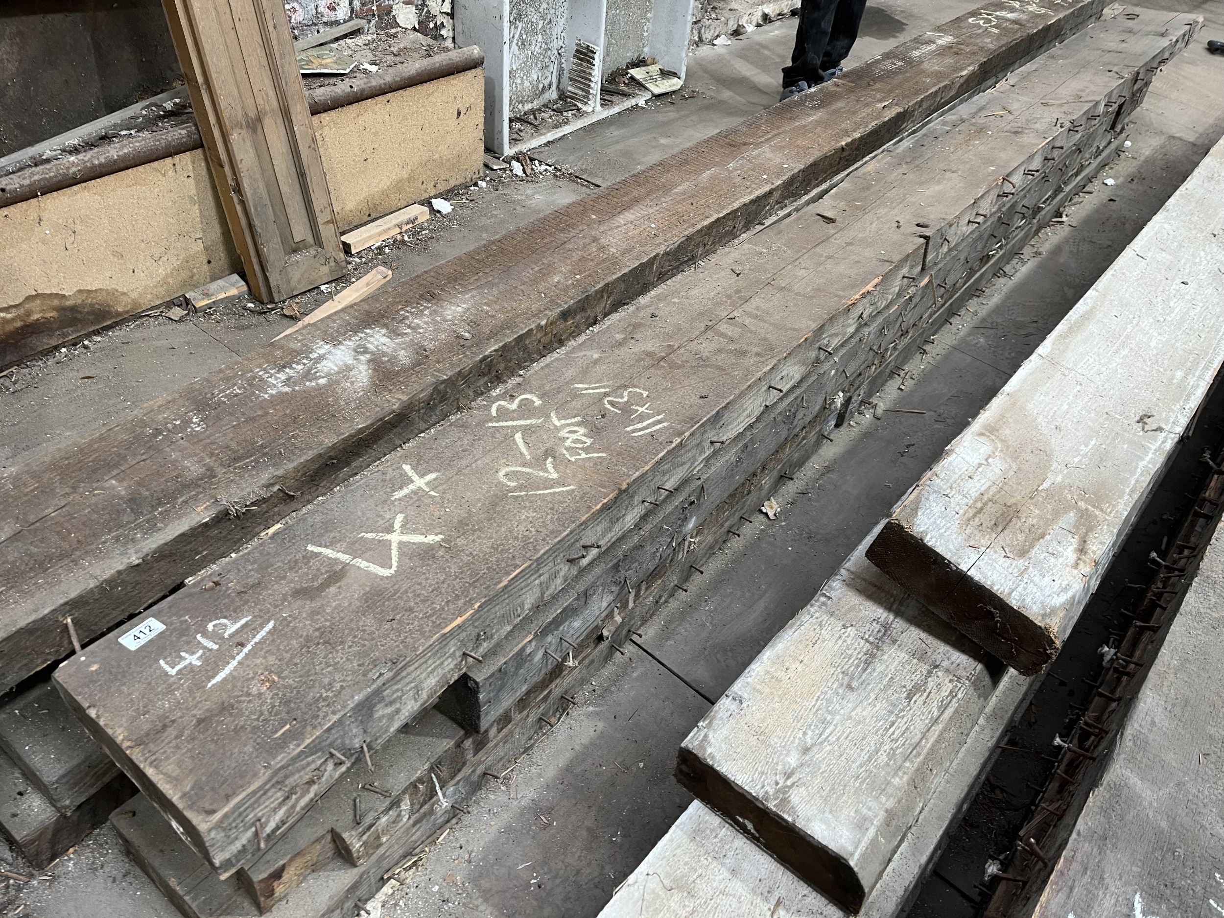 PLEASE SEE PICTURES BUNDLE OF 4 RECLAIMED ROOF BEAMS MEASURING 12-13FT LONG 11X3"