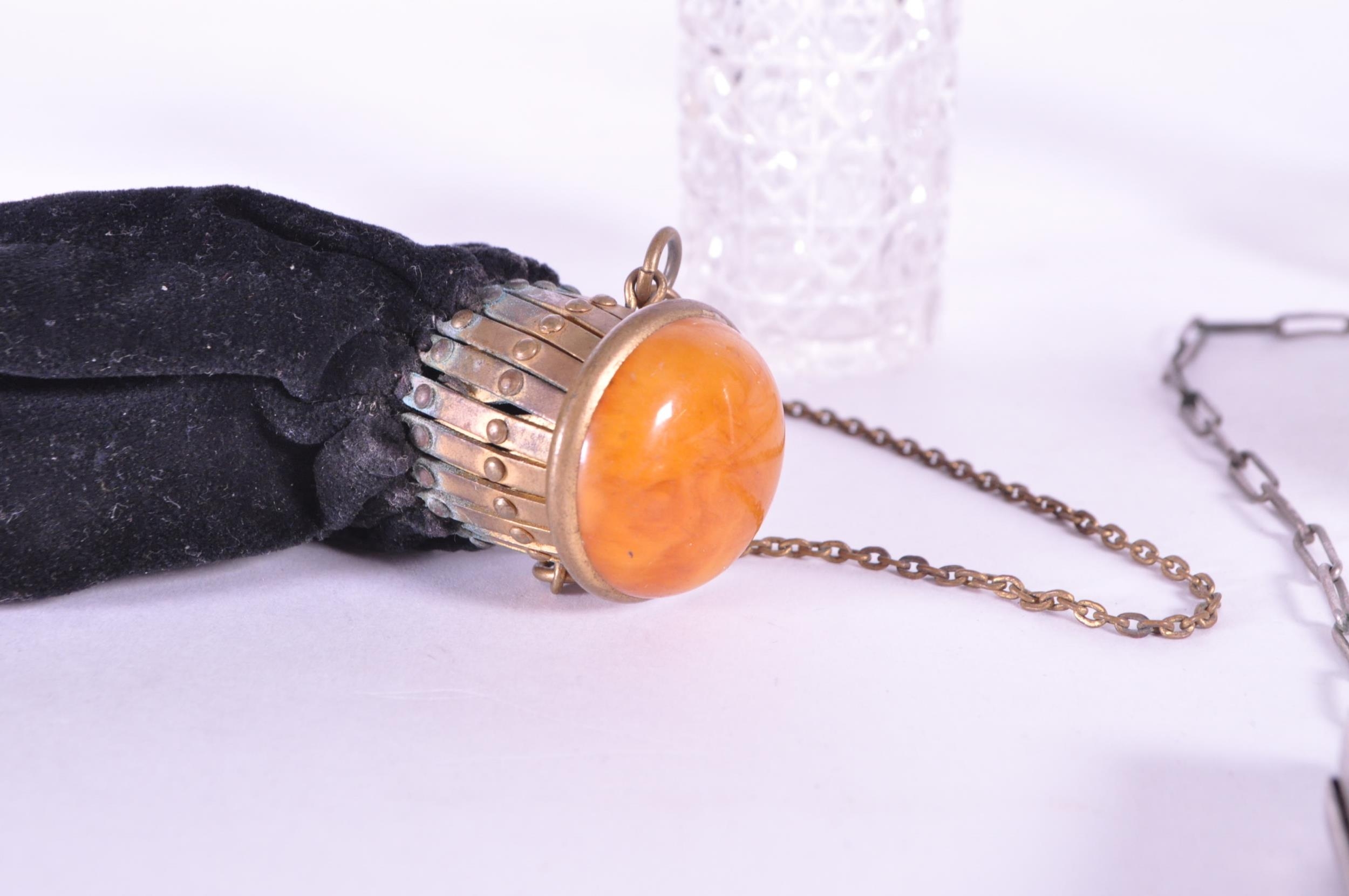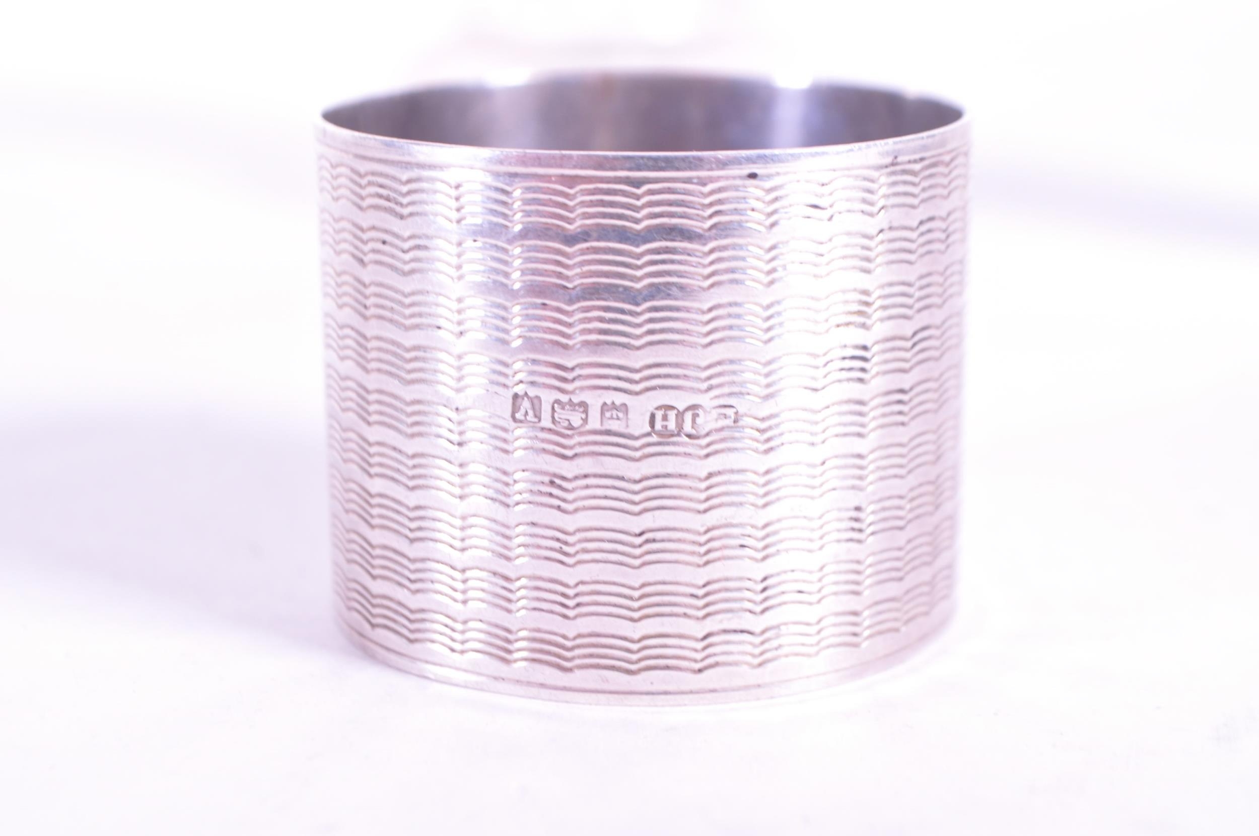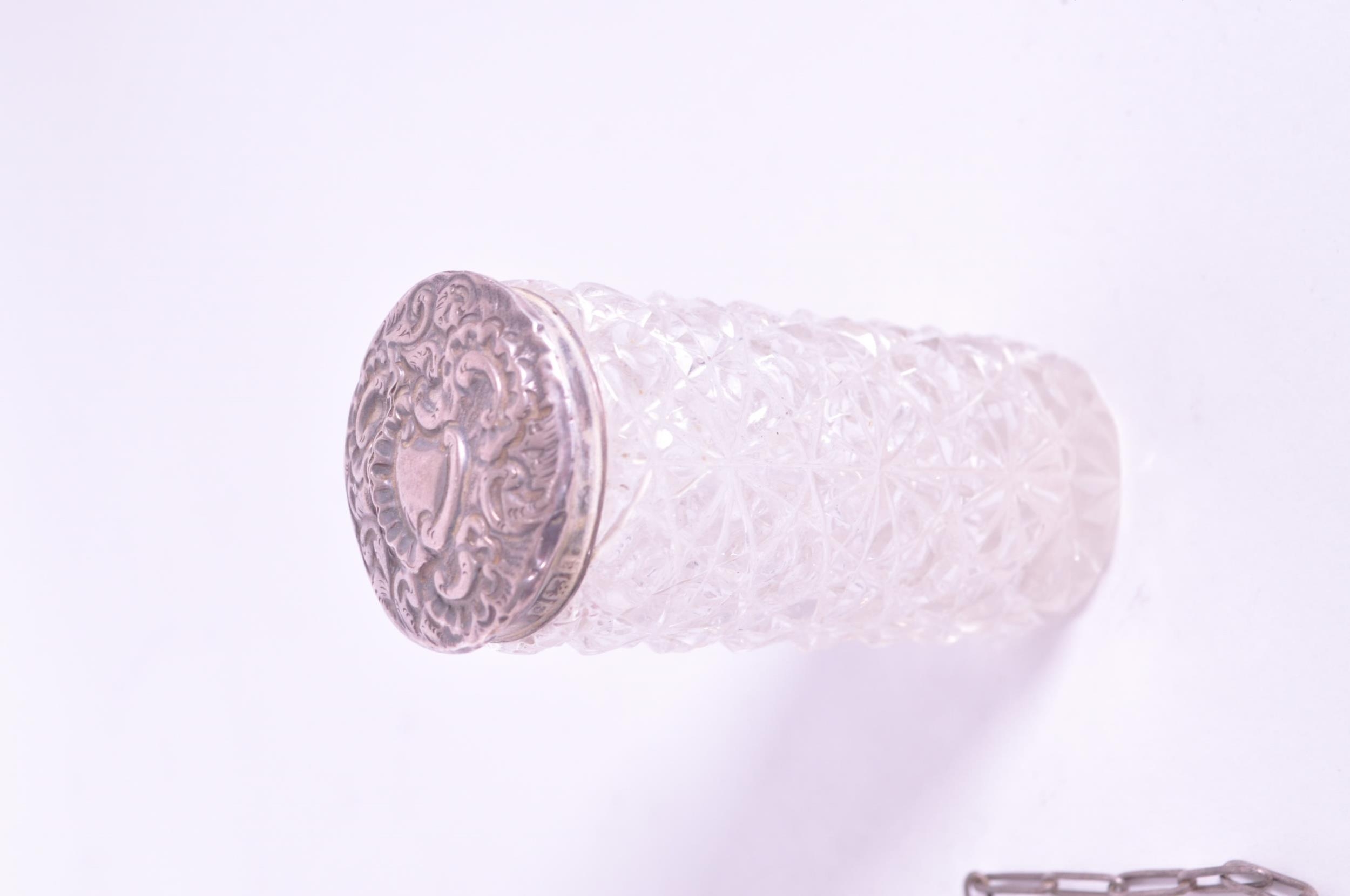 Collection of early 20th century hallmarked silver pieces, comprised of a napkin ring, chain clutch purse, fabric clutch purse, crystal cut lidded pots, and sugar sifter. Napkin ring with a E J Houlston, Birmingham hallmark, others with Birmingham hallmarks, one with a Chester hallmark and the clutch purses with no hallmarks. Largest piece measuring approx. 11cm x 14cm.