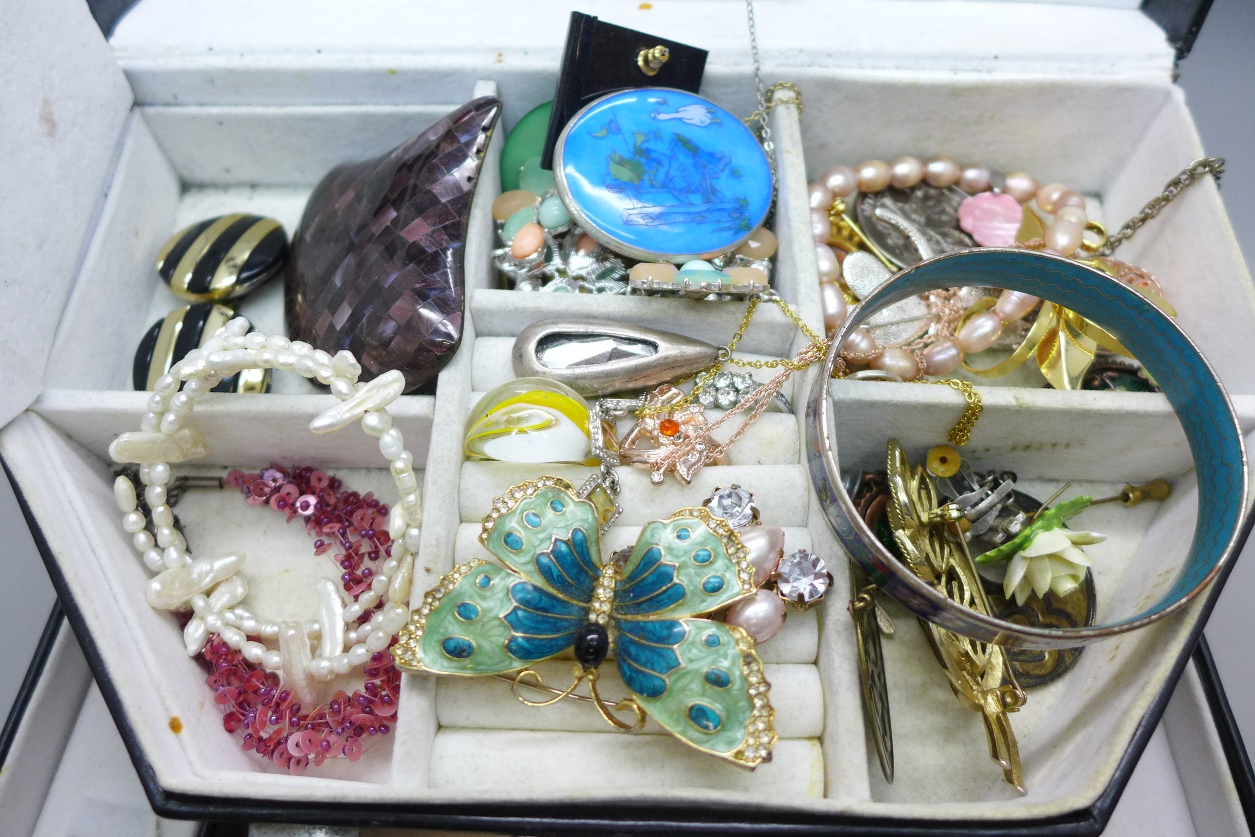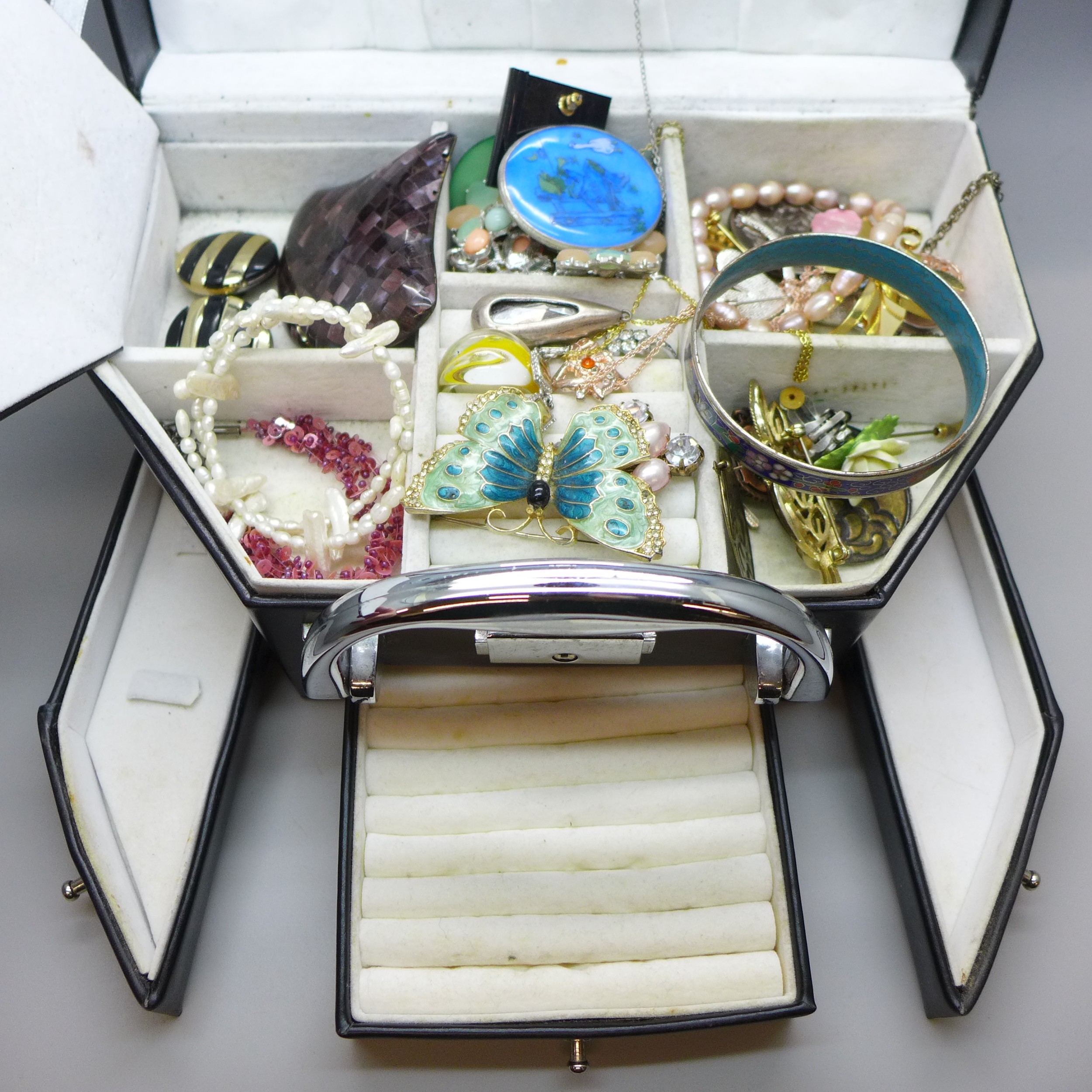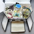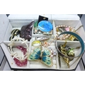 A collection of costume jewellery in a jewellery case