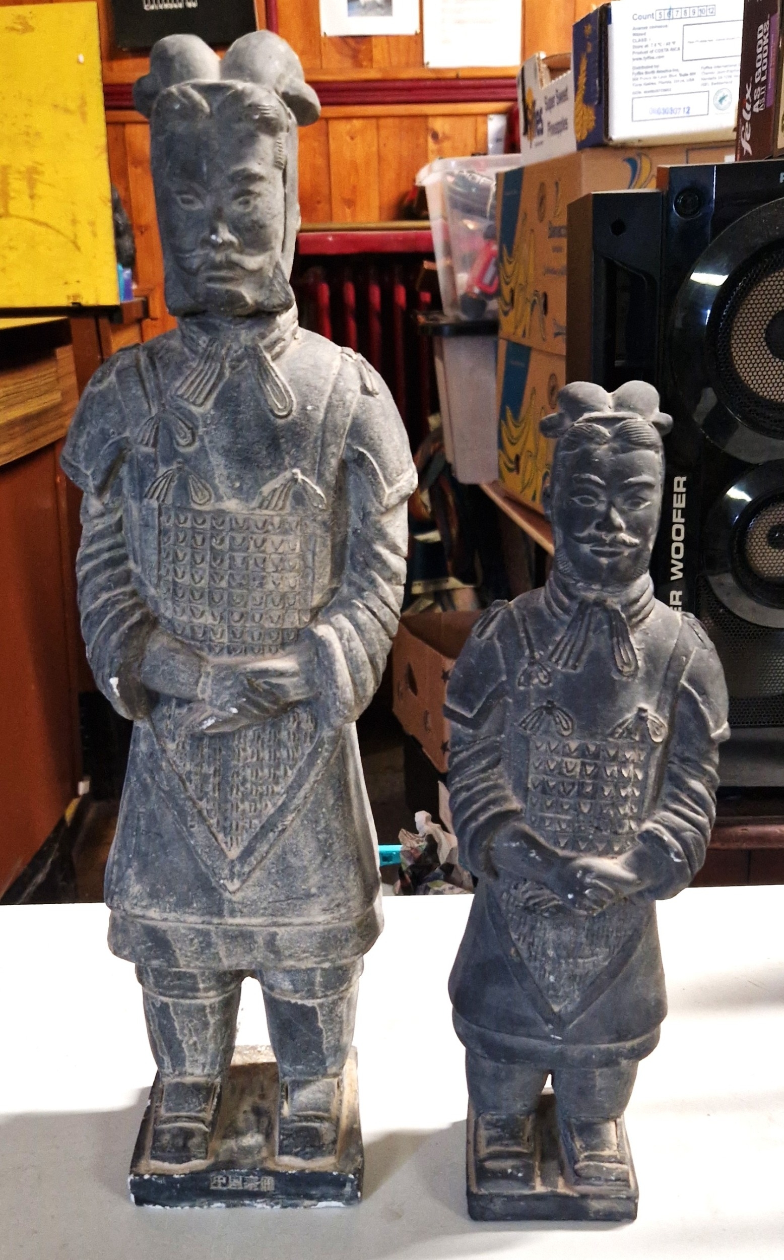 CHALK CHINESE WARRIORS (2) Stamped (Tallest Being 47cm (Please Note This Lot WILL NOT BE PACKED OR SHIPPED....COLLECT ONLY !!!!)