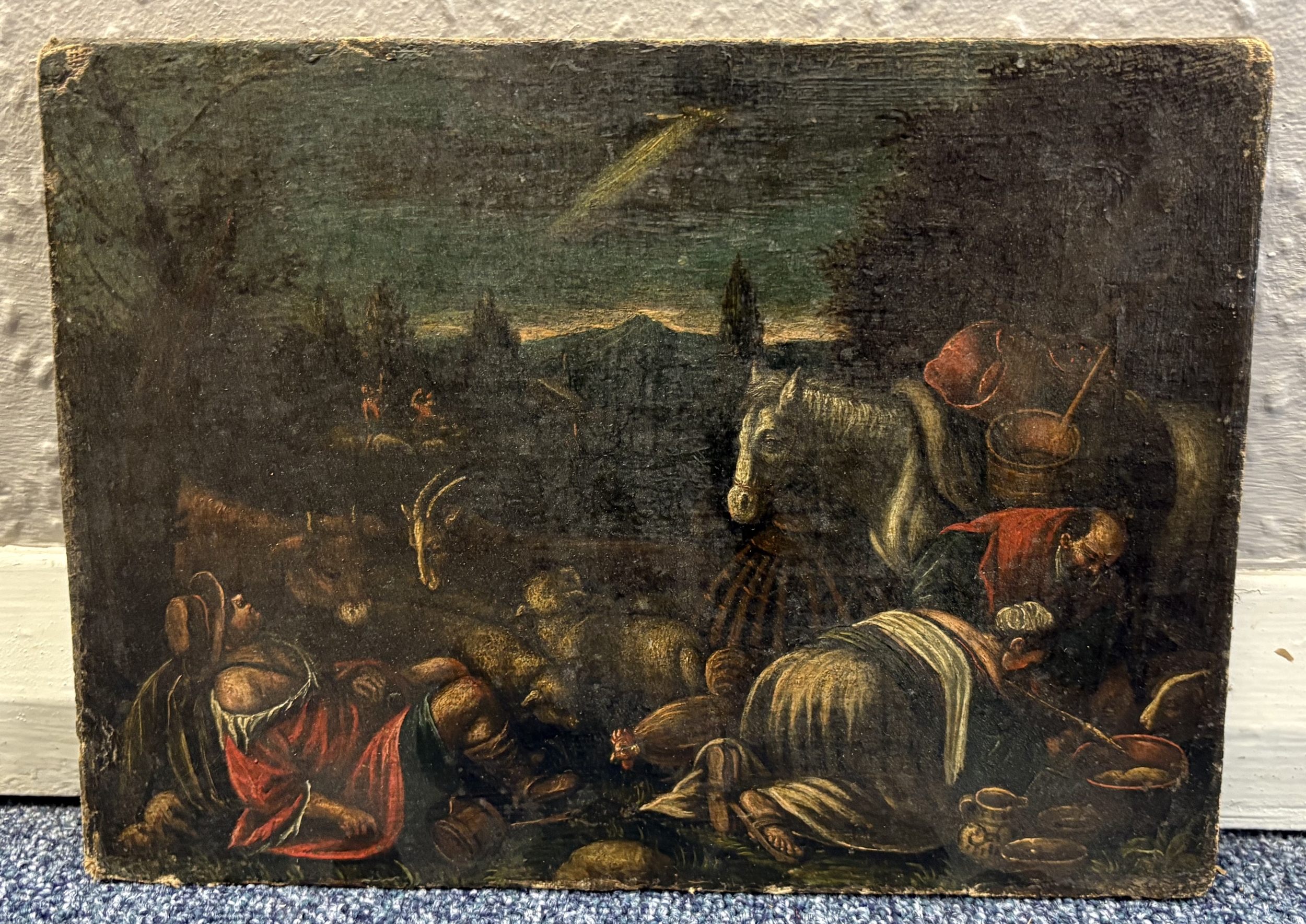FLEMISH SCHOOL: Follower of Jacopo da Ponte, called Bassano: An unframed oil on canvas depicting 'The Annunciation to the Shepherds'. Apparently unsigned. Approx. 28 cm x 20.5 cm. Est. £200 - £300