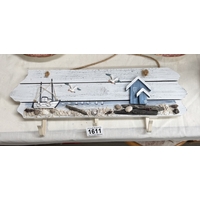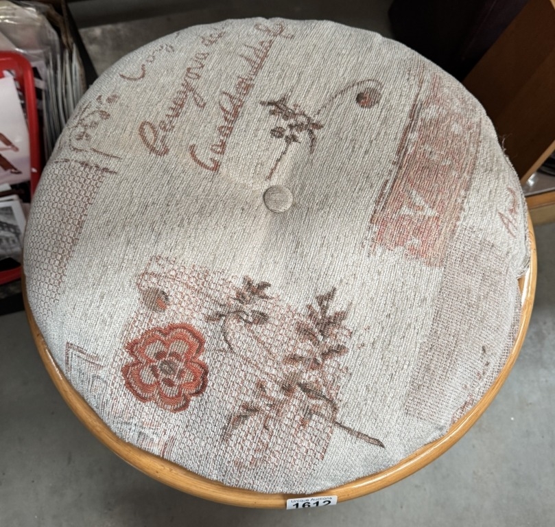A cushioned bamboo stool