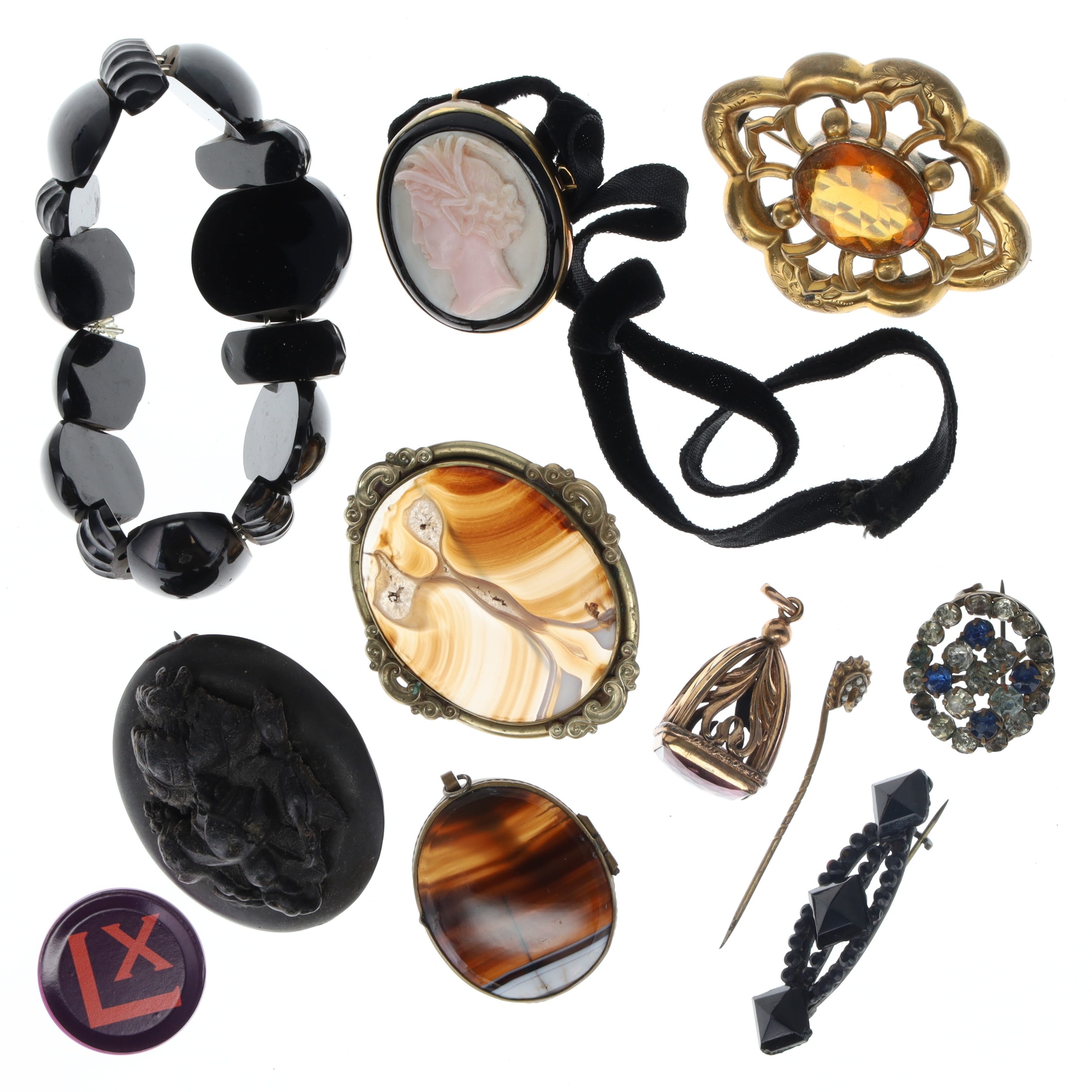 Antique Jewellery Collection including Mourning, Agate, Locket, Cameo