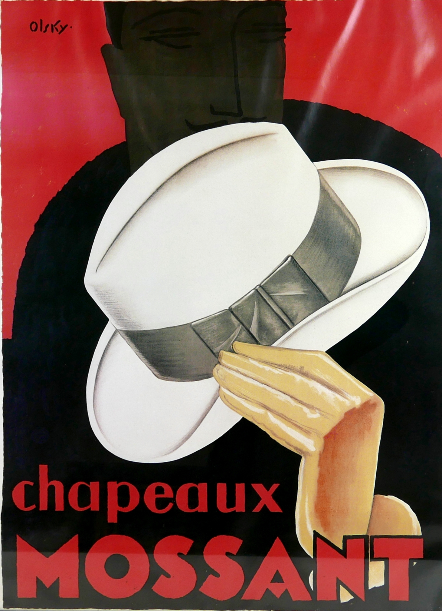 After Olsky: a reproduction Art Deco style print, 'Chapeaux Mossant', probably 1980s, 79 by 59cm, glazed and framed, 81.5 by 61cm.