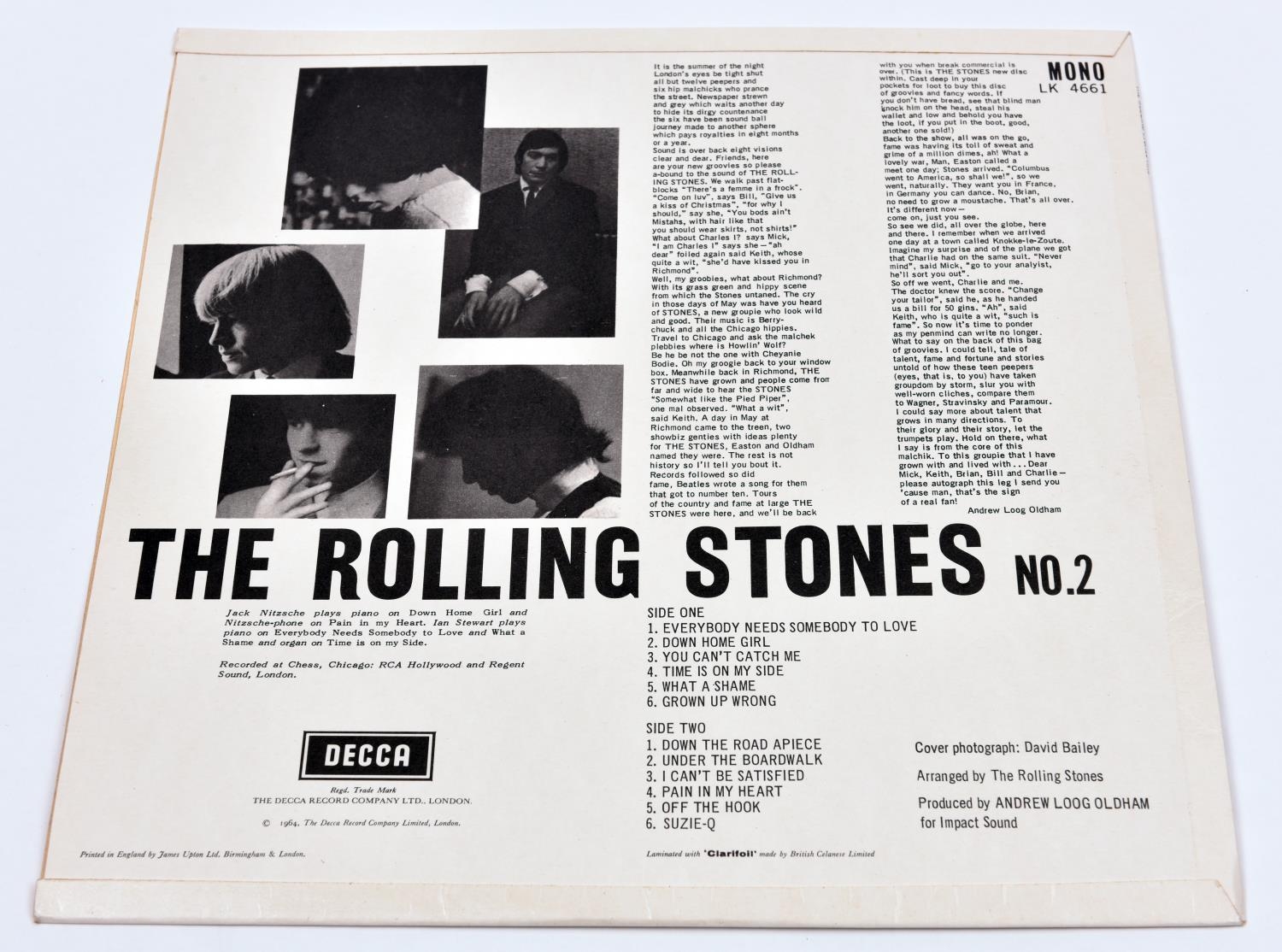 The Rolling Stones - No.2. Decca mono 12" vinyl record. 1964, LK4661, with XARL-6620-2A, XARL-6619-2A on run out goove and K/T tax code on label. GC-VGC, mark on side 2. £40-60