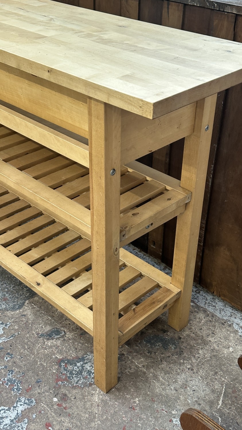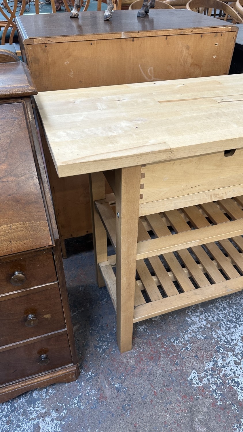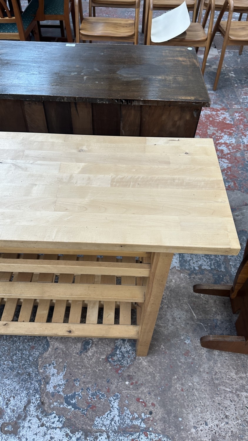 An IKEA birch wood kitchen island/sideboard - approx. 90cm high x 188cm wide x 43cm deep